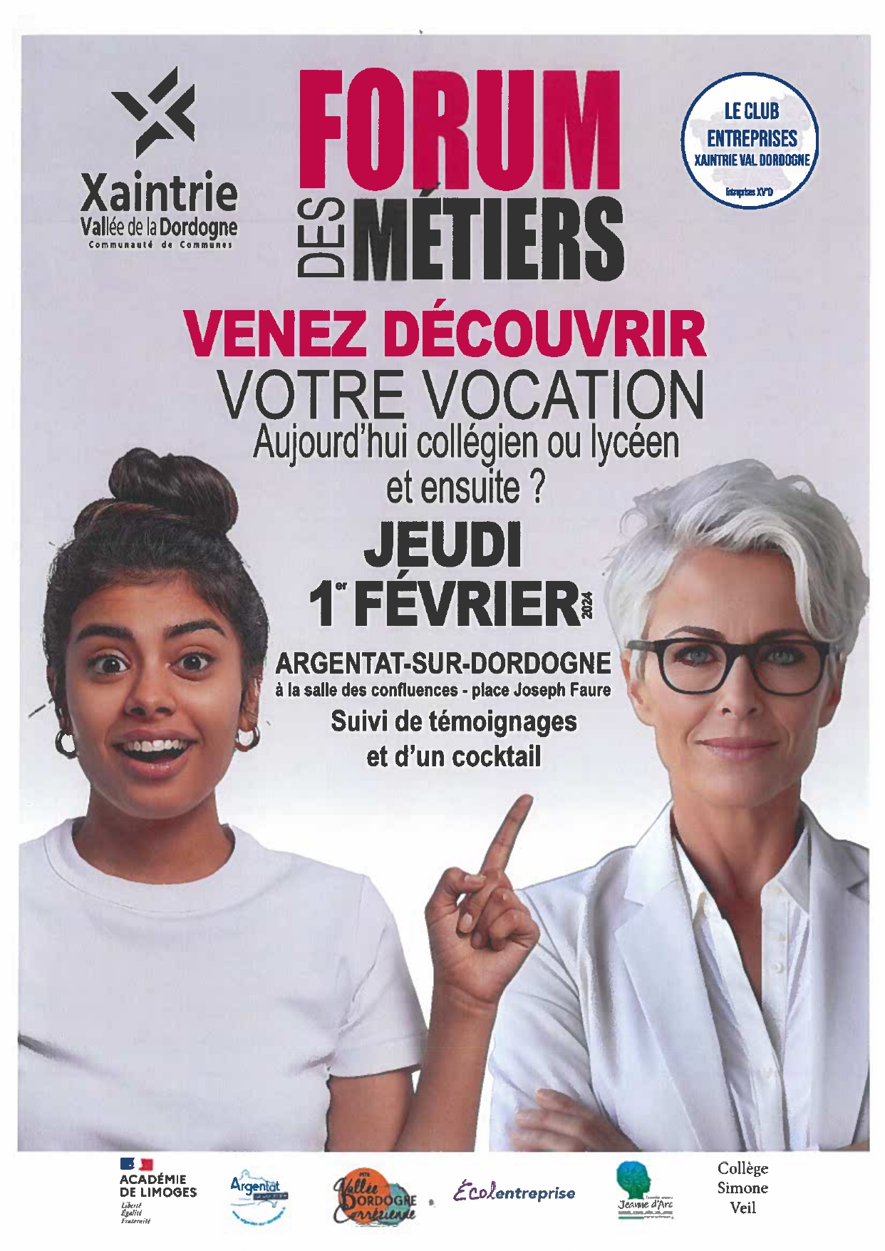 Comme l’année dernière, les élèves de 4e et 3e auront le plaisir de participer le jeudi 1er février au forum des métiers organisé par la Communauté de communes Xaintrie Val’ Dordogne.