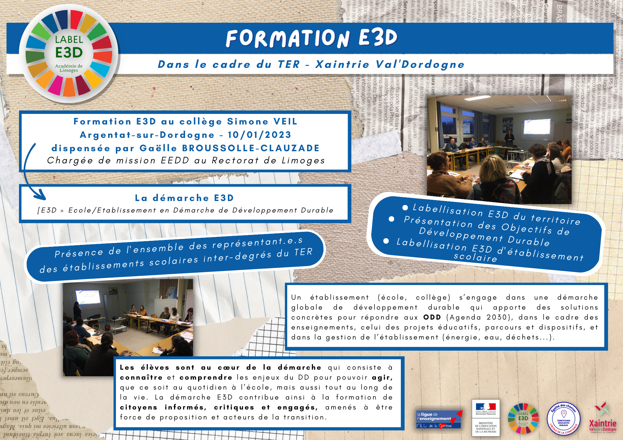 Formation labellisation E3D pour les enseignants du TER