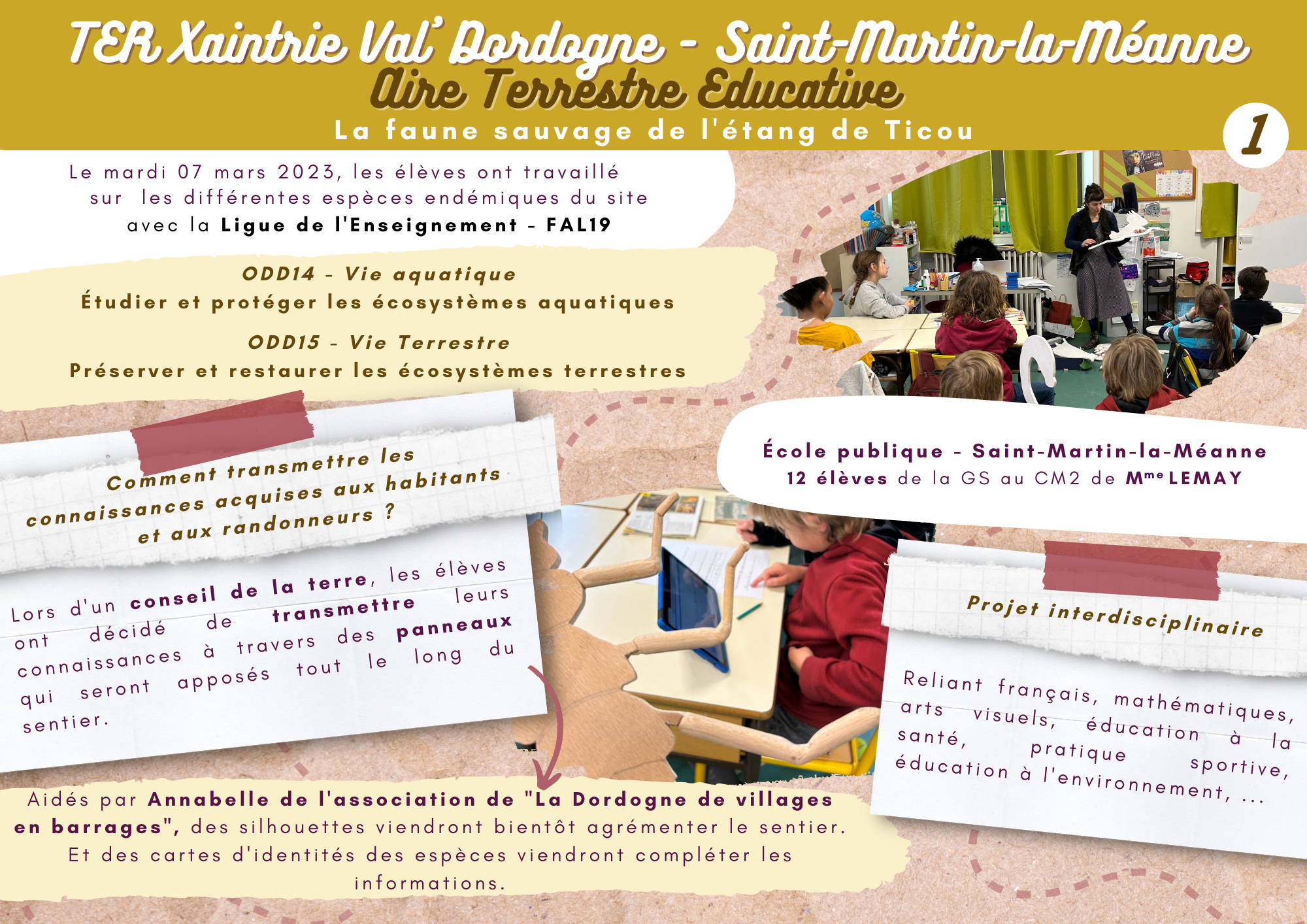 Mardi 7 mars, les élèves de Mme Lemay recevaient dans leur classe Annabelle de l’association " La Dordogne de villages en barrages" et Sèverine Revollet de la FAL 19.