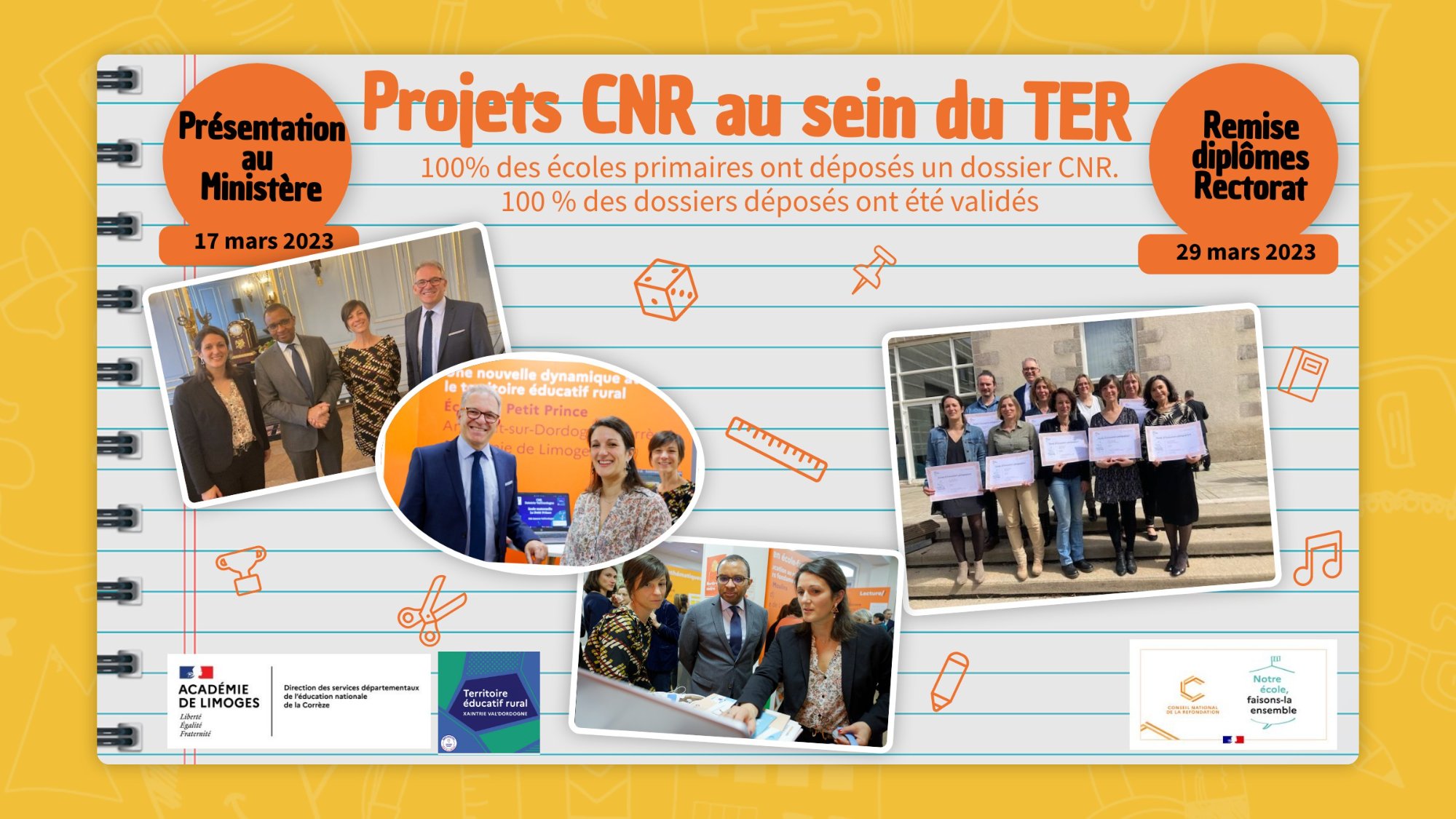 Une remise de diplôme a également eu lieu au rectorat à Limoges le 29 mars avec l’ensemble des enseignants de l’académie qui ont validé un projet CNR.