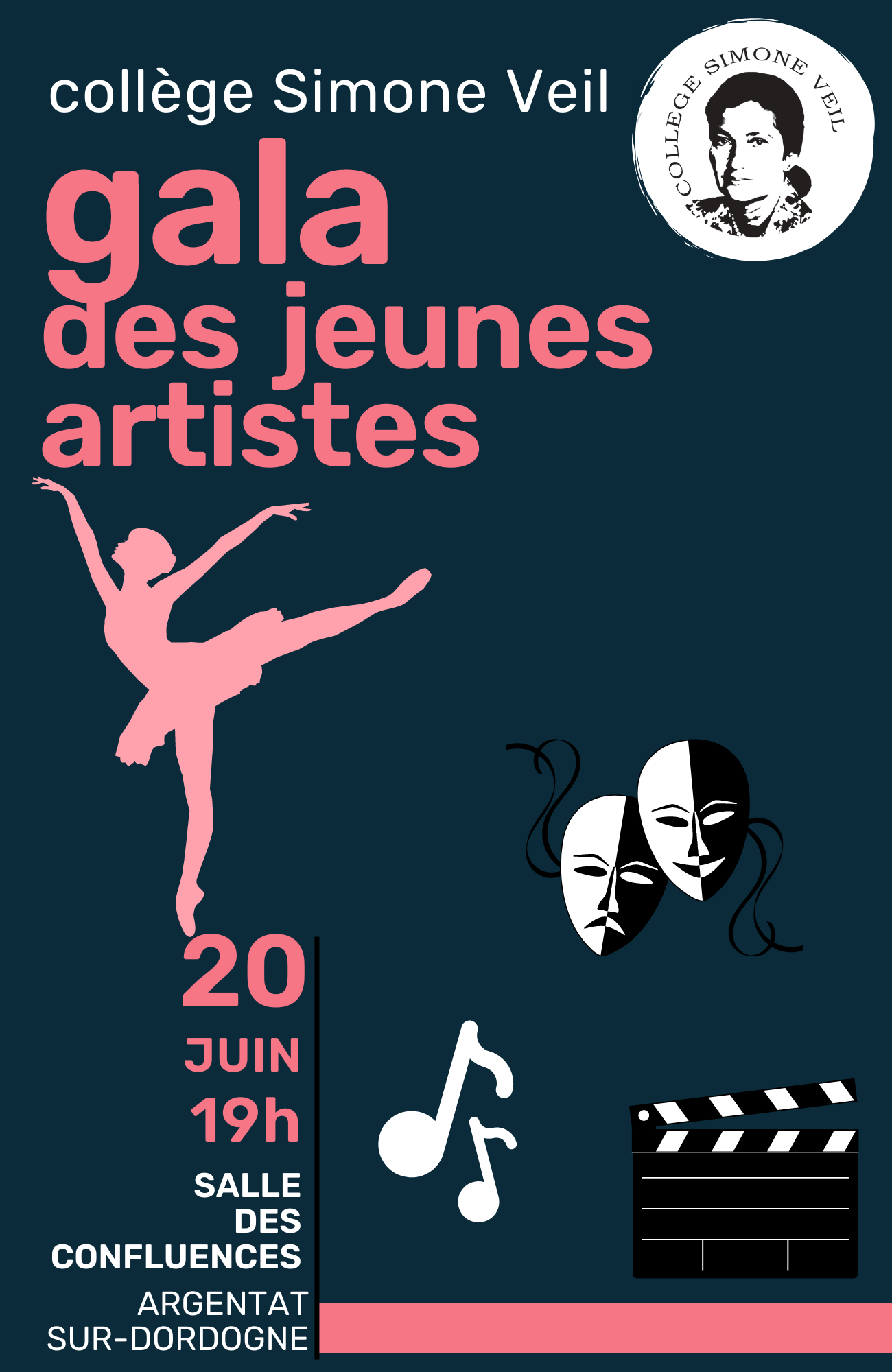 Spectacles en deux parties, entracte avec collation et rafraîchissements (l’apport par les familles de gâteaux ou autres mets salés est bienvenu pour la vente au profit du foyer des élèves durant l’entracte).
