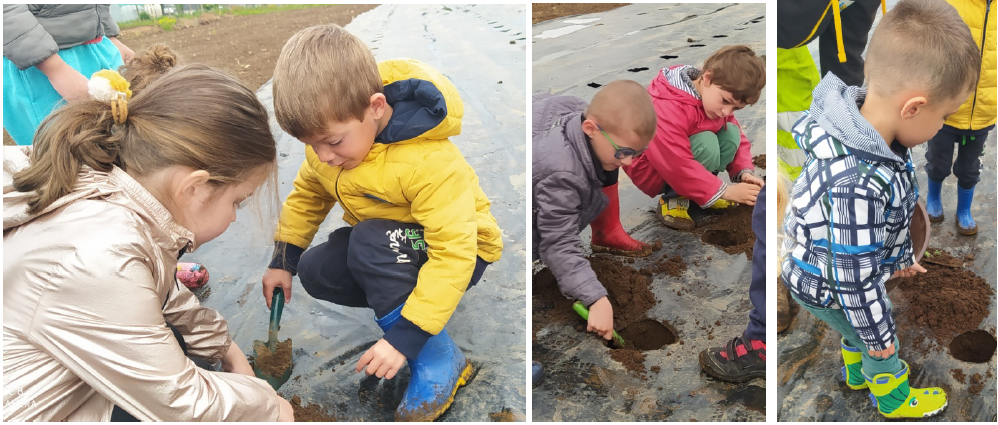 " Nous avons tout d’abord creusé des trous, puis déposé du fumier en granulés. Ensuite, nous avons dépoté les plants de patates douces en faisant bien attention aux racines et nous les avons mis dans les trous.