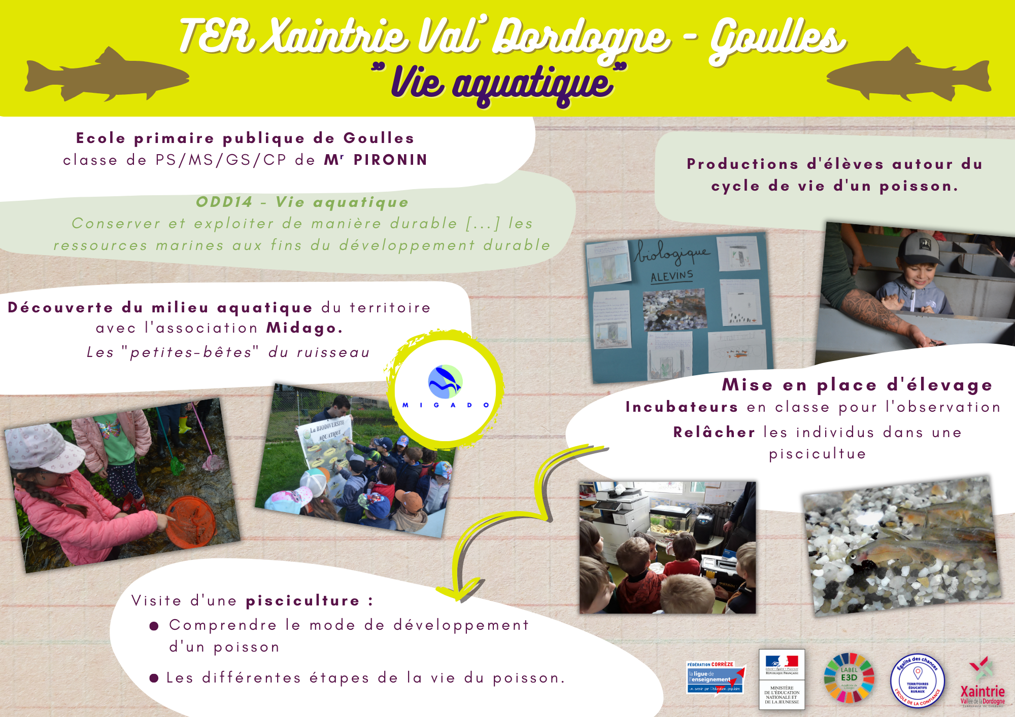 Tout au long de l’année, l’école de Goulles a suivi un projet autour de la thématique de l’eau, de la Dordogne et des saumons.