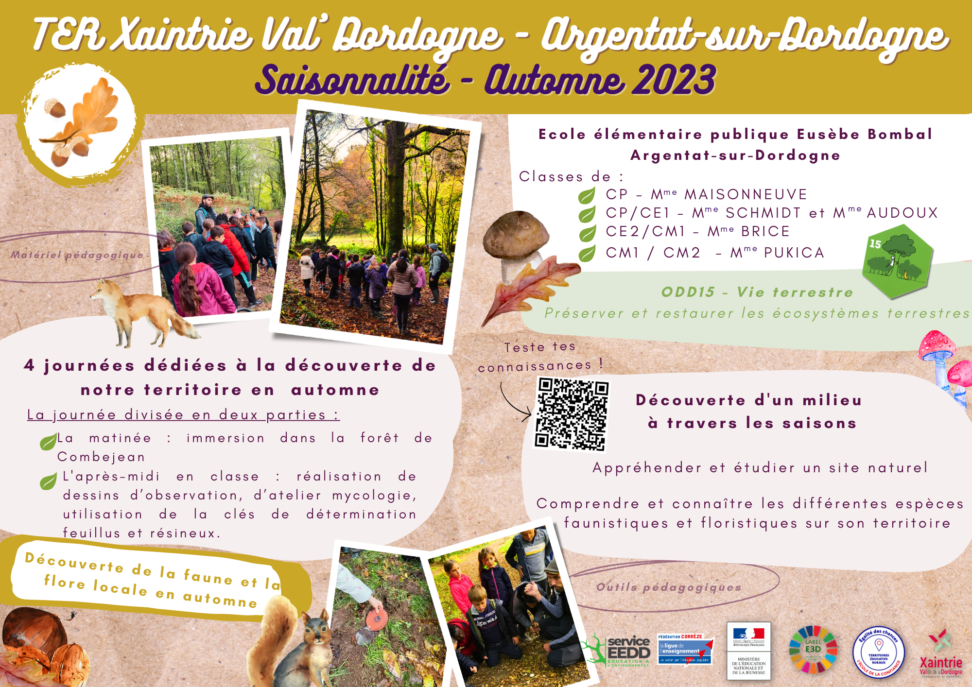 C’est à Combejean que les élèves ont commencé la journée avec la découverte du territoire en automne avec l’ observation de la faune et de la flore.