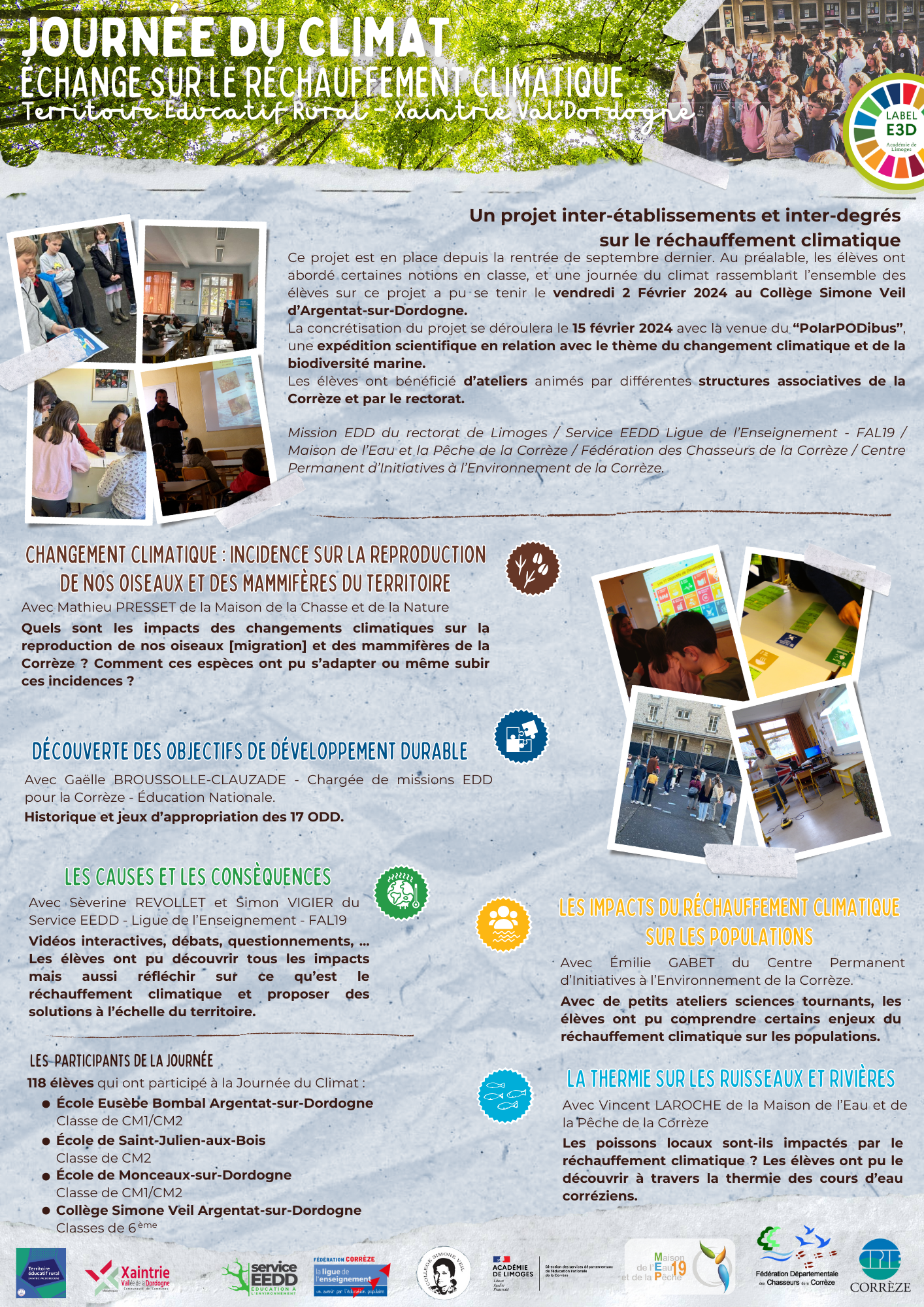 Vendredi 2 février les CM et 6ème ont pu participer à 5 ateliers afin d’appréhender les conséquences du réchauffement climatique sur les milieux.