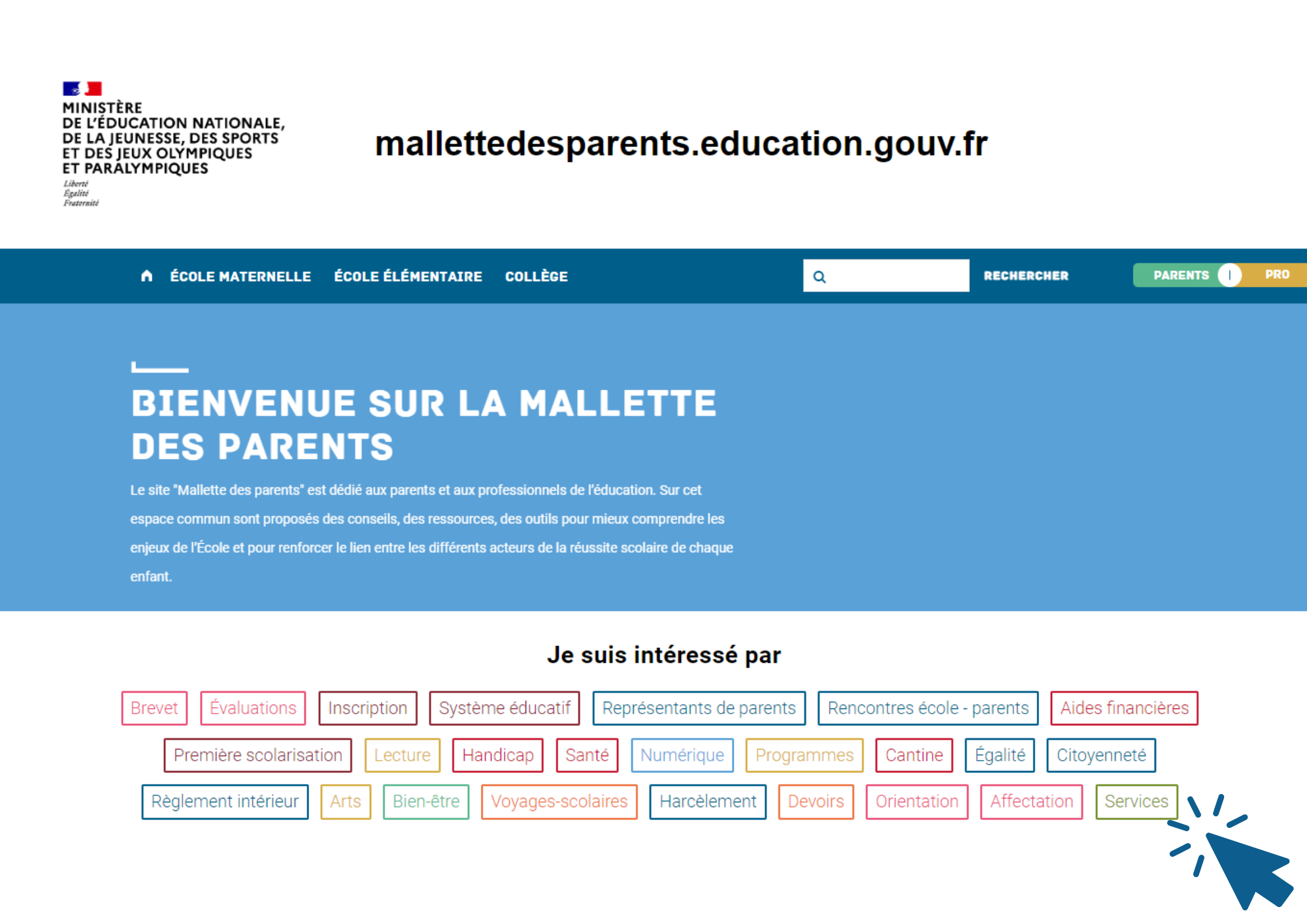 Largement utilisée depuis 2010 dans les écoles et les établissements, la Mallette des parents est enrichie chaque année en proposant aux familles et à toutes les équipes éducatives des ressources, des outils et des conseils pour renforcer le lien de confiance école-parents.
