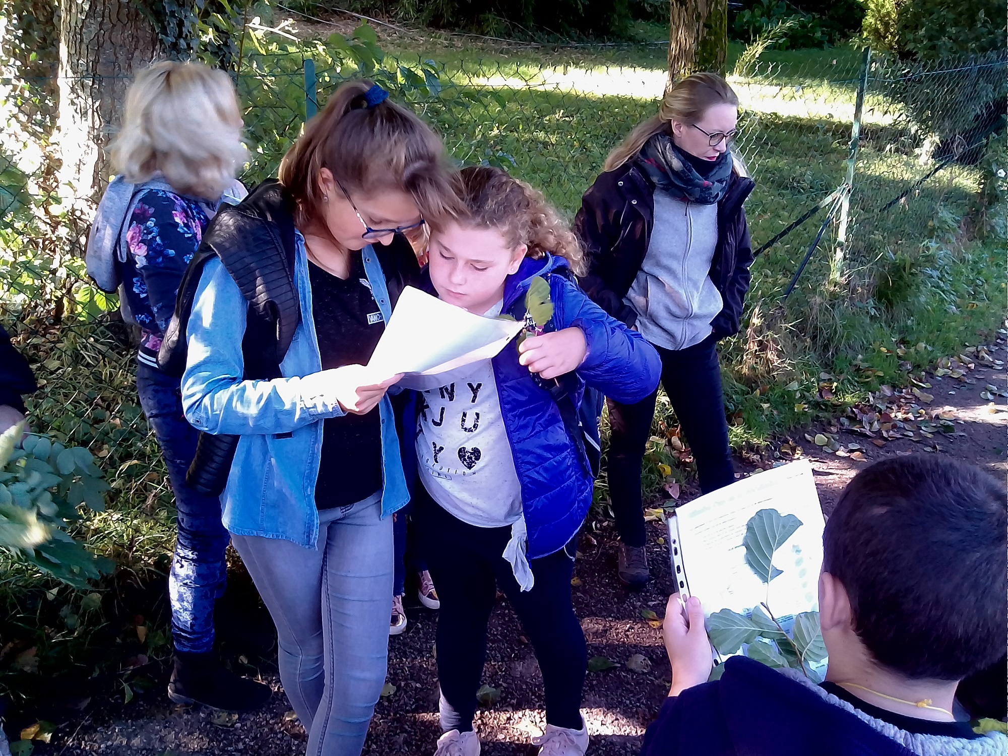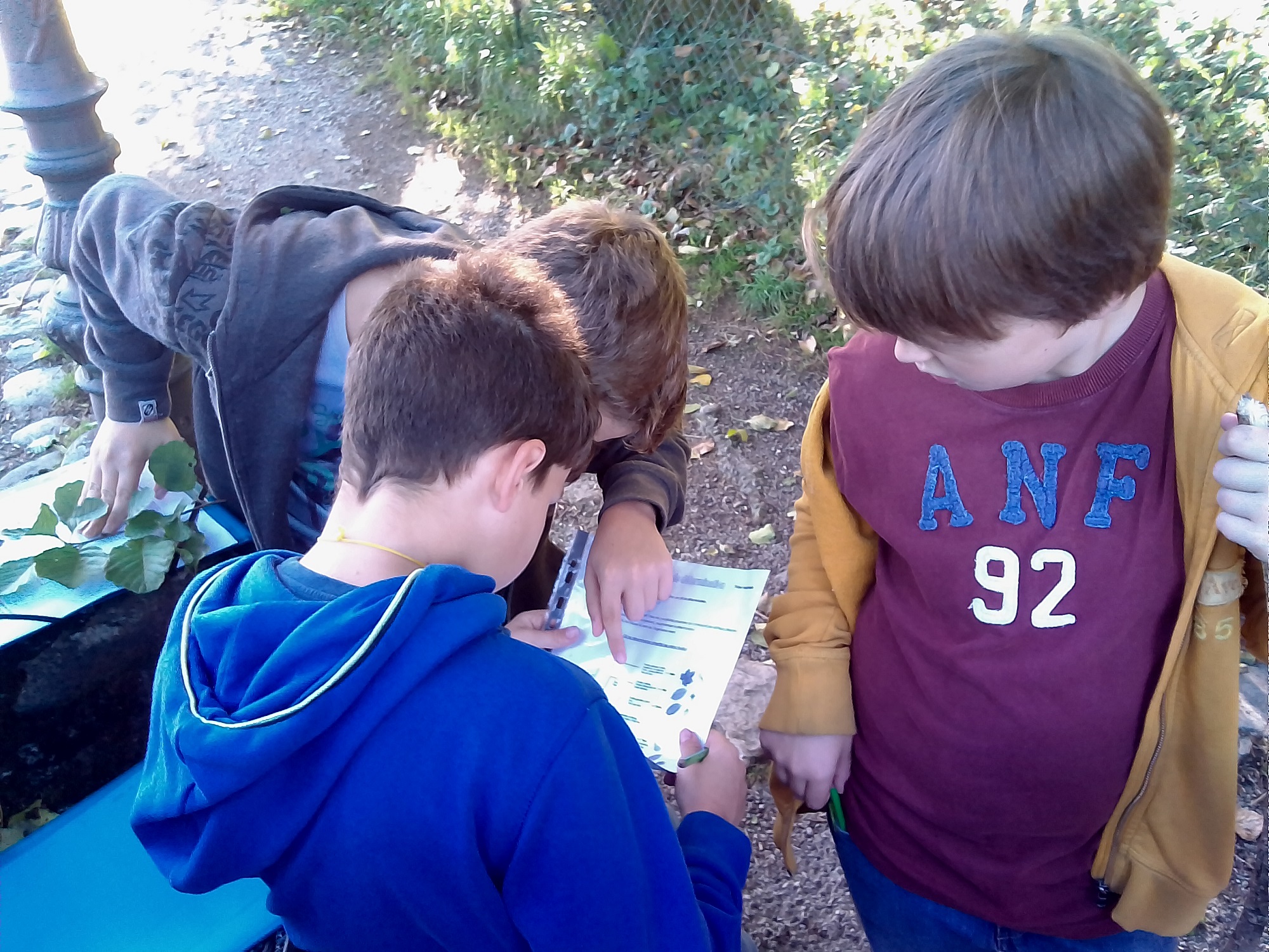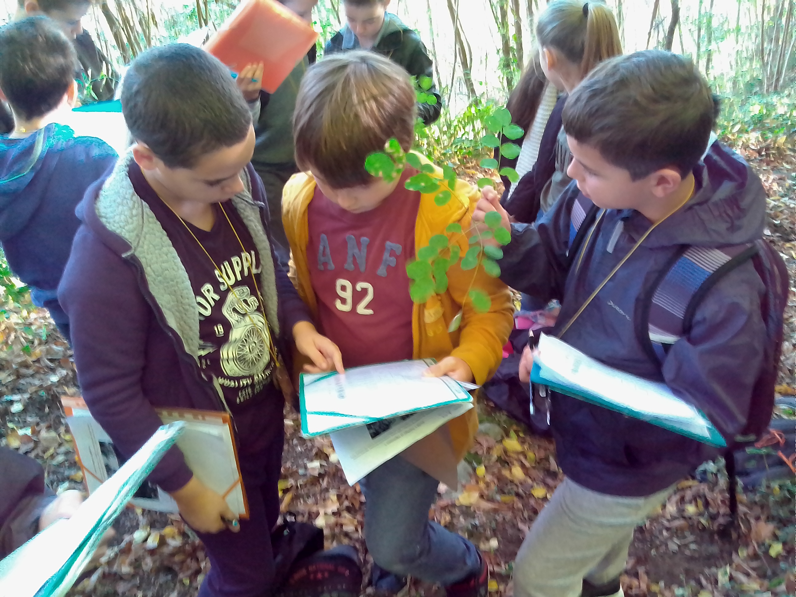 Le weekend automnale a laissé les feuilles sur les arbres et la détermination est restée possible. Les élèves ont appris à reconnaître une dizaine d’arbres différents de la forêt alluviale et de la forêt sur diorite.