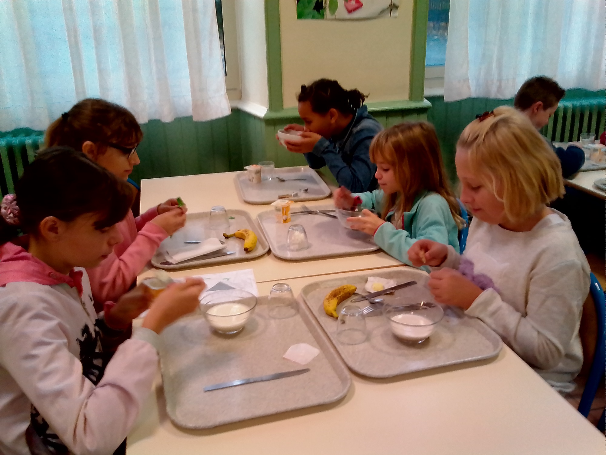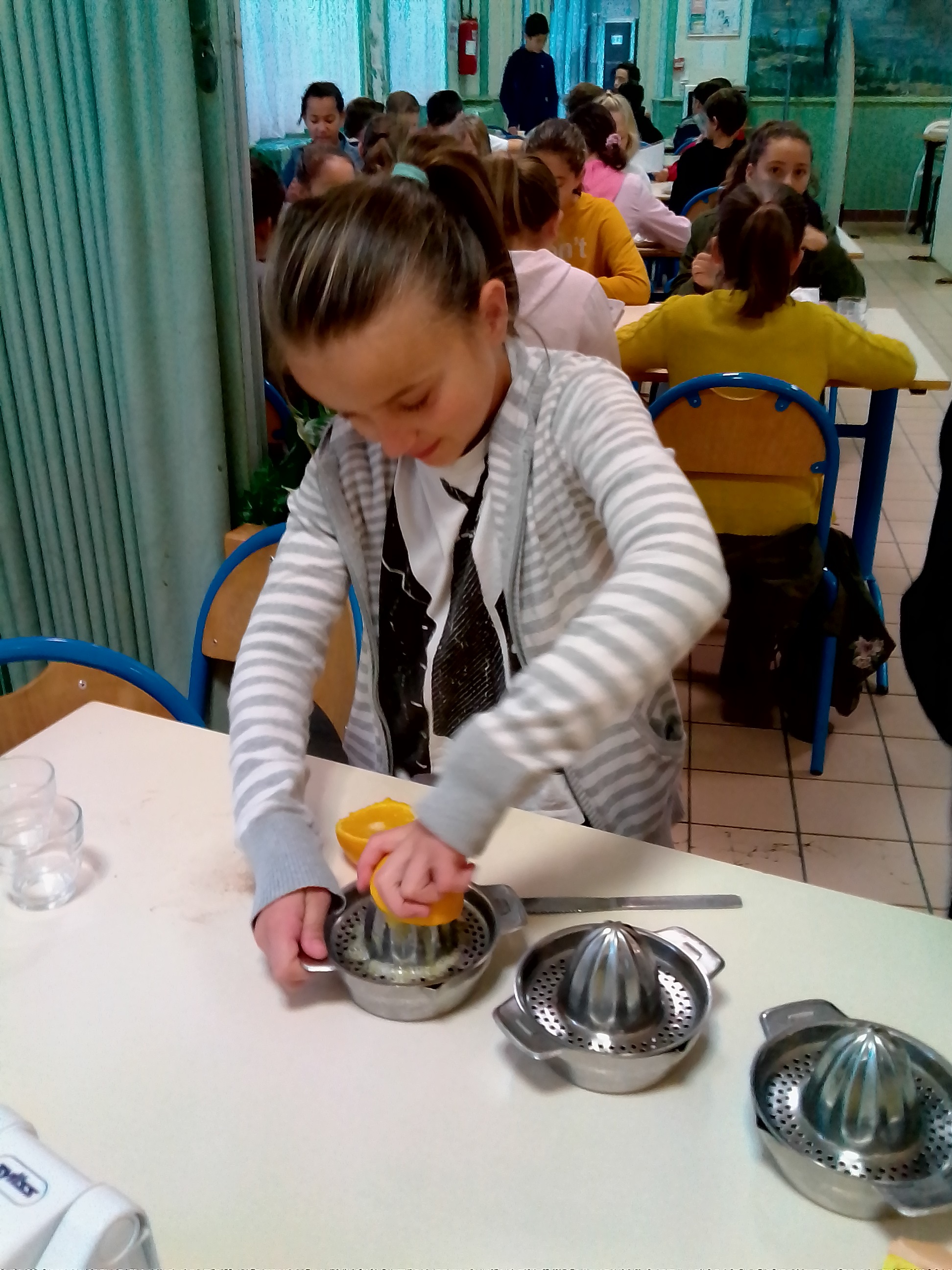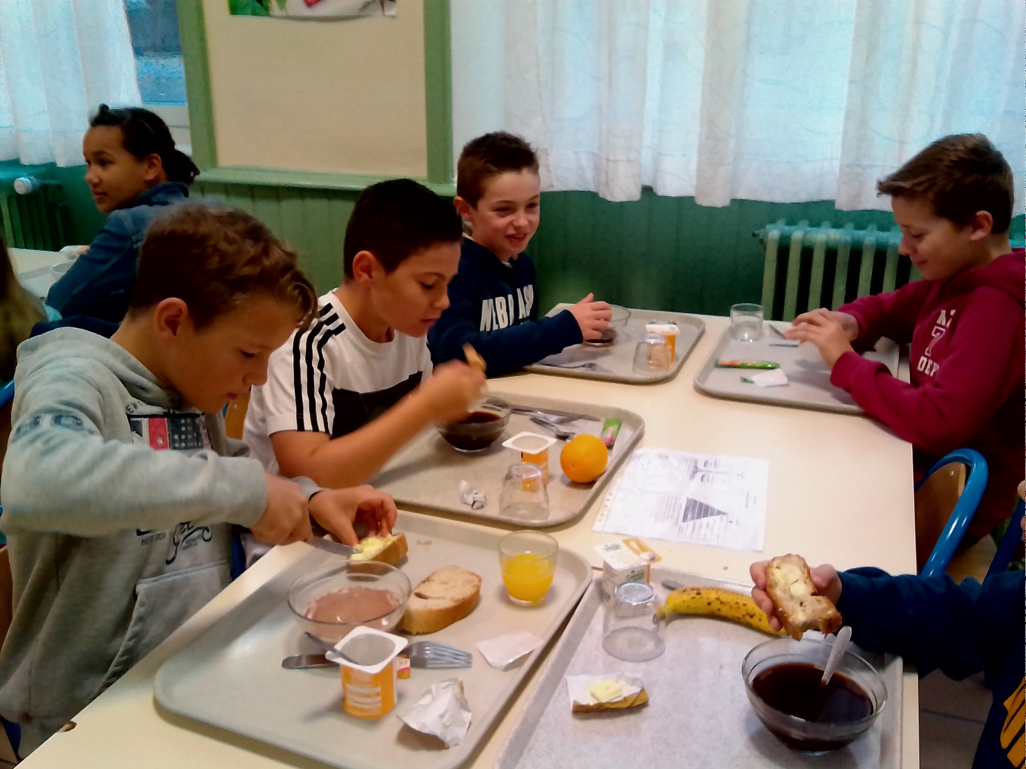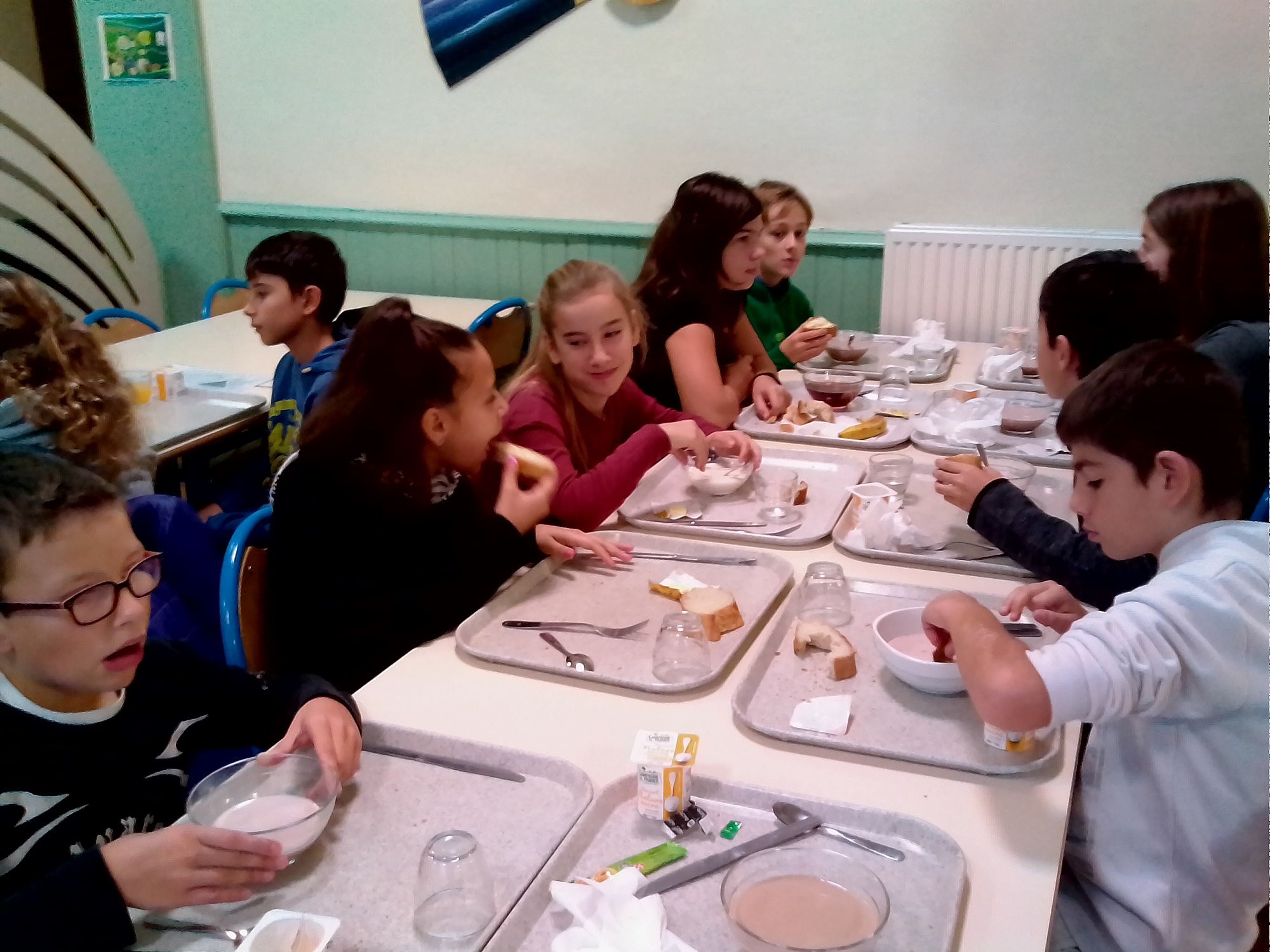 Au menu, des oranges, des clémentines, du pain, de la confiture, du miel, du beurre, du lait et des yaourts. Certains ont profité des oranges et du presse-agrume pour se préparer un jus d’orange équivalent alors à une portion de fruit et légume sur les 5 portions attendues par jour.