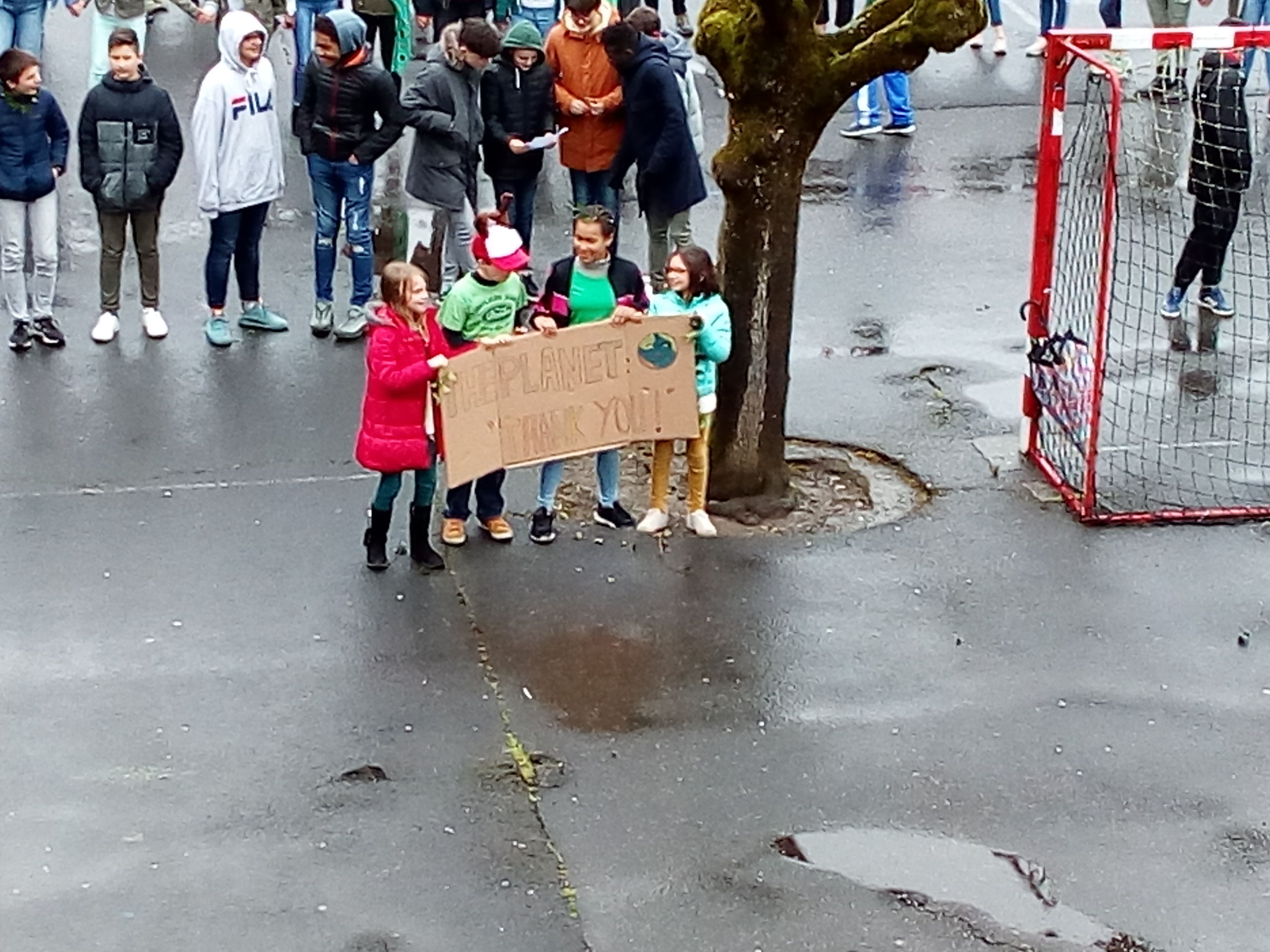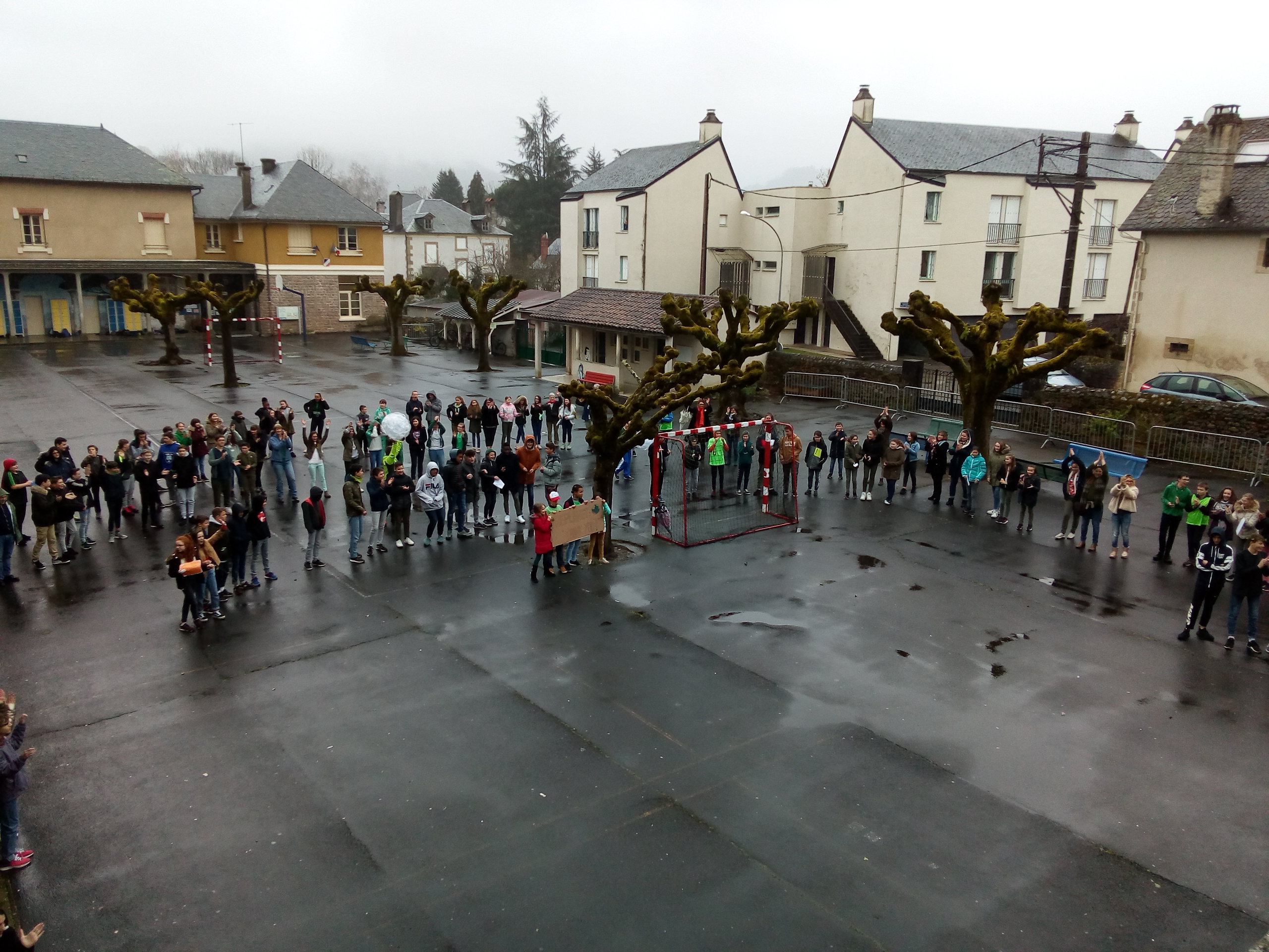 En lien avec le mouvement "Save the climate", les collégiens se sont mobilisés le vendredi 15 mars. Après une heure de classe sur le thème du changement climatique, les élèves et les adultes du collège ont fait une ronde humaine et, vêtu de vert, chanté la chanson pour le climat sur l’air de Bella ciao.