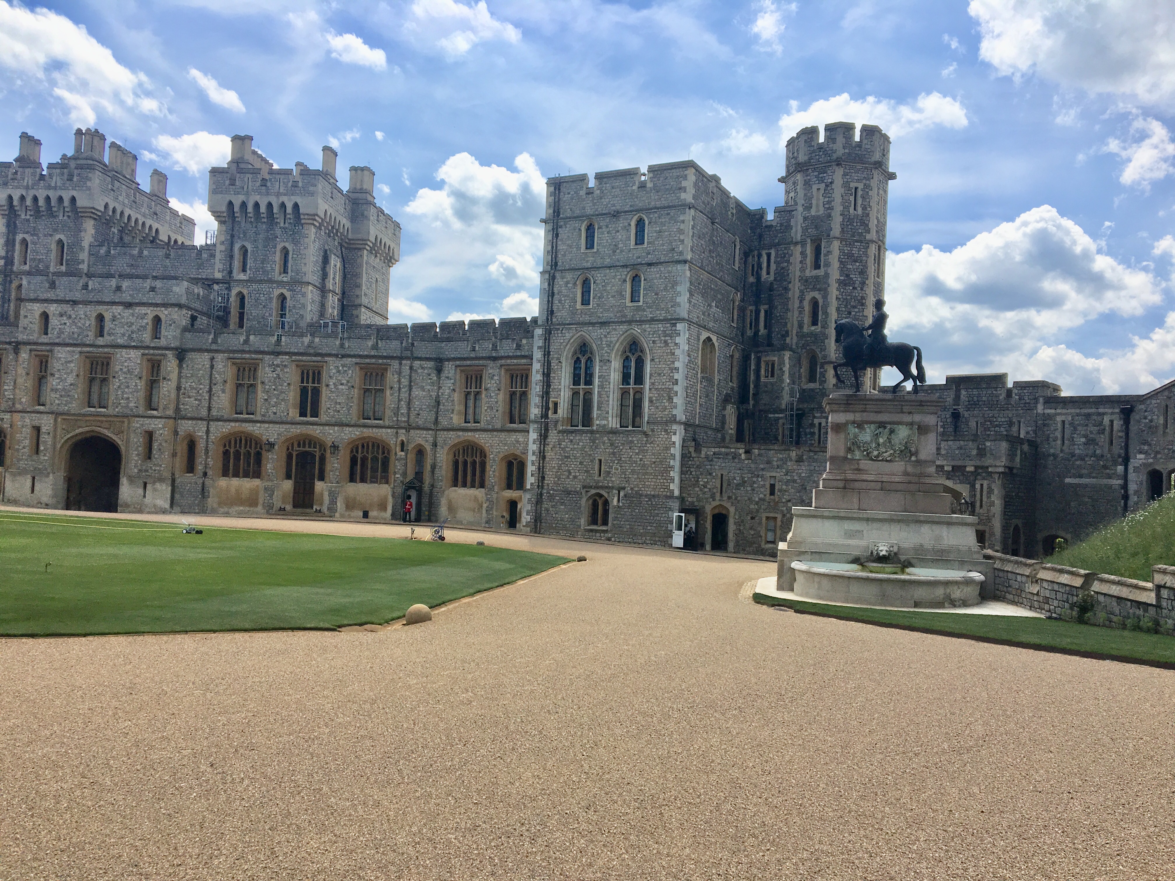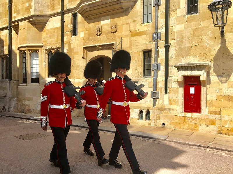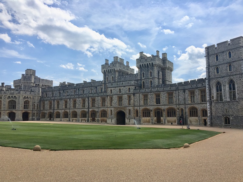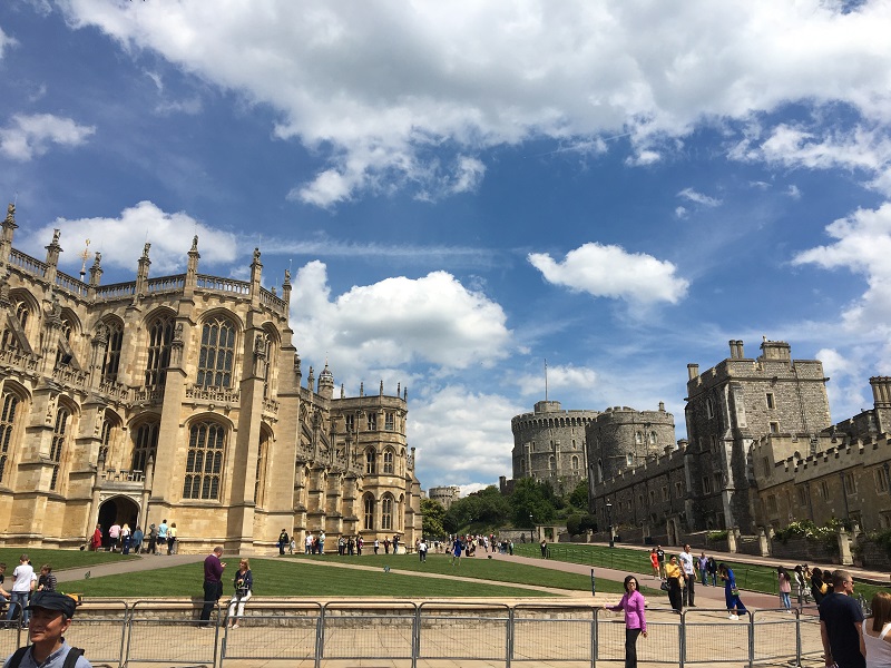 C’est sous un grand soleil et des températures presque estivales que nous avons visité le château de Windsor aujourd’hui. Le lieu, où s’est déroulé le mariage d’Harry et Meghan, est connu dans le monde entier et pour s’en convaincre, il suffisait de voir la file d’attente et les nombreux cars de touristes sur place… il a fallu s’armer d’un peu de courage et de patience avant d’y accéder mais une fois sur place, le jeu en valait la chandelle. La construction du bâtiment a débuté au 11è siècle, c’est dire si des siècles nous contemplent lorsqu’on s’aventure entre ses murs. Nous avons principalement admiré les appartements d’Etat et la chapelle Saint George, déambulé dans des pièces fastueuses et chargées d’histoire et rencontré quelques gardes de sa Majesté la Reine. Nous avons par la suite pique-niqué au bord de l’eau avant de faire une pause shopping, dernière chance de ramener quelques souvenirs à nos familles. C’est avec un pincement au cœur pour nous tous que nous reprenons la route pour le ferry.