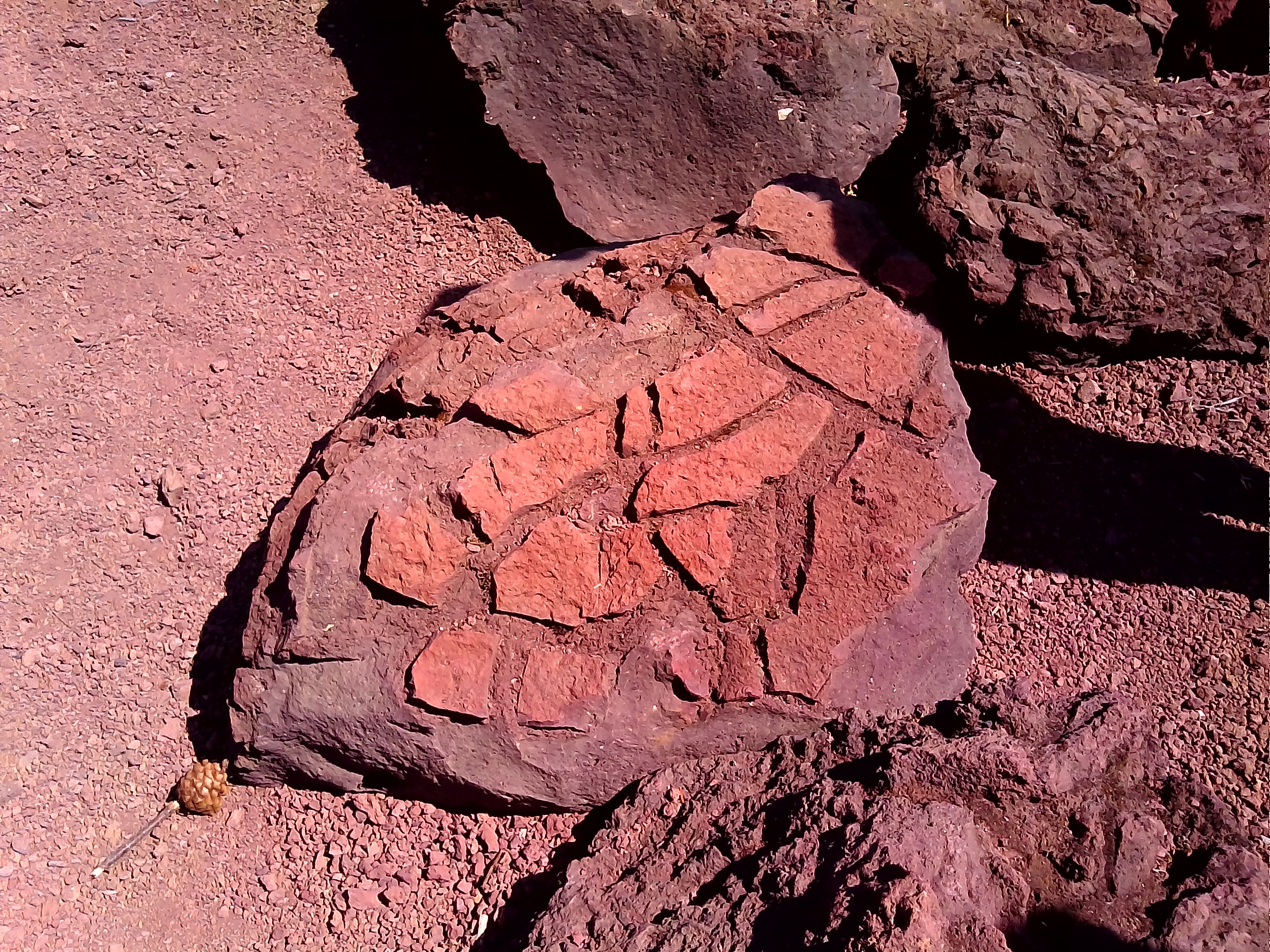 Les volcans effusifs avec leur cratère, leurs coulées de lave, leurs scories et leurs bombes volcaniques.