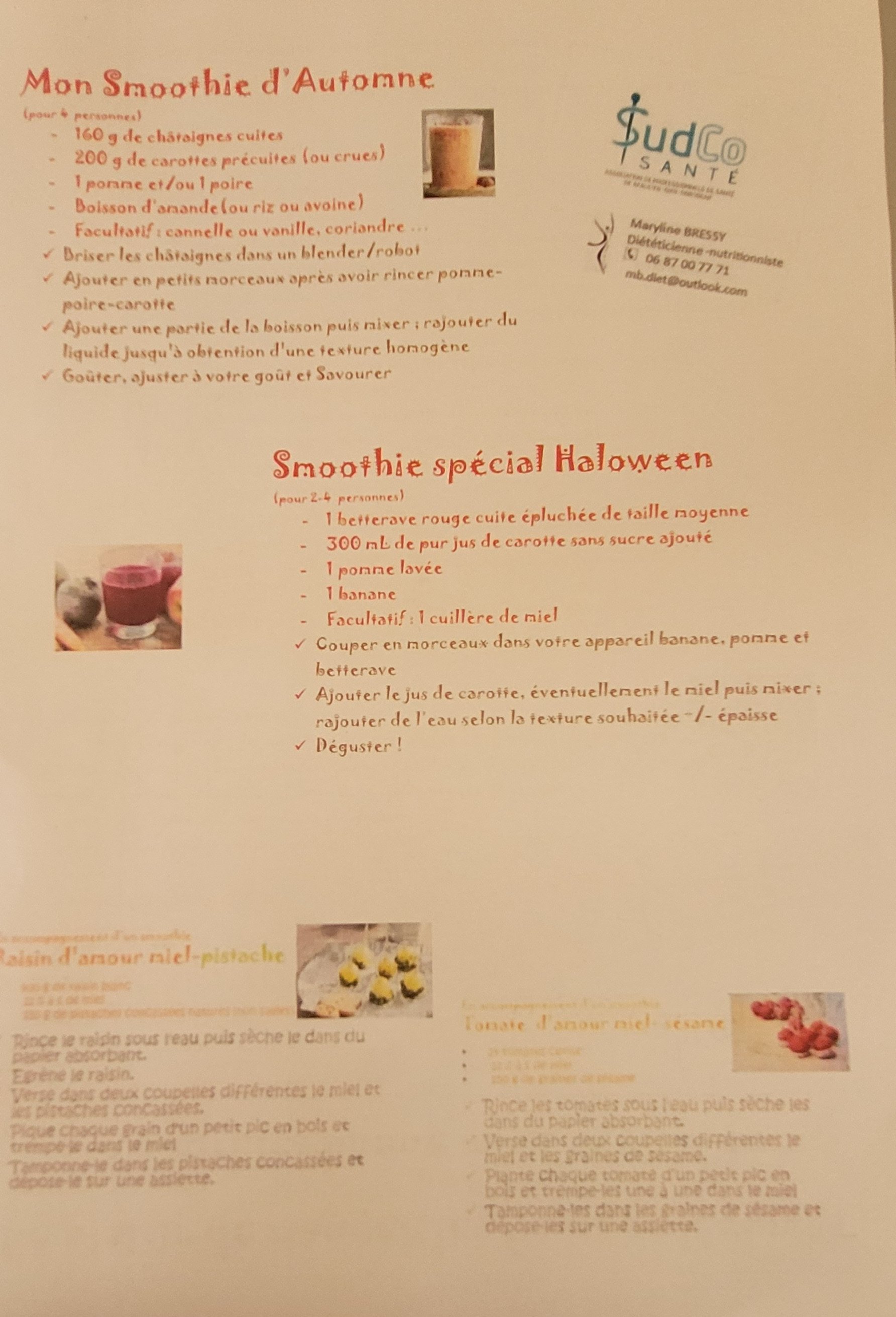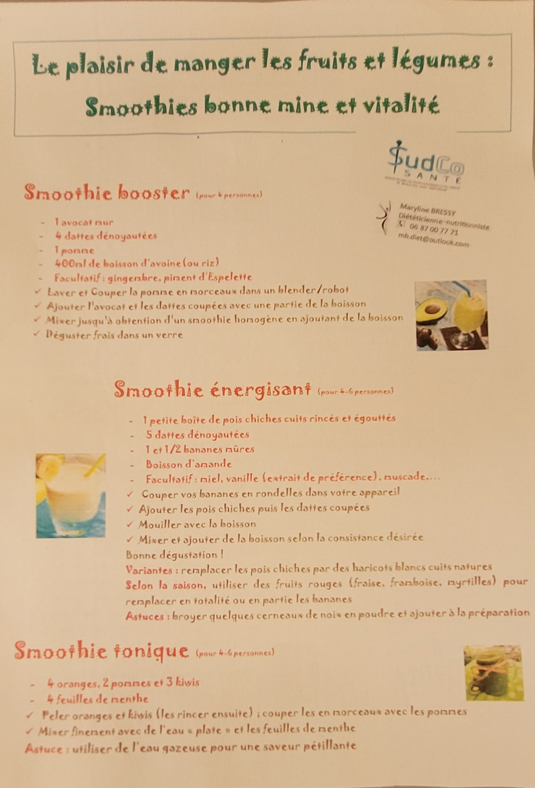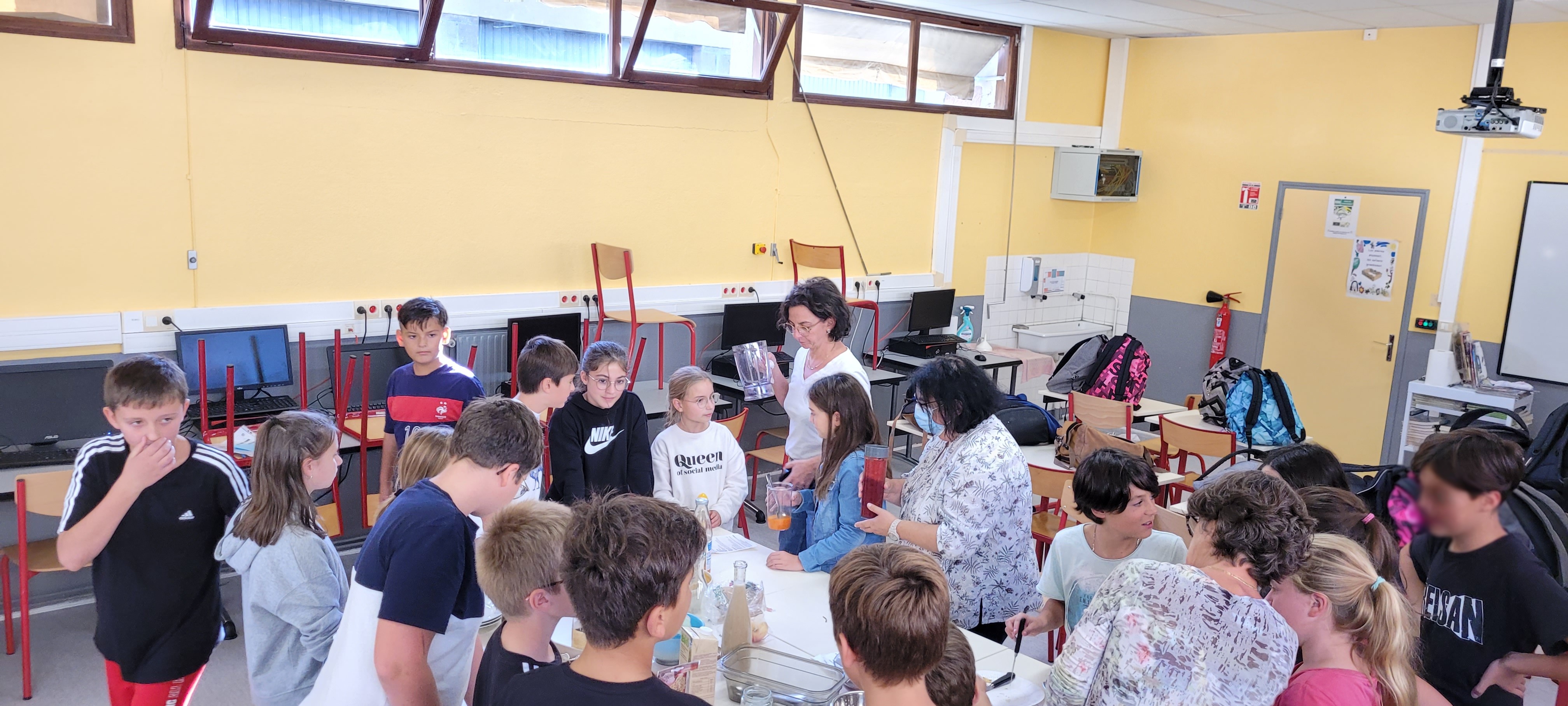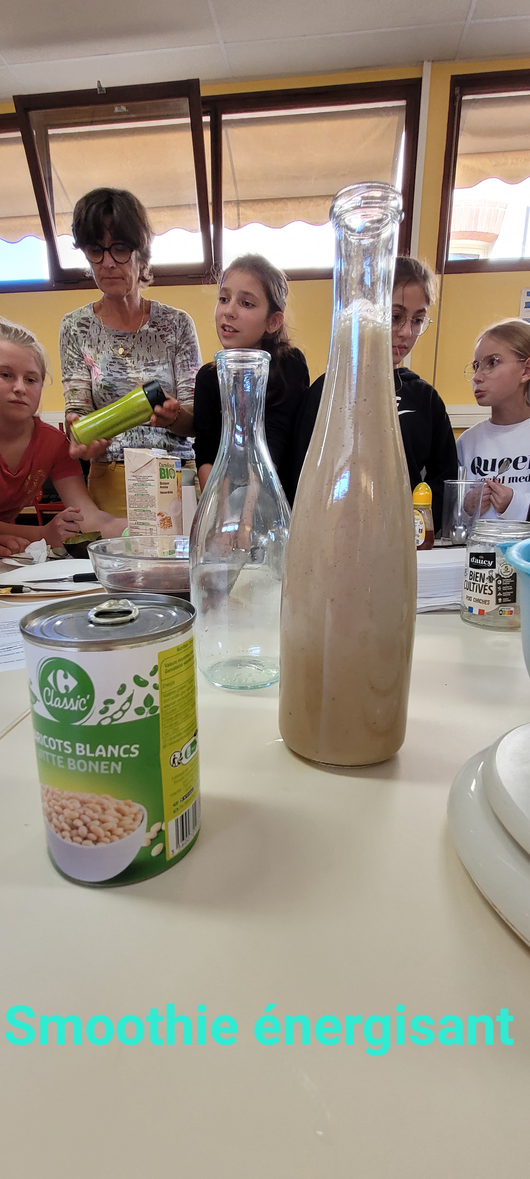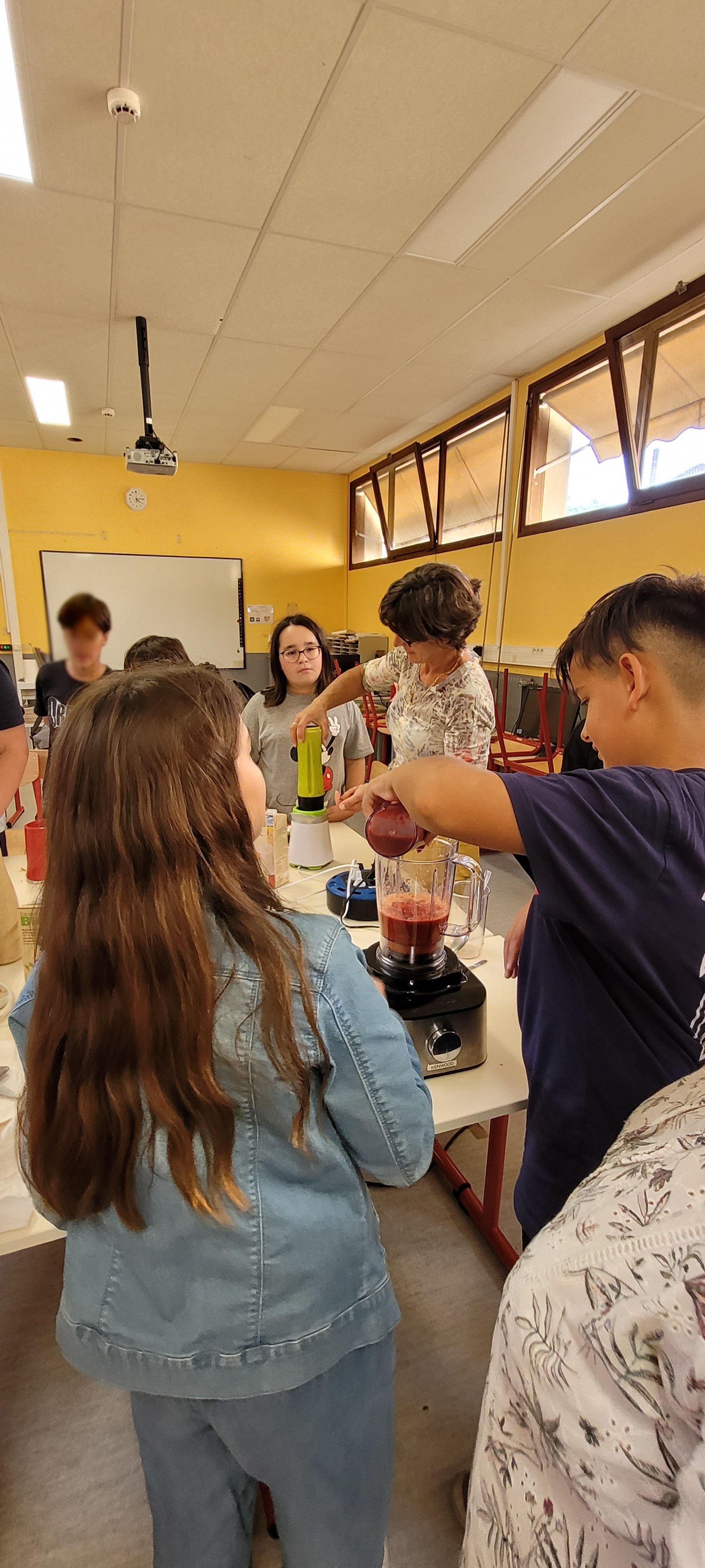 Mme Chastaingt infirmière scolaire, Mme Bressy diététicienne et Mme Maury infirmière libérale ont réalisé différentes recettes de smoothies avec les élèves afin de les sensibiliser au plaisir de manger des fruits et des légumes.