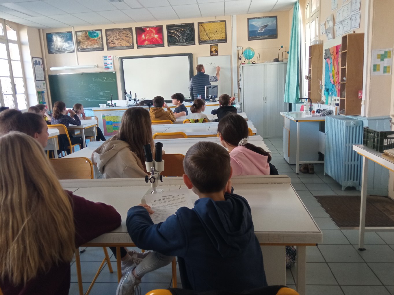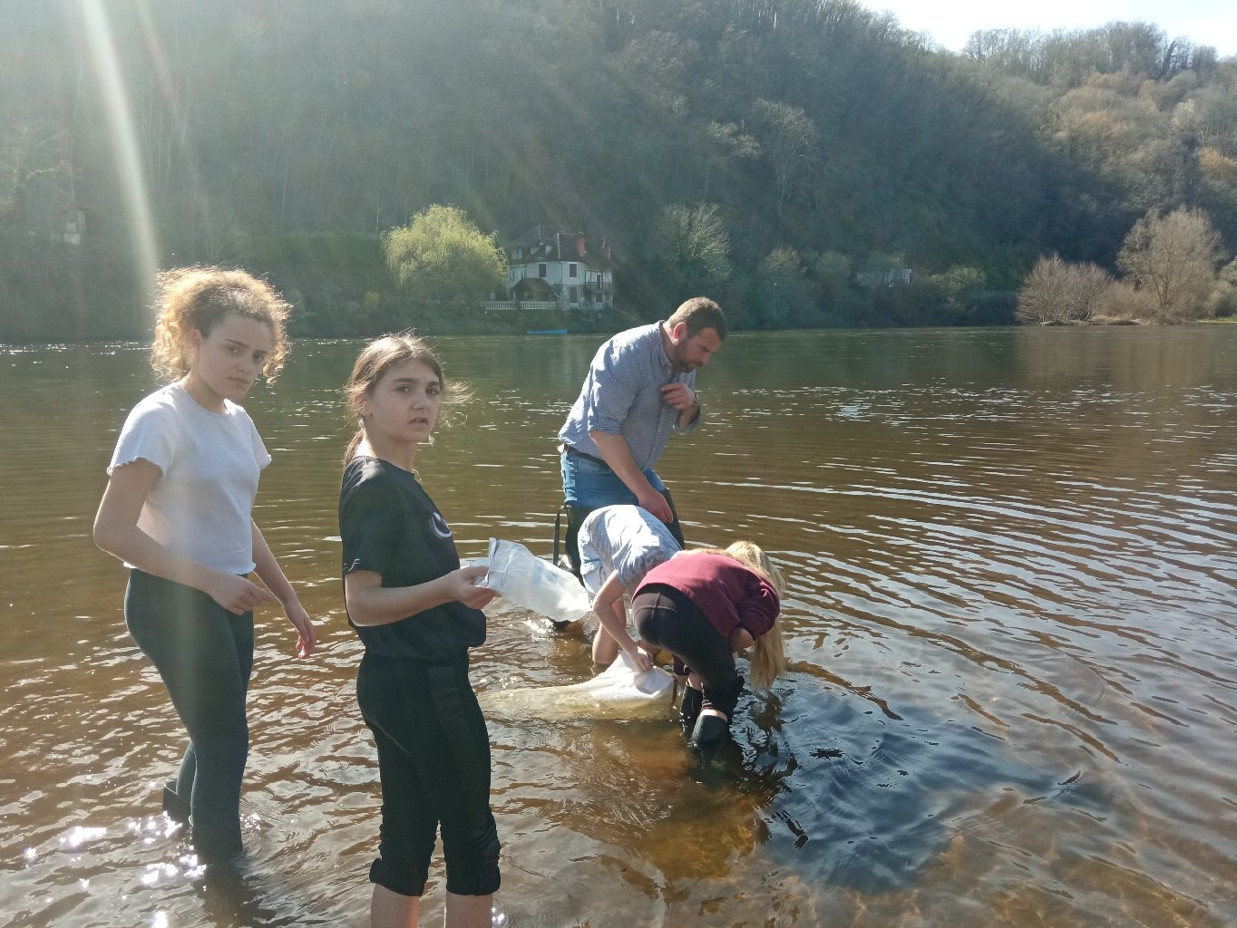 Les élèves de 6A et de 6B ont réalisé le lundi 20 mars un indice biotique sur la Dordogne. Il s’agit de prélever avec un filet surber spécifique et normé les êtres vivants de la zone étudiée de la Dordogne en nettoyant avec minutie chaque galet.