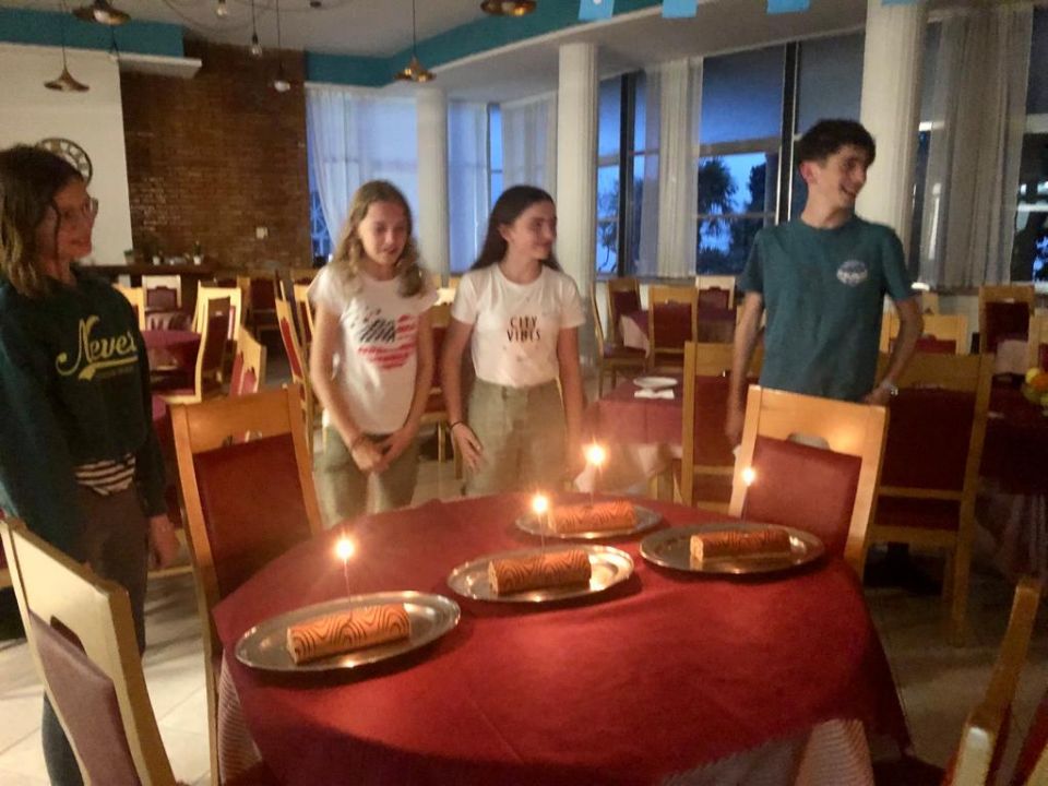 Ce soir nous avons fait une surprise à Ambre, Maëlane, Chloé et Titouan dont c’était l’anniversaire : gâteau, bougie et petite chanson.