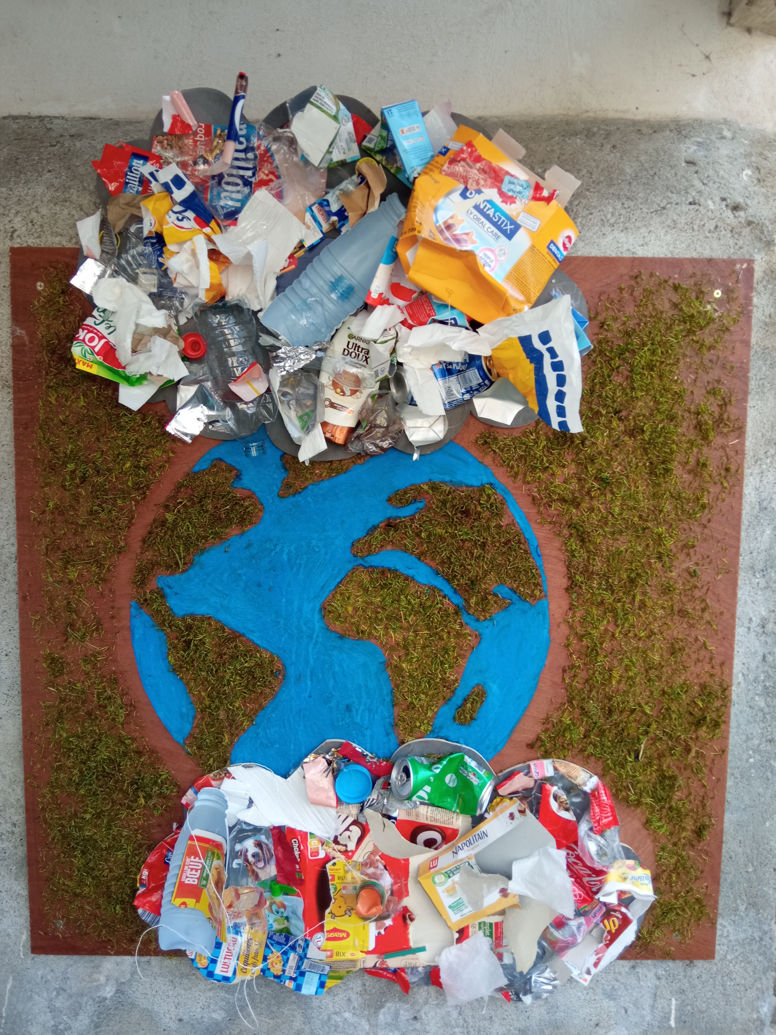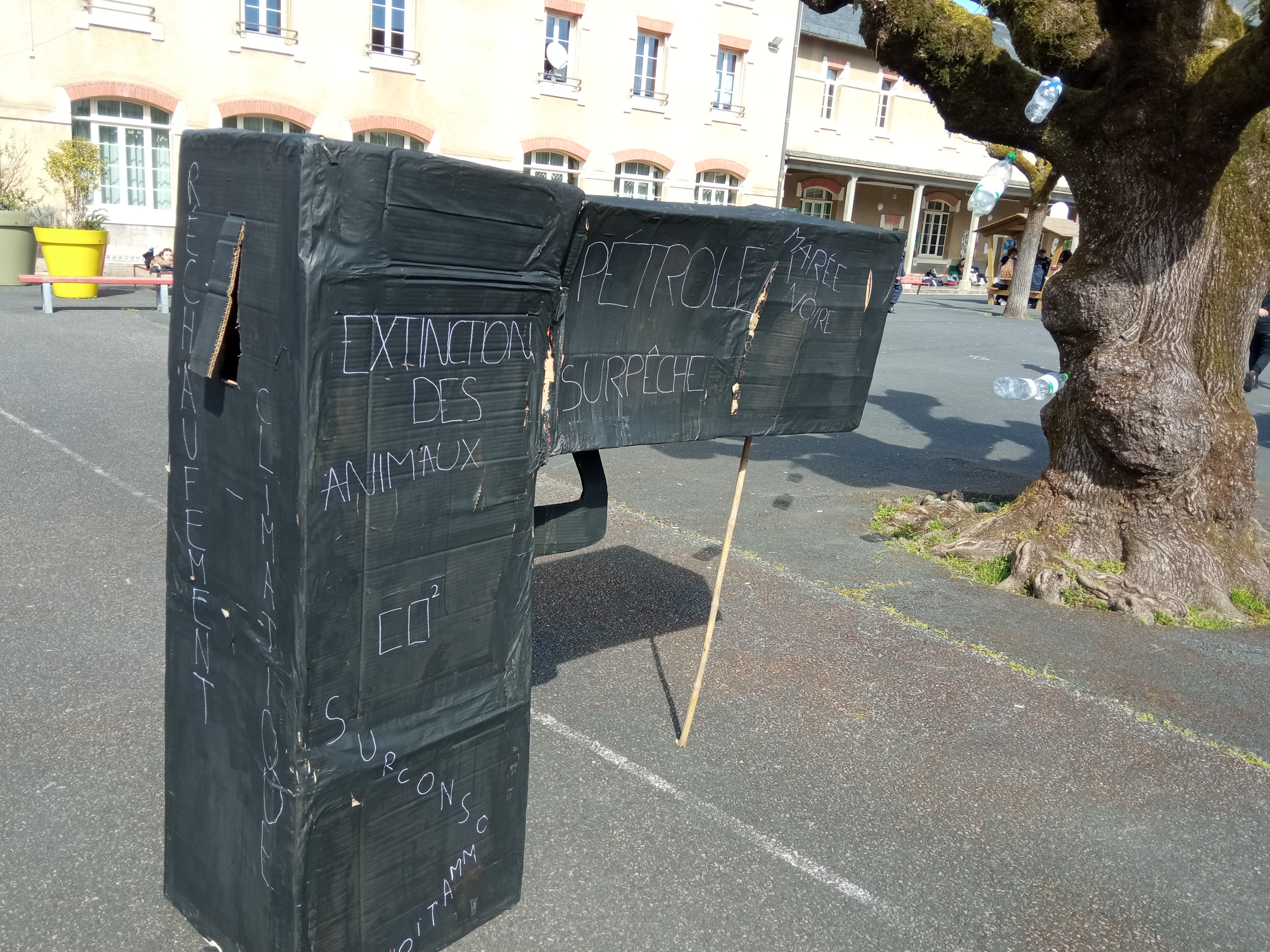 Les élèves de 3e ont exposé dans la cour leurs oeuvres réalisées en Art Plastique dans le cadre de la semaine du développement durable.