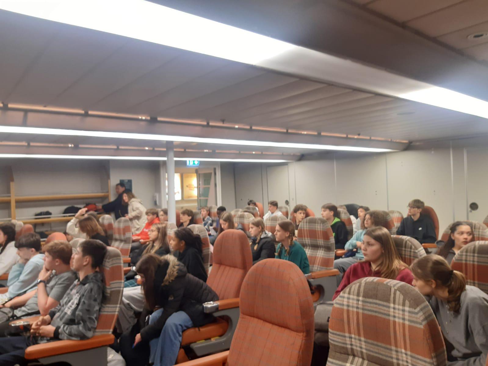 Arrivés à Portsmouth à 6:30, nous sommes à présent en route vers Torquay. Les élèves sont très sages et vont reprendre des forces avant cette première journée.