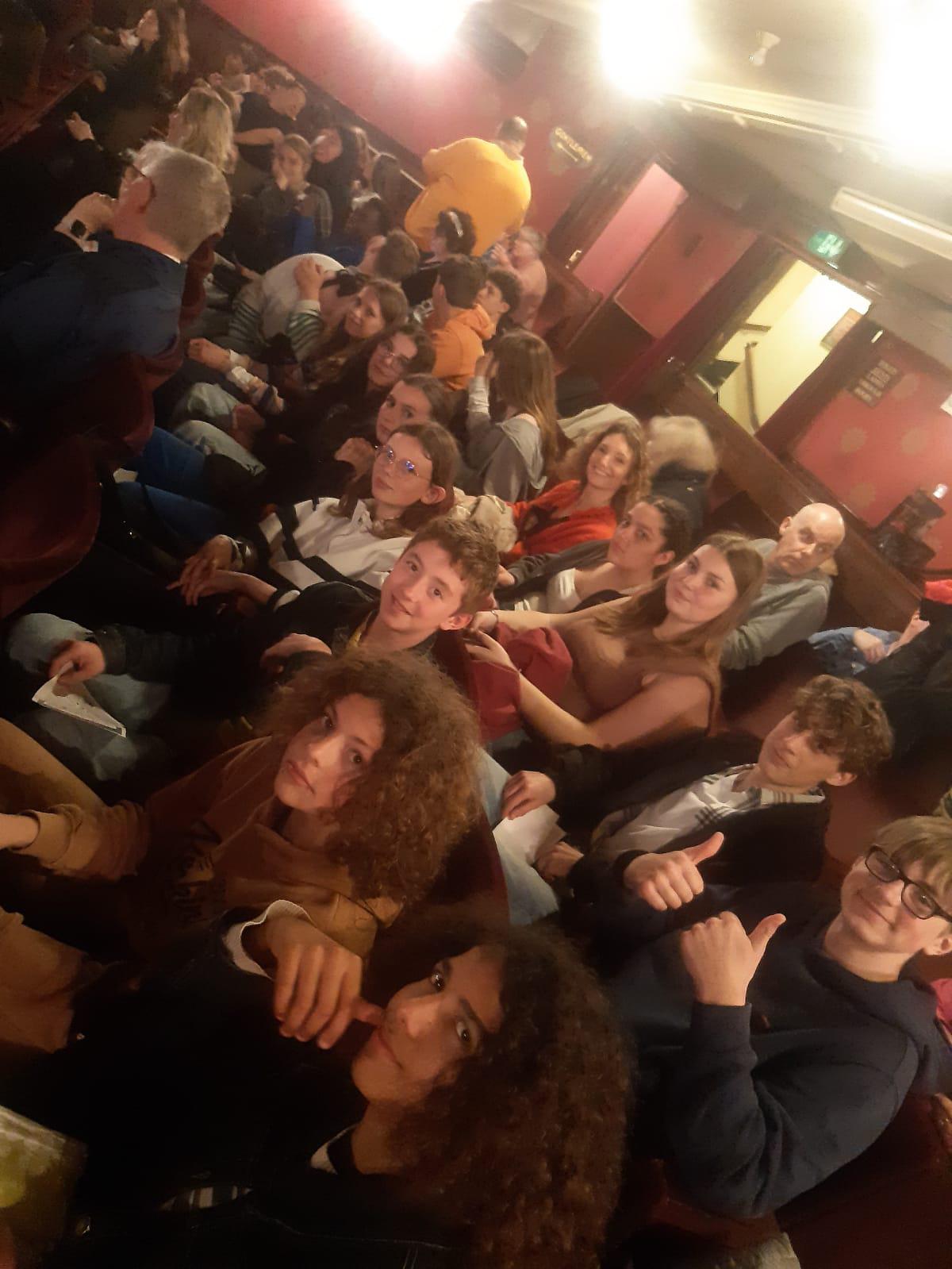 La pièce The Mousetrap a bien plu aux élèves qui étaient tout de même contents de bien connaître l’histoire ! En sortant, cerise sur le gâteau, nous avons eu le plaisir de rencontrer deux des acteurs qui ont accepté avec joie de prendre un selfie avec nous.