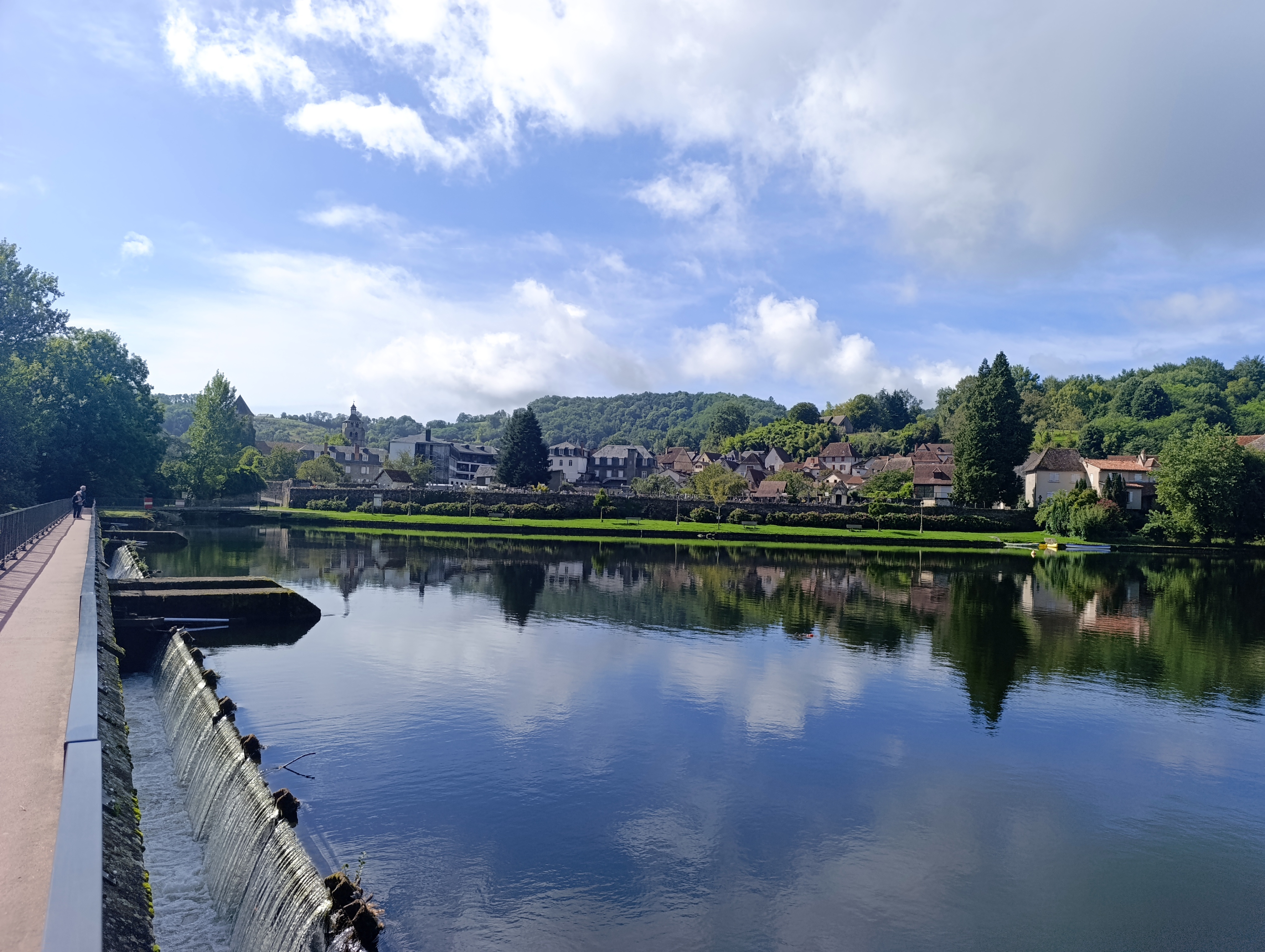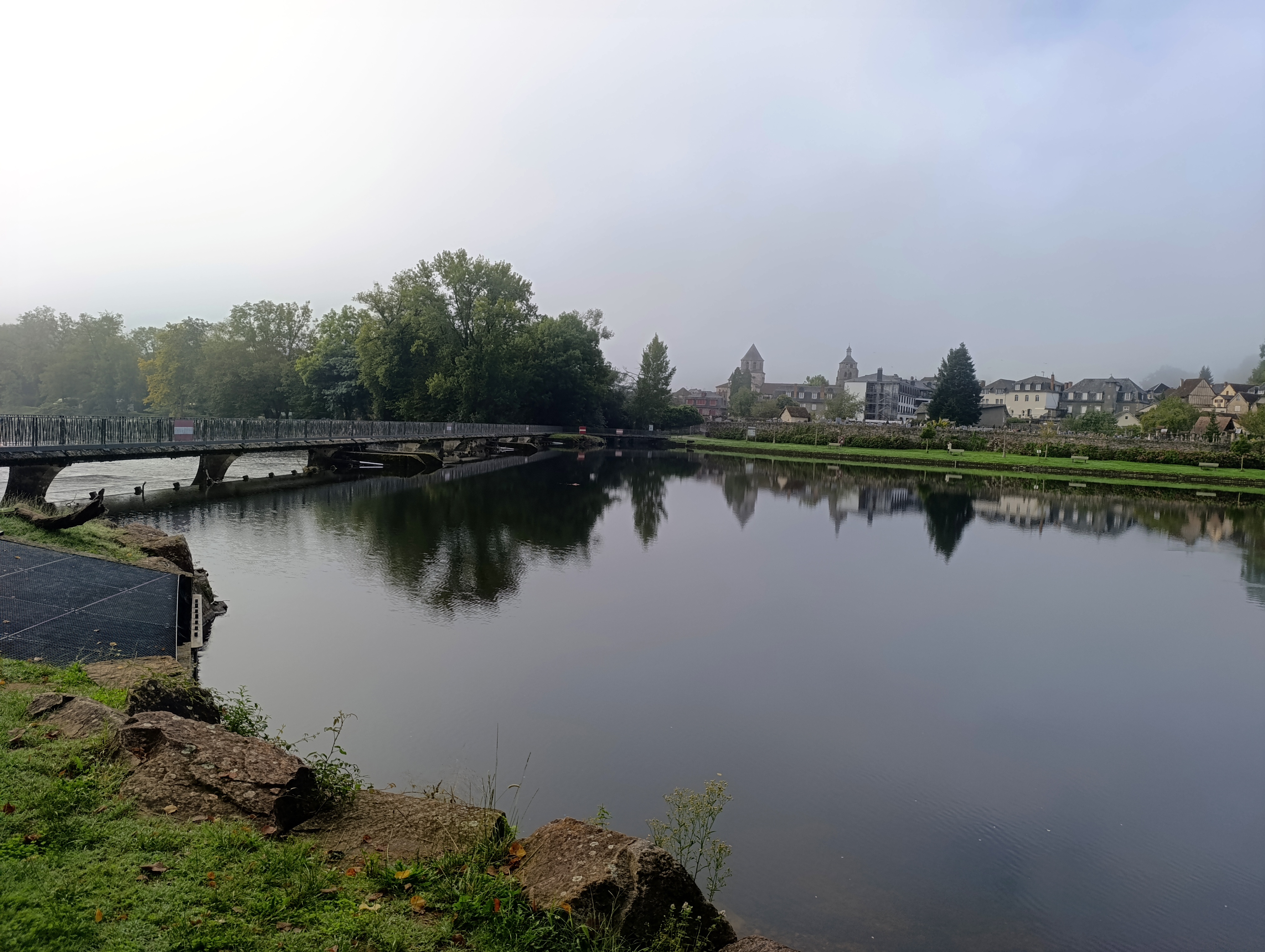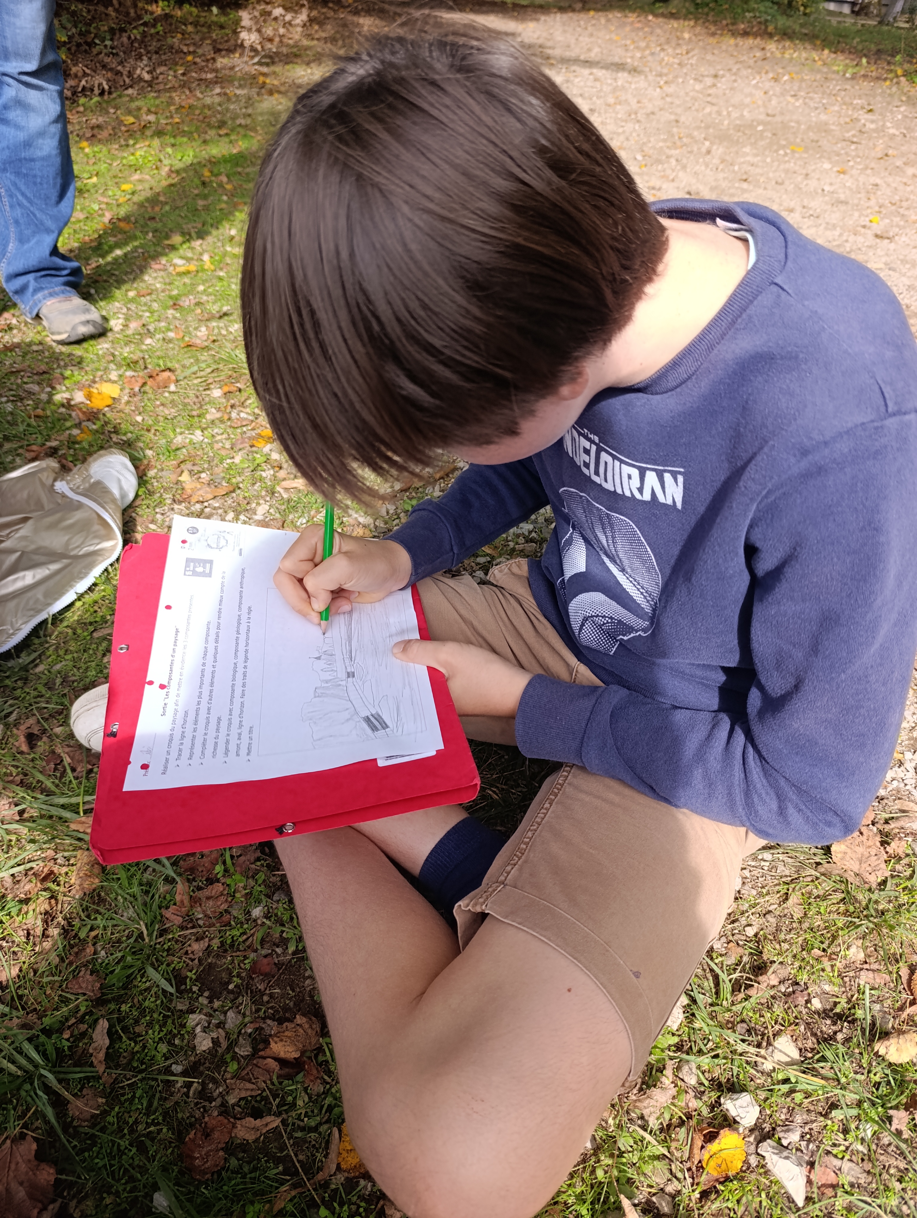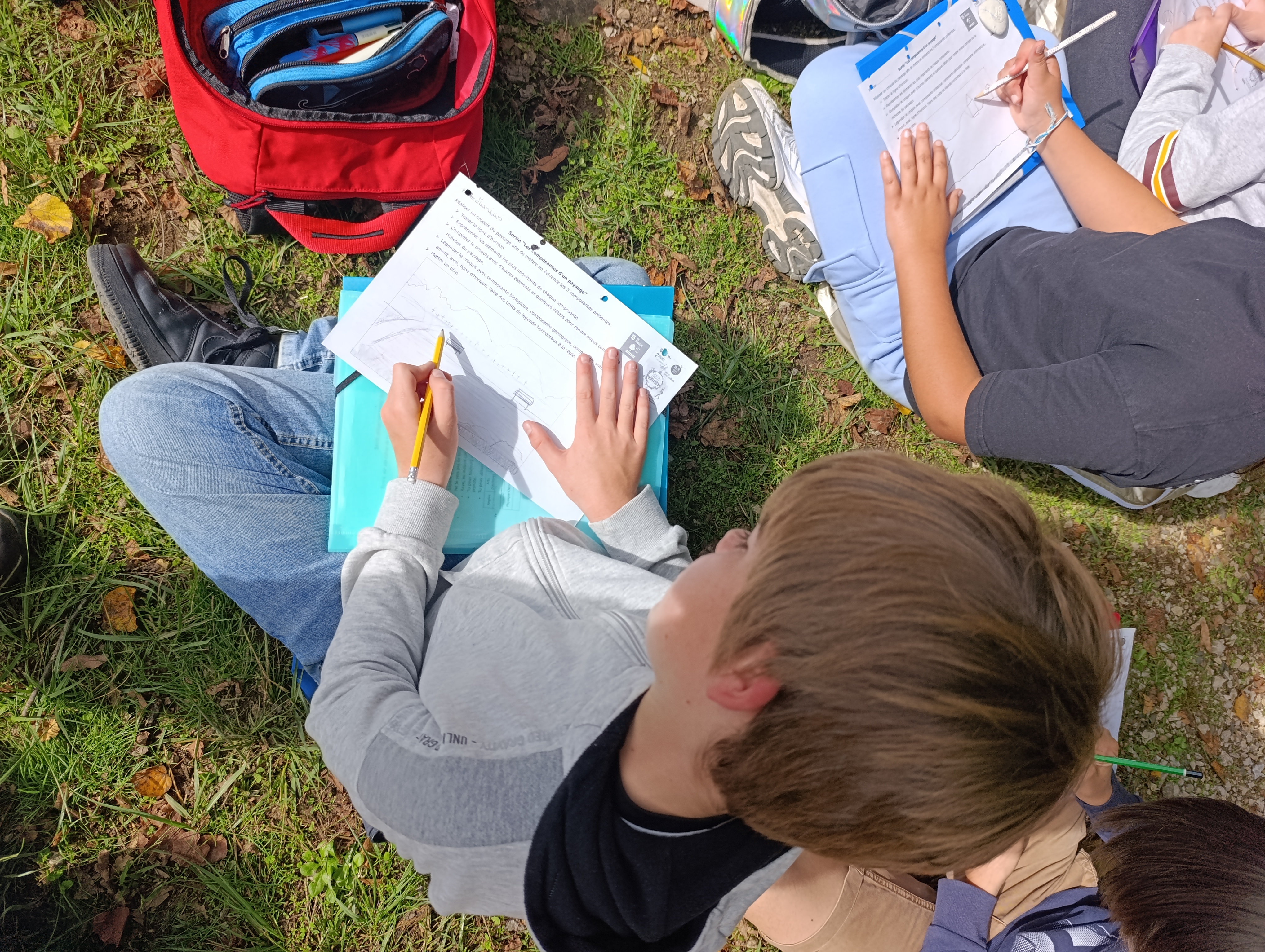 Nous avons aussi réalisé un croquis du paysage afin de mettre en évidence les 3 composantes de l’environnement vues en classe : la composante biologique formée par les êtres vivants et leurs restes, la composante géologique regroupant les éléments naturels non vivants comme la Dordogne et la composante anthropique constituée par toutes les constructions humaines comme la passerelle par exemple.