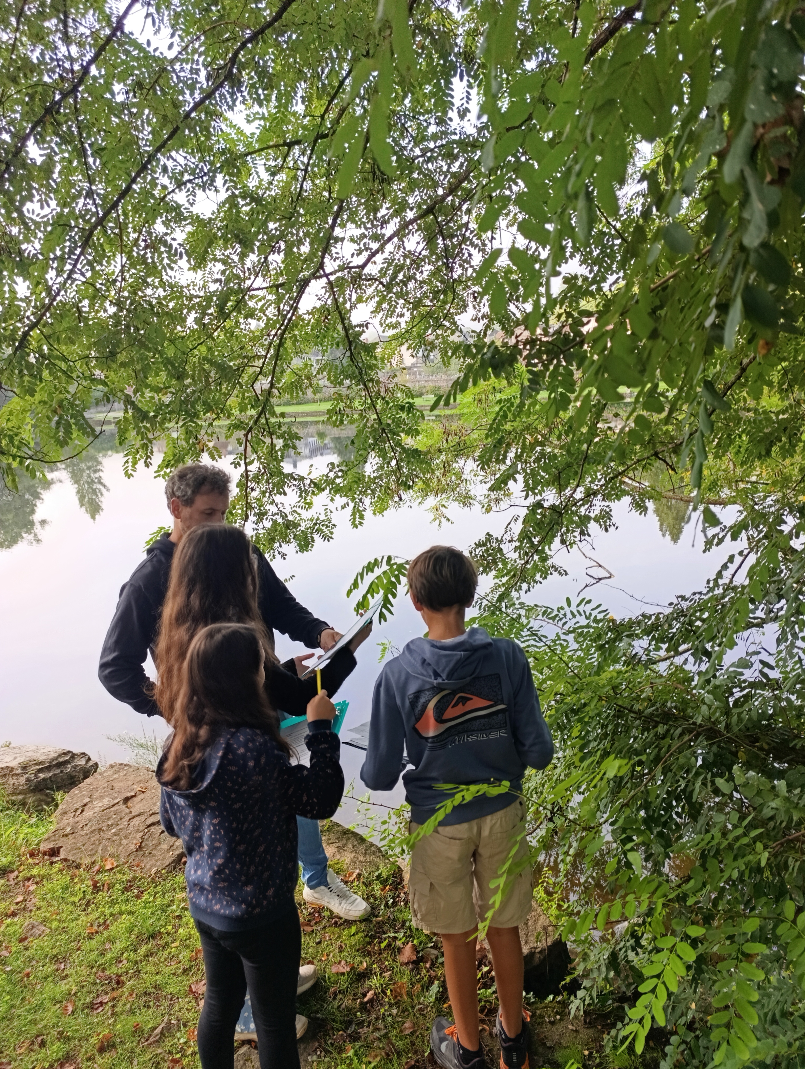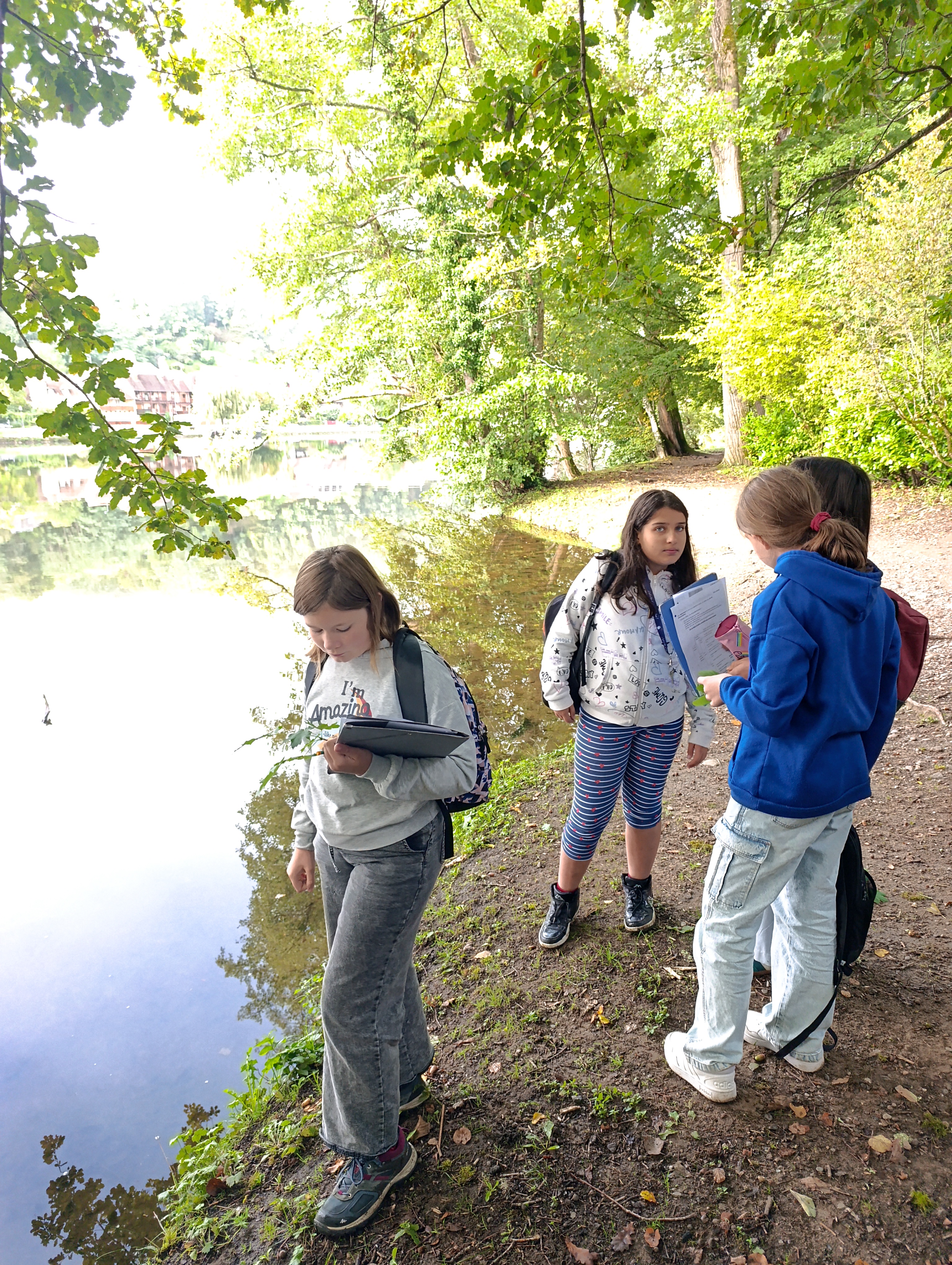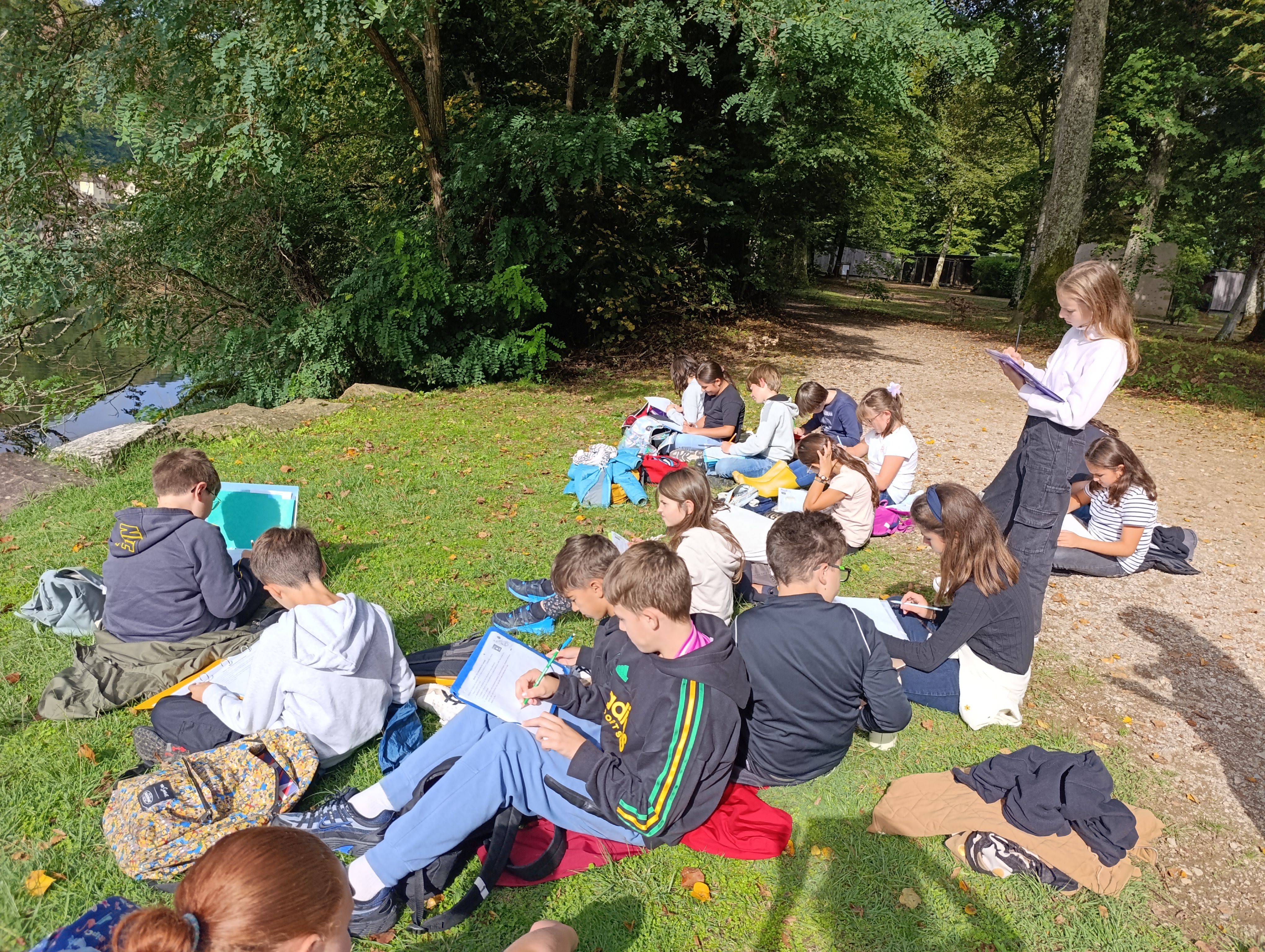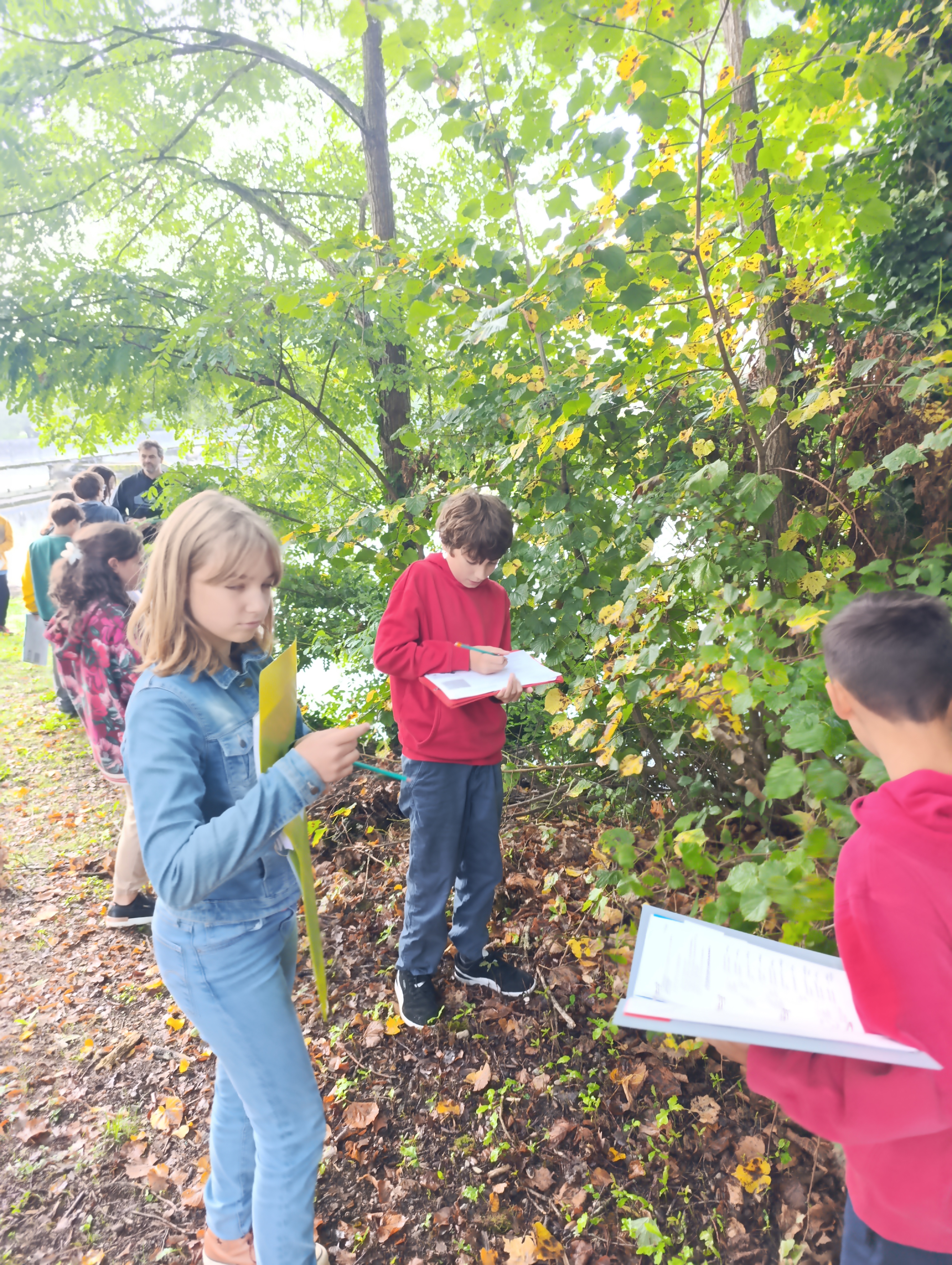 Les 2 classes de 6e ont remobilisé les connaissances acquises lors de la sortie de la semaine dernière : ils ont déterminé en autonomie munis de la clé de détermination 6 arbres présents sur la rive gauche de la Dordogne au niveau de la passerelle : robinier faux-acacia, charme, tilleul, chêne, érable et aulne. Les feuilles simples ou composées, opposées ou alternées, aux bords dentés, lobés ou lisses n’ont plus de secret pour eux ! L’aulne est l’arbre spécifique aux berges de rivière. D’autres arbres ne sont pas spécifiques d’un milieu en particulier et ont été retrouvés sans les 2 écosystèmes comme le charme, le chêne et le robinier faux-acacia.