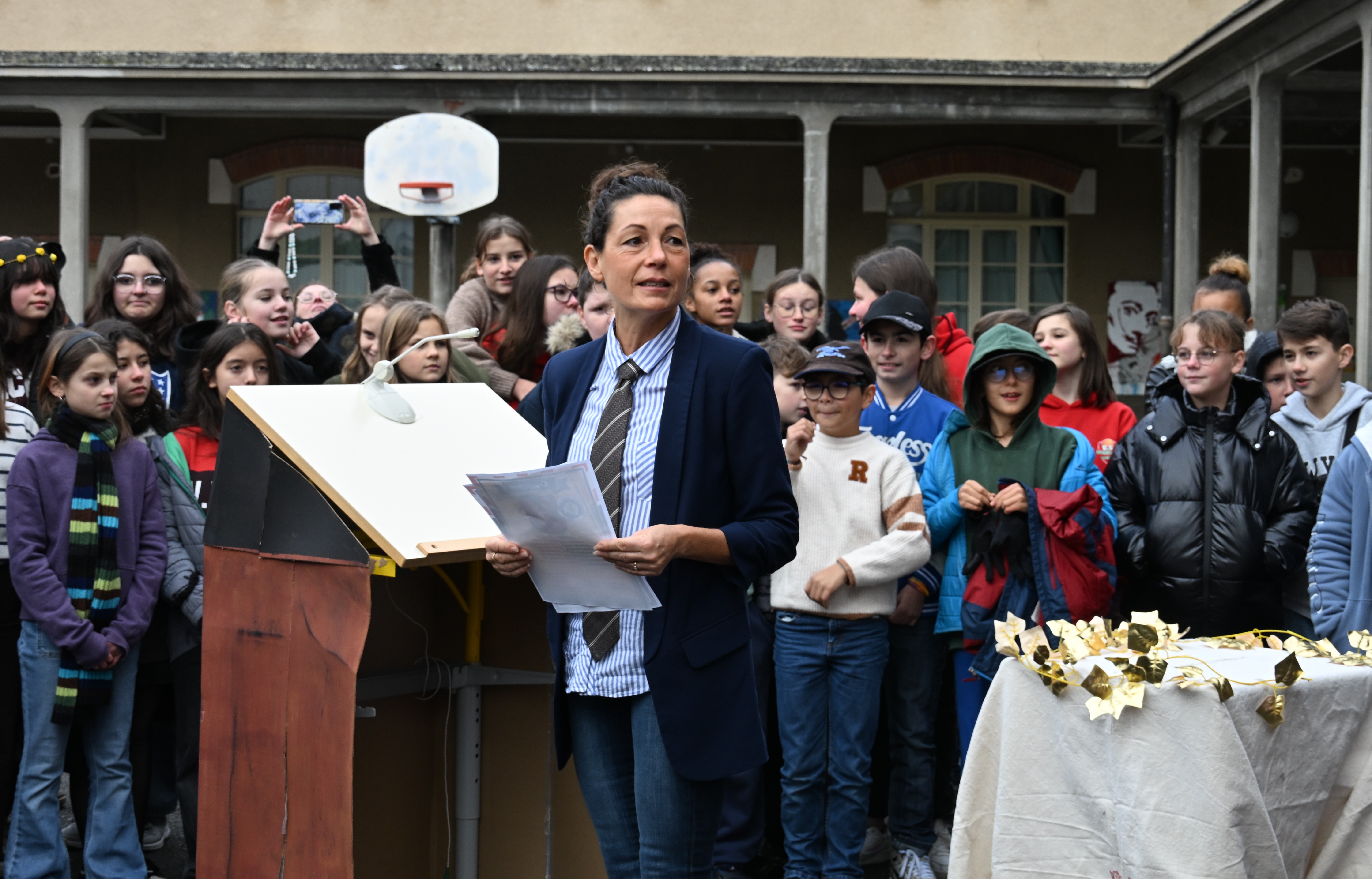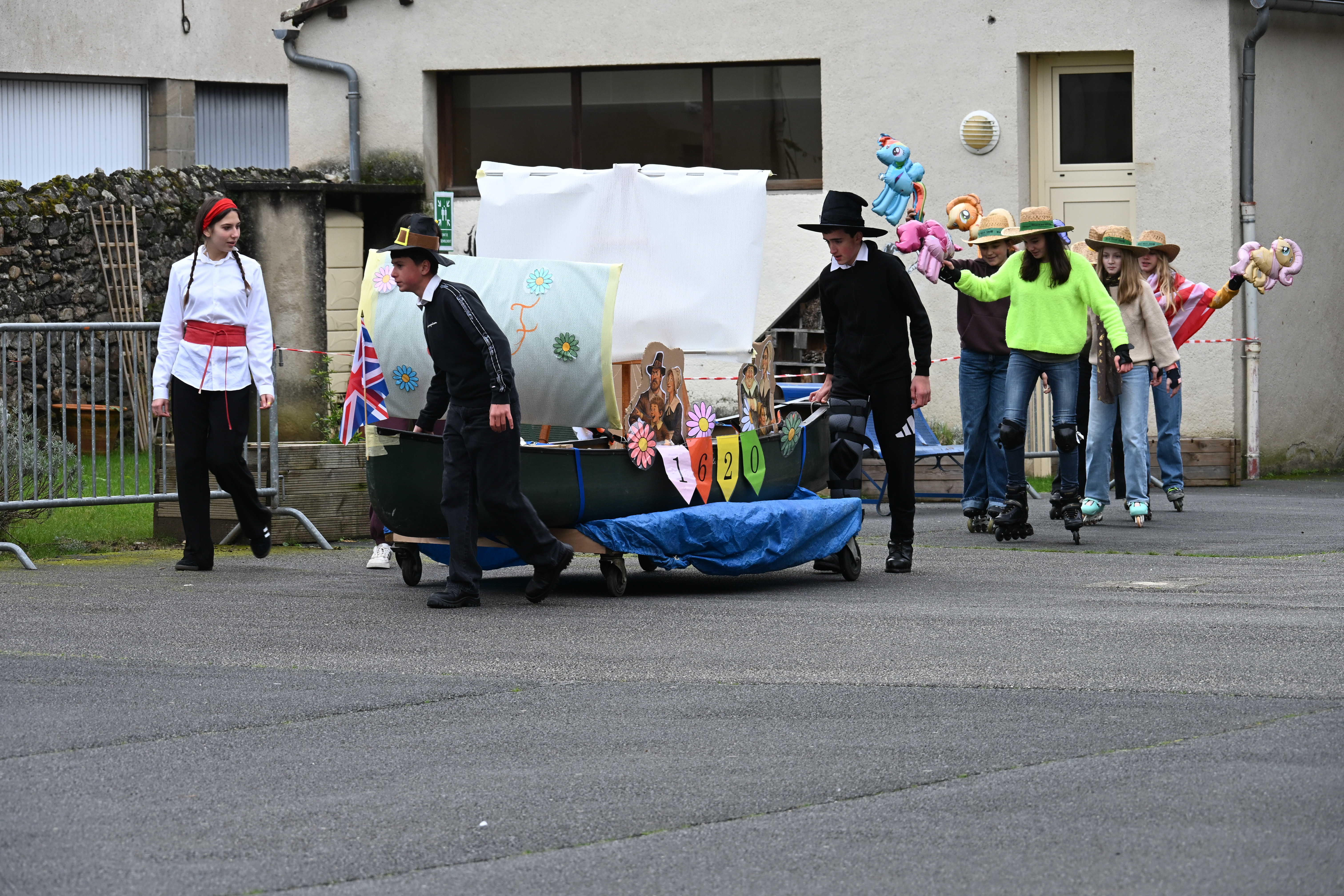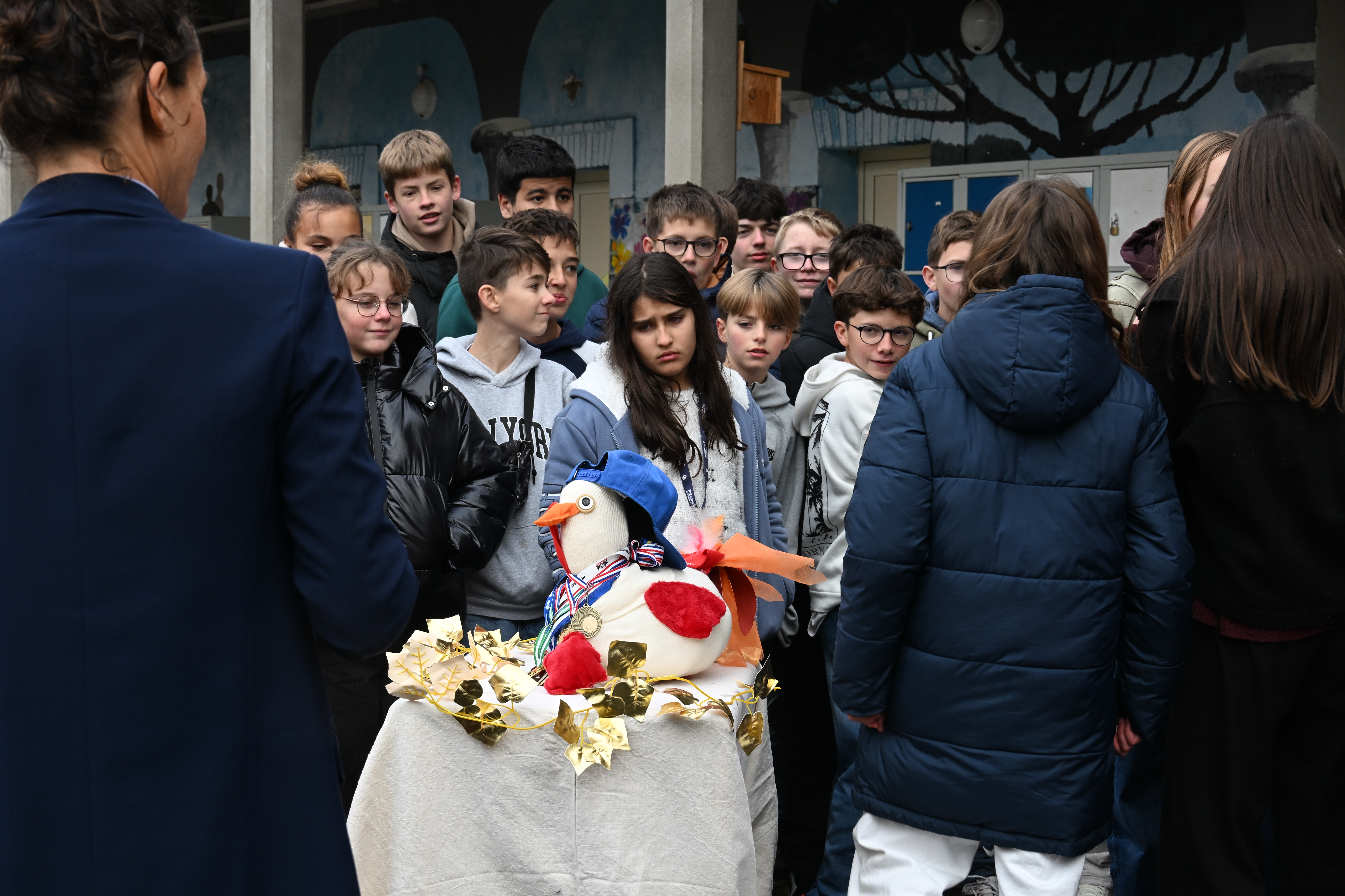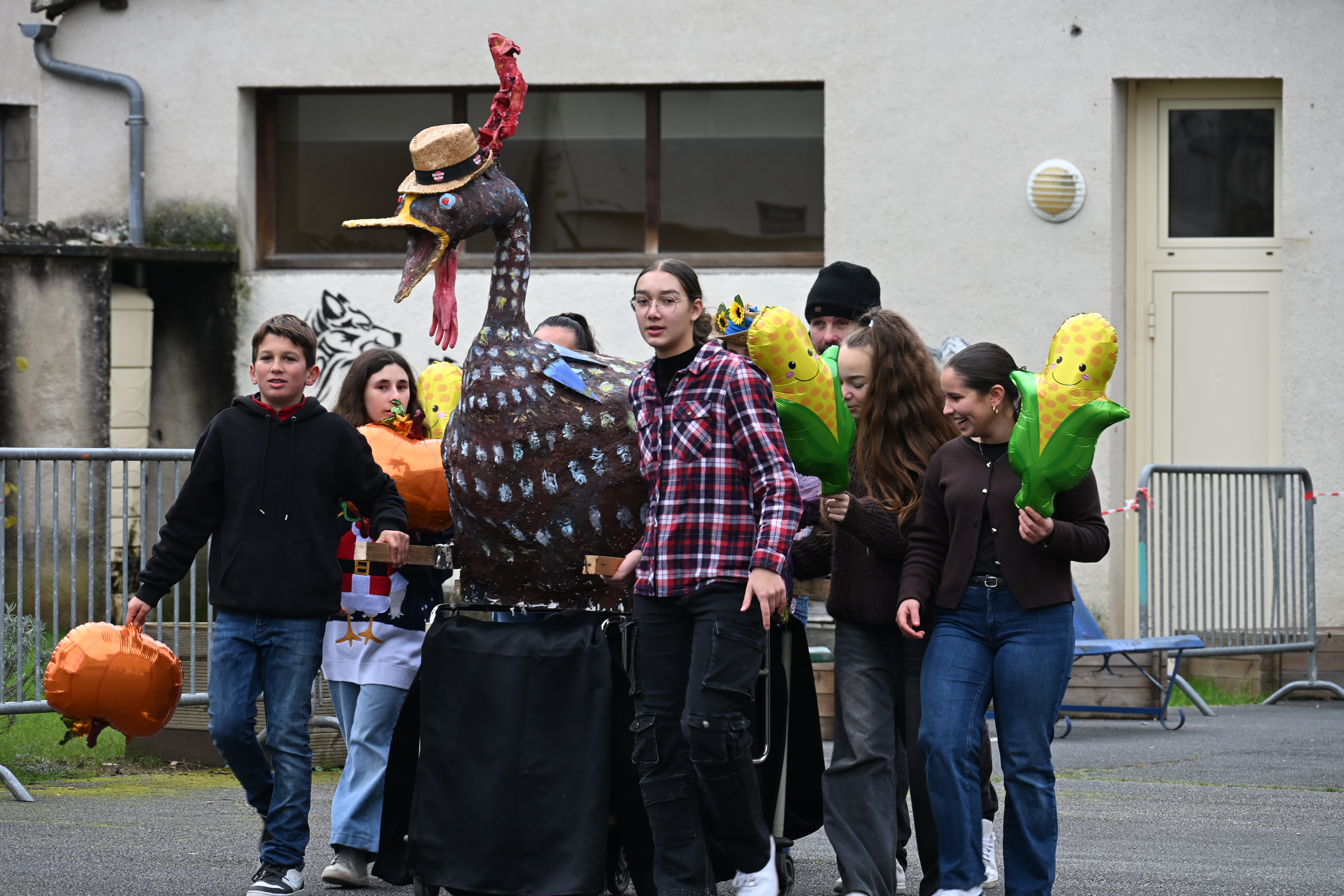 Temps fort de la journée, la cérémonie solennelle de la “grâce de la dinde” (turkey pardon) a été précédée d’un discours empreint d’émotion de Mme Dupuy, principale de l’établissement. Elle a été suivie d’une parade festive dans la cour du collège, ouverte par une impressionnante dinde en plâtre de 60 kilos, réalisée par Paul Gutiez, ancien professeur. Les élèves ont ensuite défilé costumés en personnages emblématiques, du Mayflower à Spiderman, mêlant références culturelles, créativité et bonne humeur. Rapidement, l’ensemble des élèves s’est laissé entraîner dans une joyeuse sarabande.