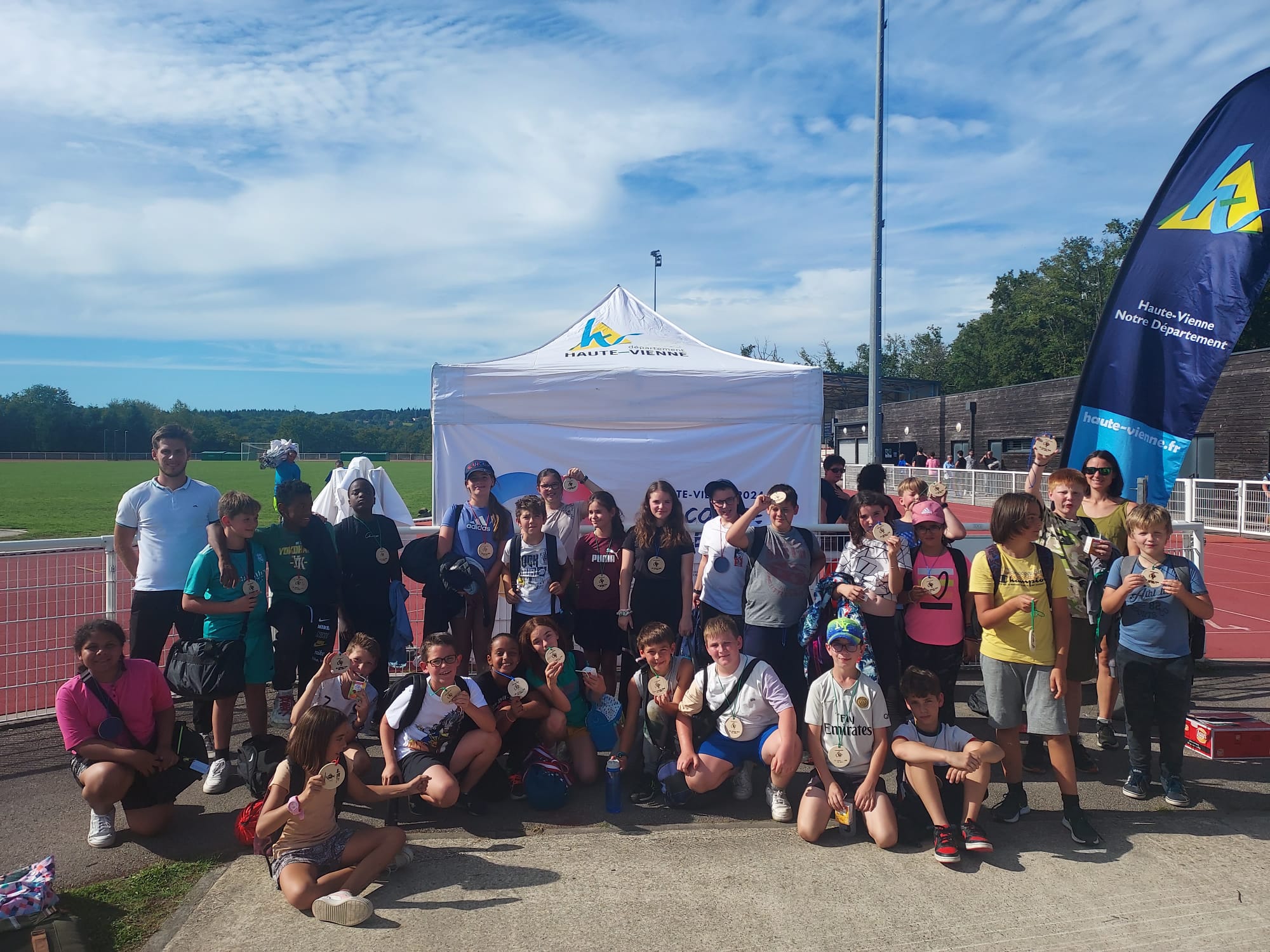 C’est sous un magnifique soleil que les élèves de 6ème ont participé, mardi 26 septembre 2023, à l’opération "En course pour les jeux !", organisée par le Département de la Haute-Vienne et le Comité départemental olympique et sportif de la Haute-vienne, en partenariat avec la Direction des services départementaux de l’Education nationale, l’UNSS et l’USEP 87.
