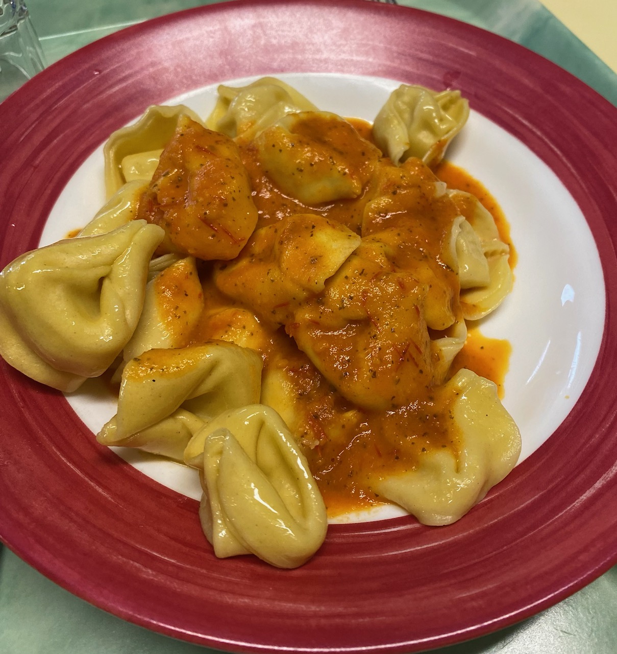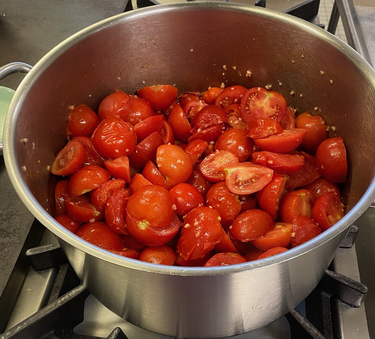 Aujourd’hui, pour le déjeuner, ce dernier les a préparées en sauce tomate pour agrémenter les tortellinis.