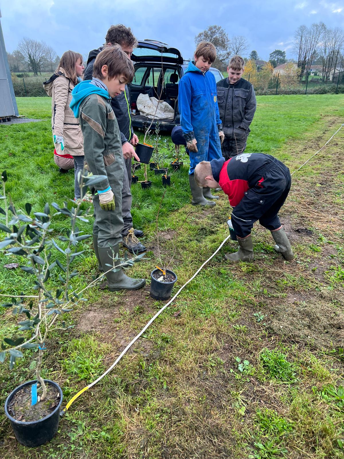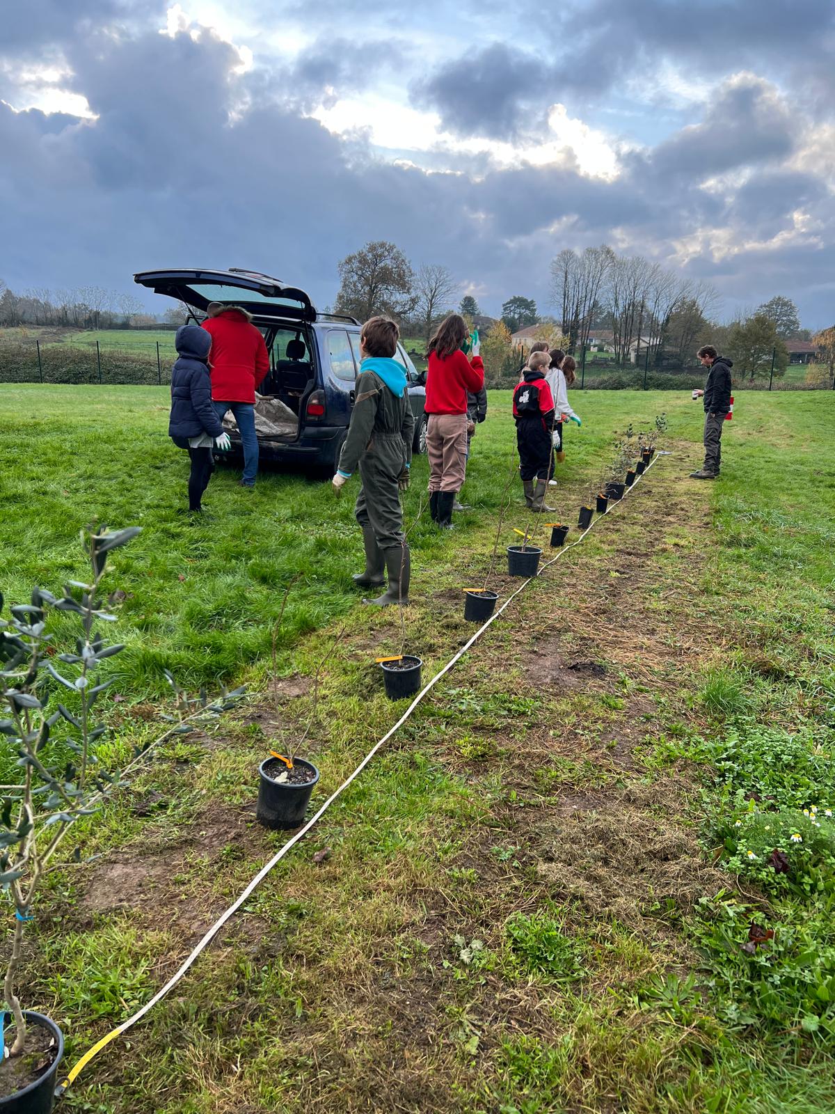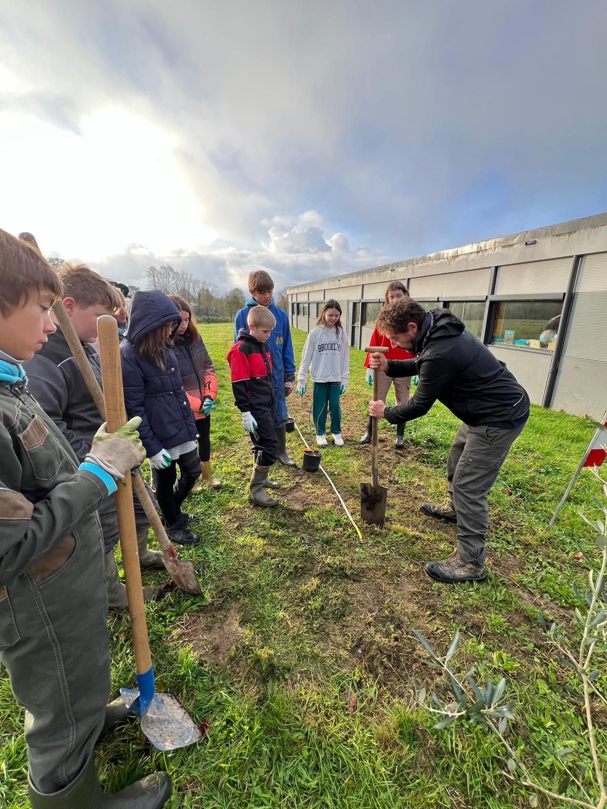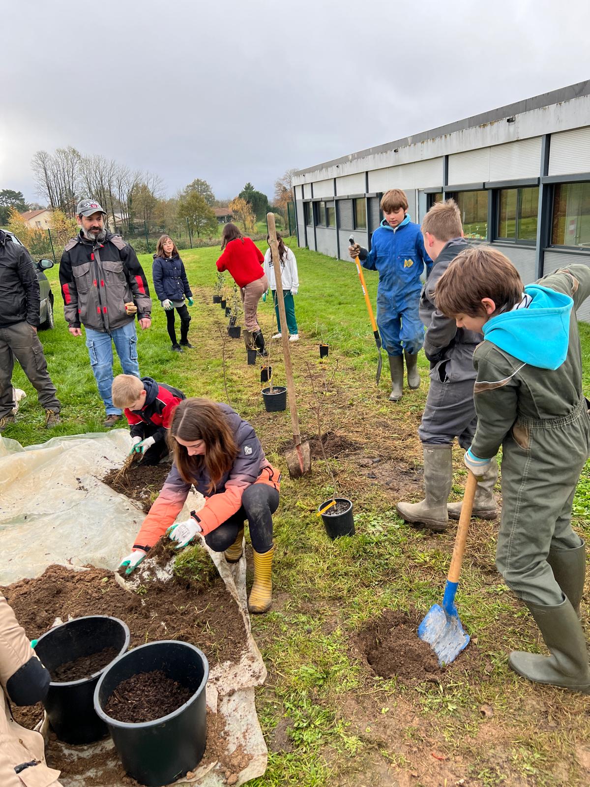 Mardi 26 novembre 2024, 9 élèves (éco-délégués, membres du Club Nature) du Collège Gisèle Halimi ont planté une haie fruitière composée de Feijoa, Aronia, Noisetier, Framboisier, Olivier, Groseillier, financés par le CD87 et fournis par « la Pépinière à Fruits » située à quelques kilomètres du collège, au Poulier
