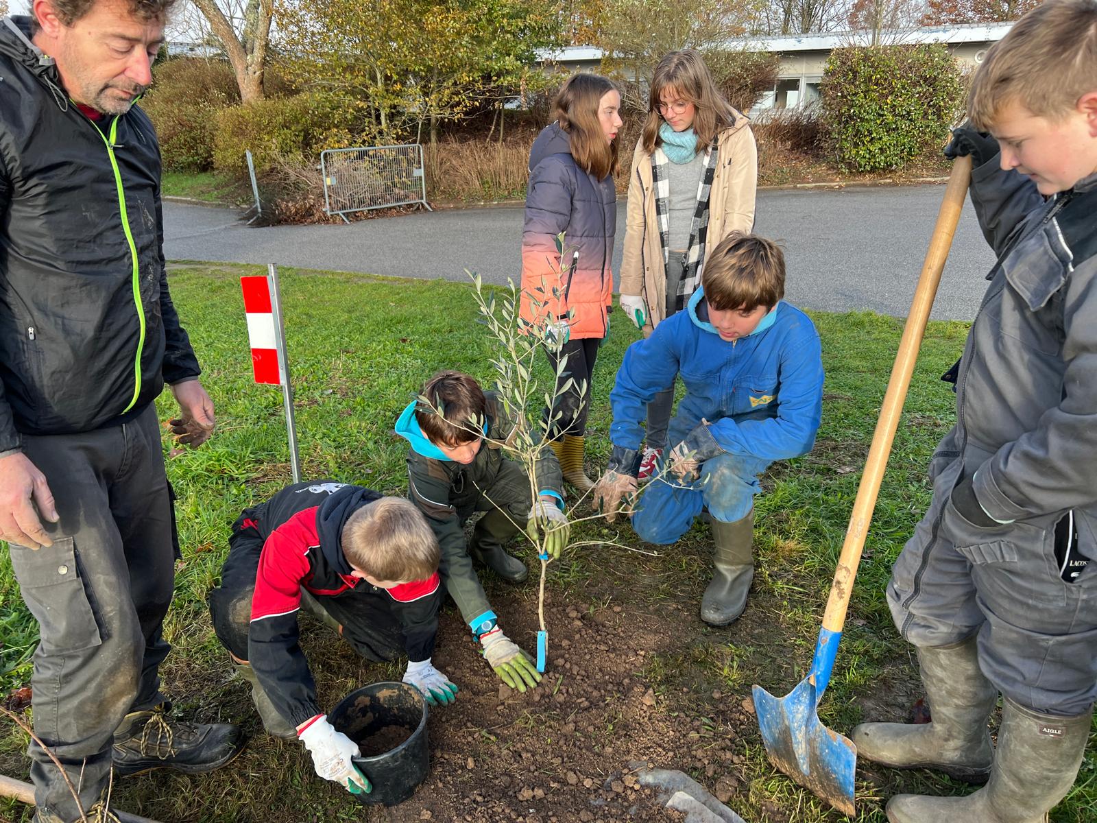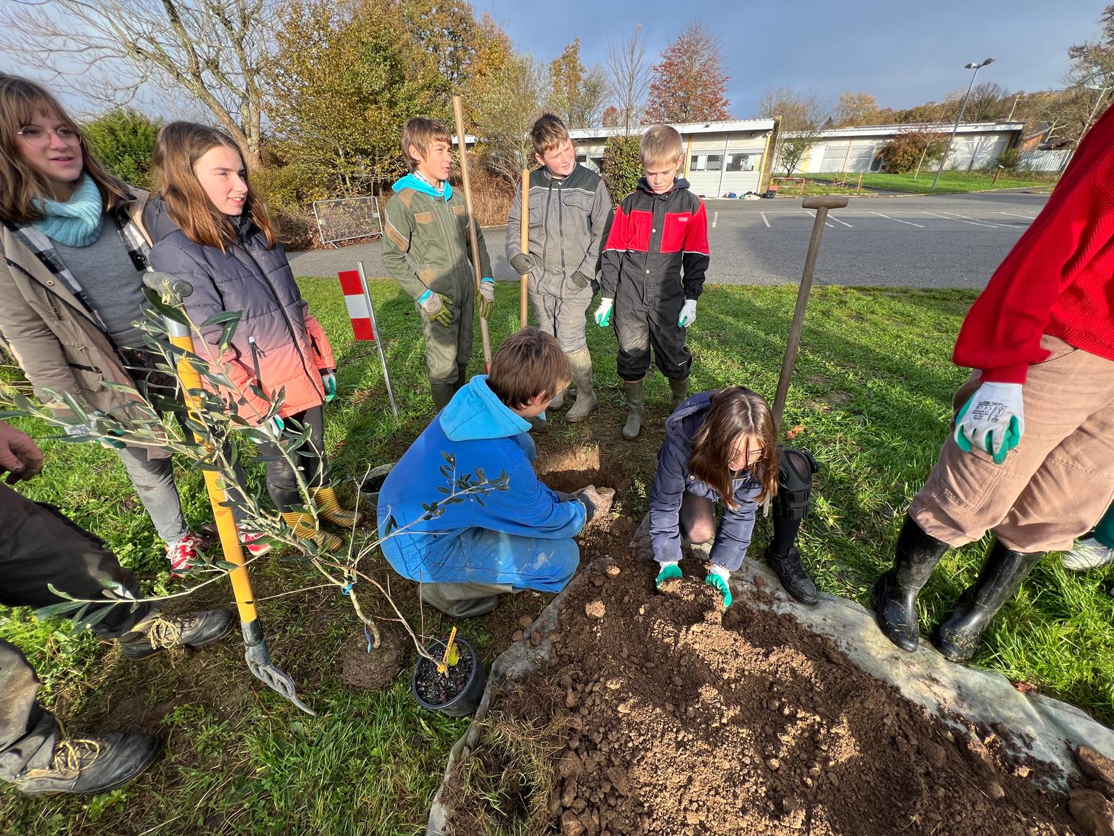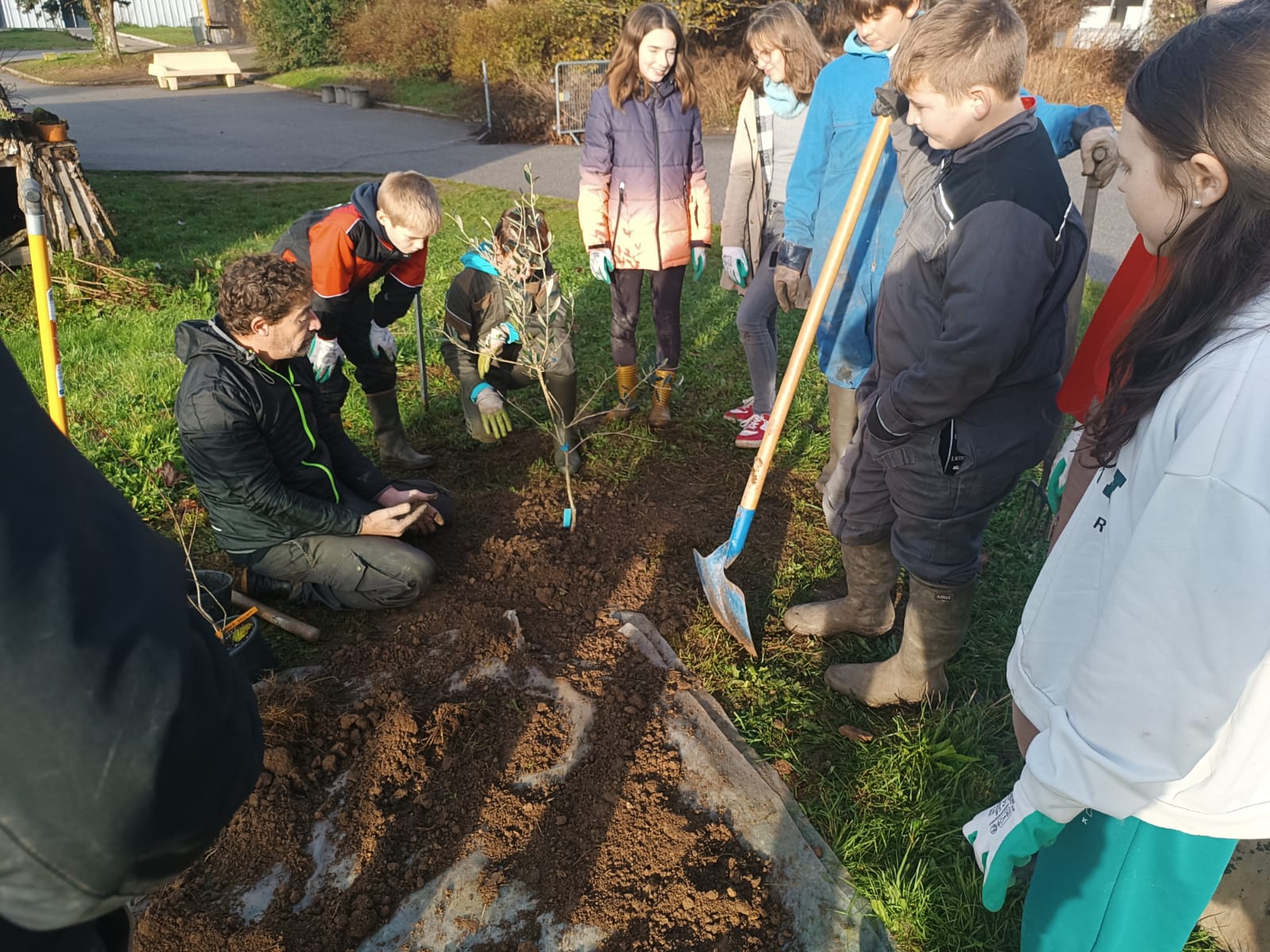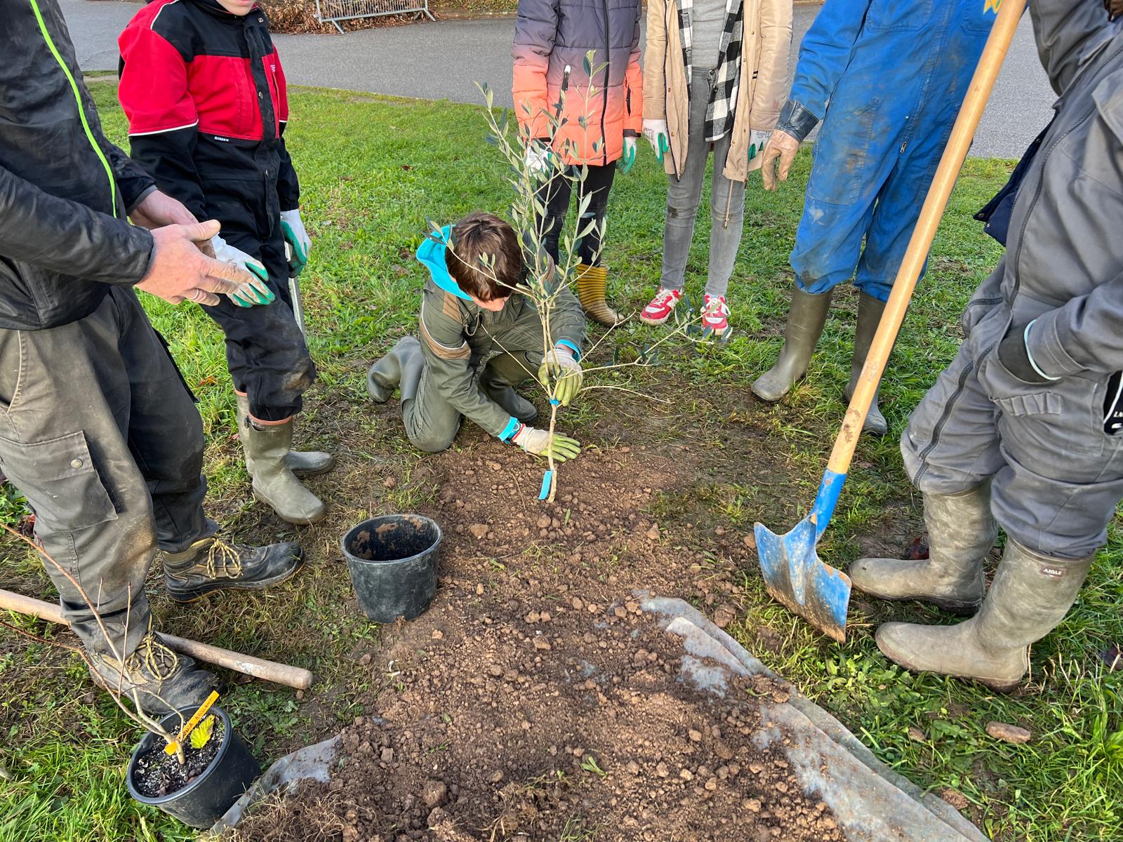 Mardi 26 novembre 2024, 9 élèves (éco-délégués, membres du Club Nature) du Collège Gisèle Halimi ont planté une haie fruitière composée de Feijoa, Aronia, Noisetier, Framboisier, Olivier, Groseillier, financés par le CD87 et fournis par « la Pépinière à Fruits » située à quelques kilomètres du collège, au Poulier