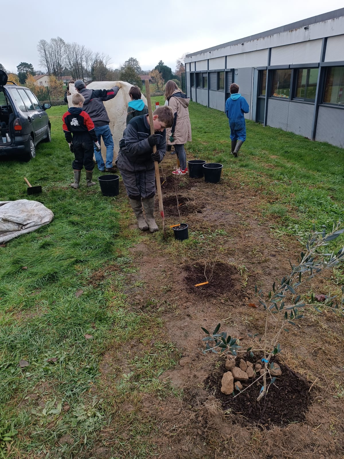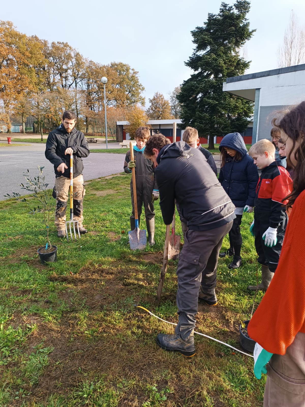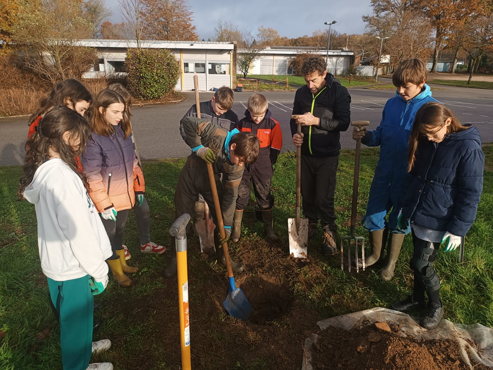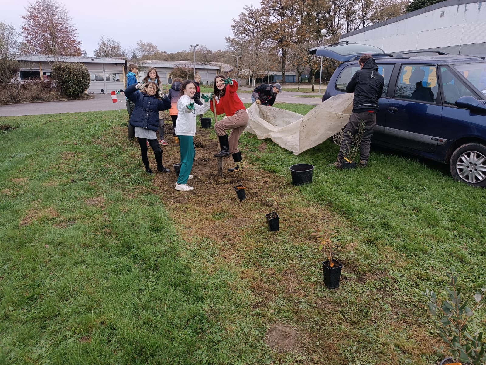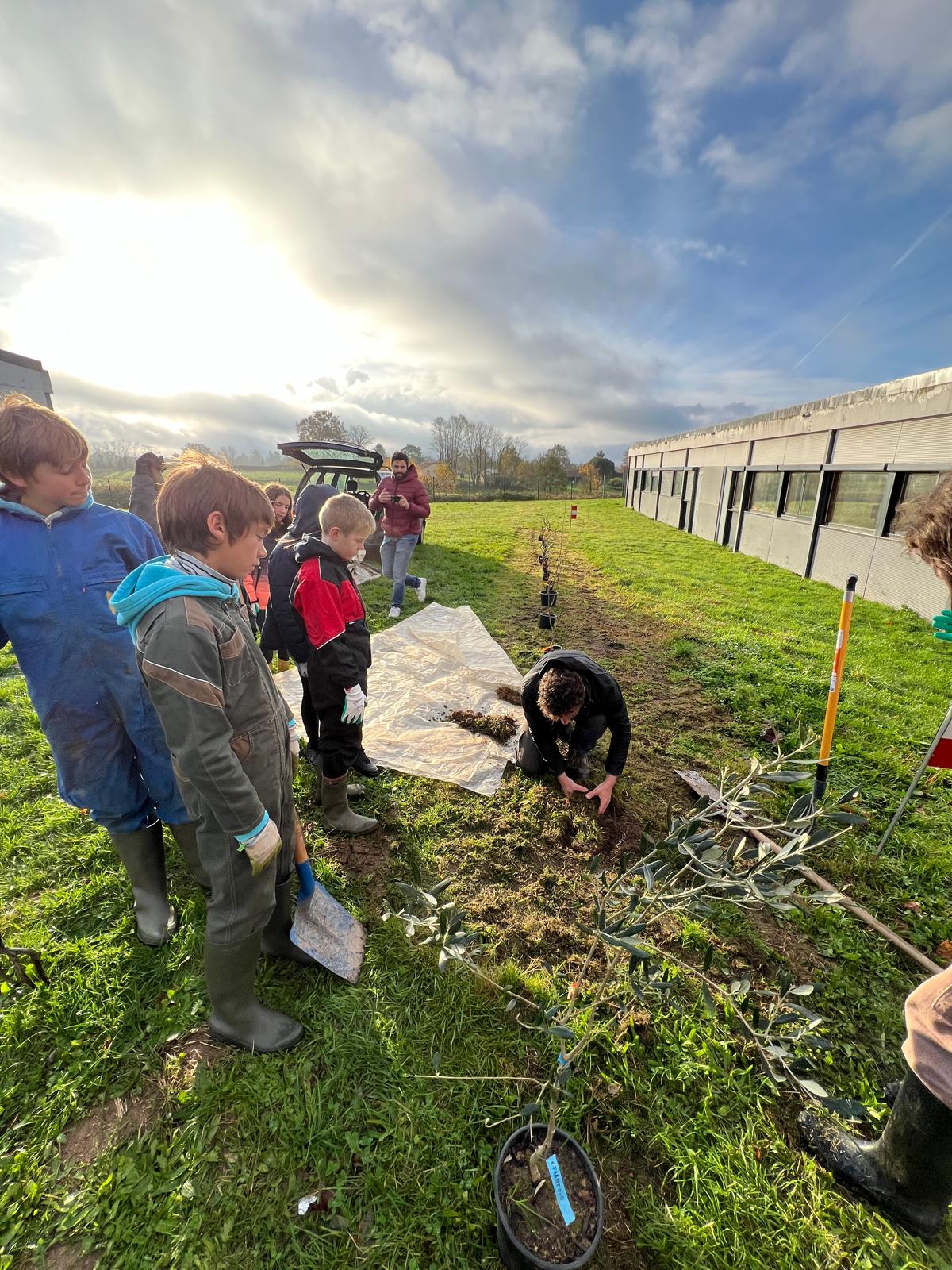 Mardi 26 novembre 2024, 9 élèves (éco-délégués, membres du Club Nature) du Collège Gisèle Halimi ont planté une haie fruitière composée de Feijoa, Aronia, Noisetier, Framboisier, Olivier, Groseillier, financés par le CD87 et fournis par « la Pépinière à Fruits » située à quelques kilomètres du collège, au Poulier