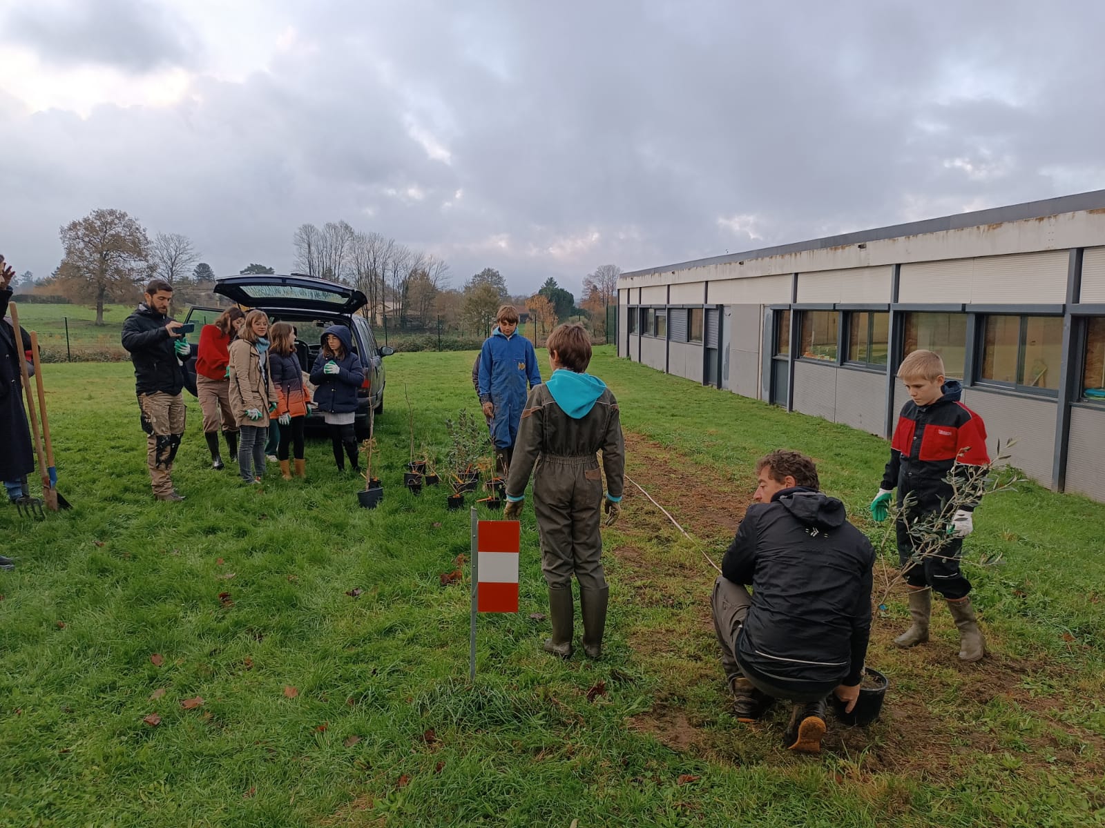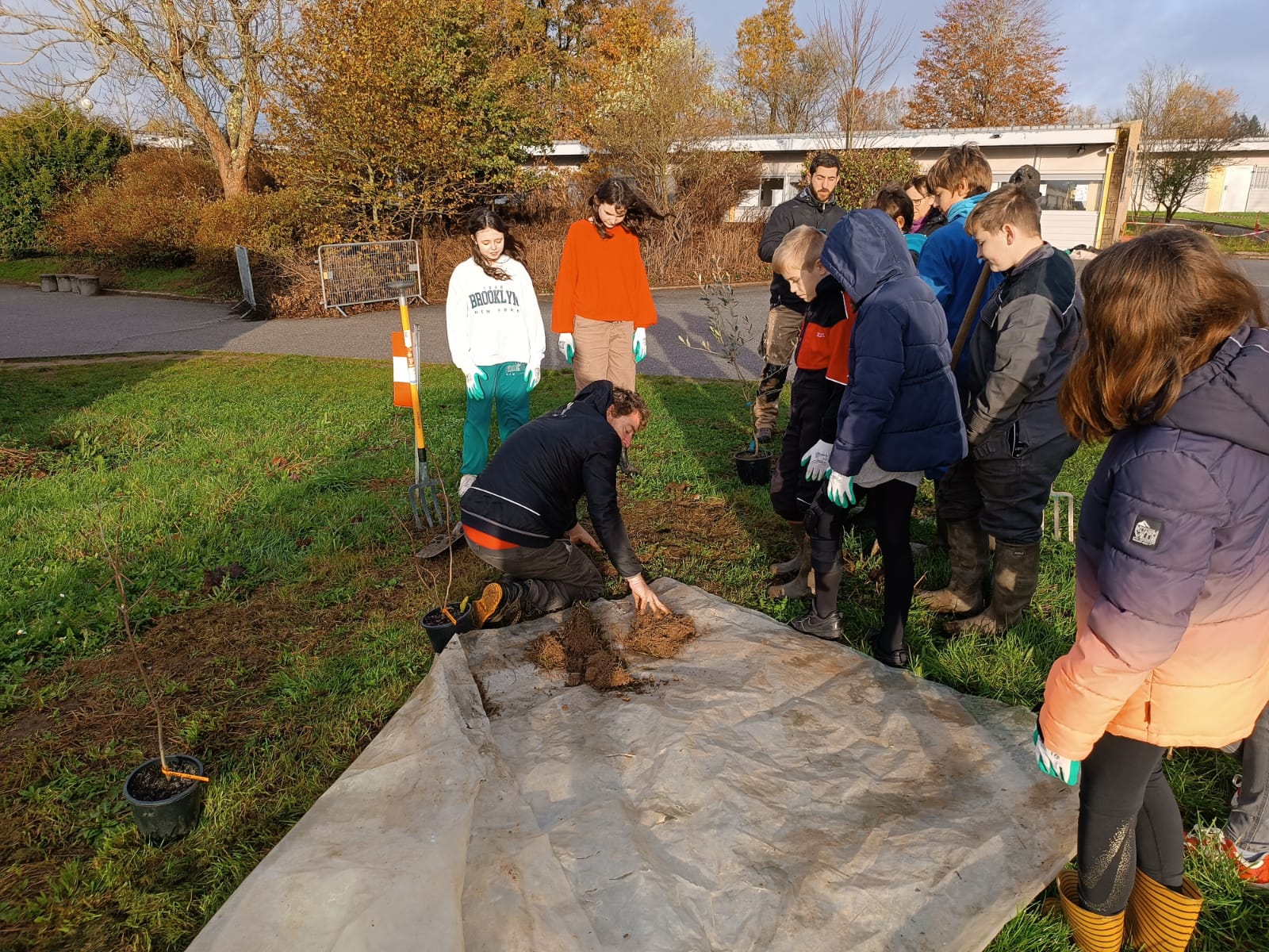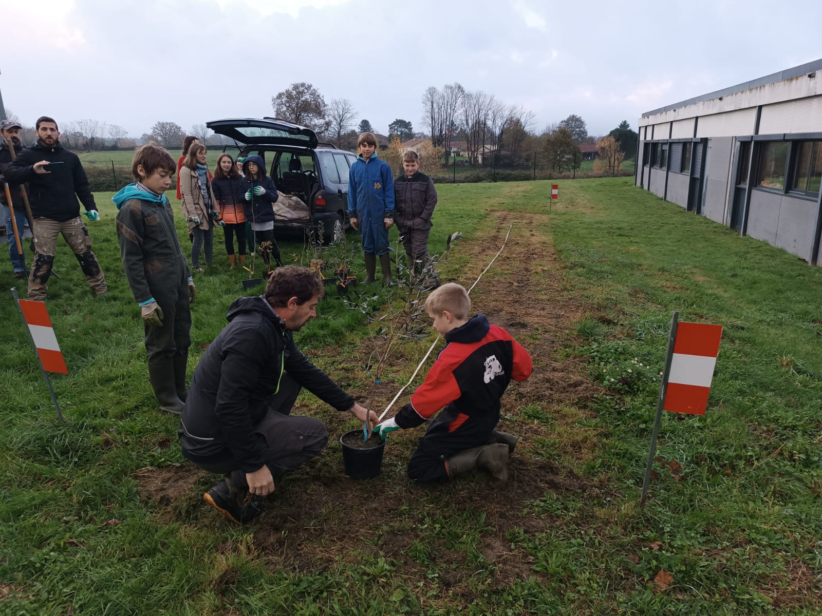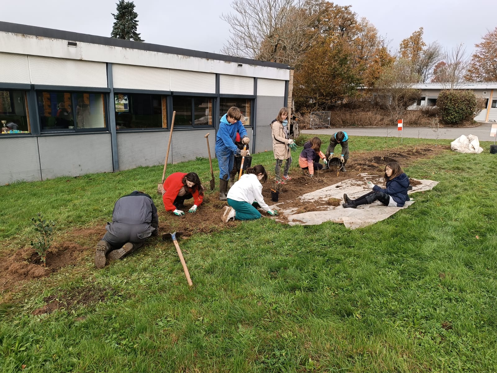Mardi 26 novembre 2024, 9 élèves (éco-délégués, membres du Club Nature) du Collège Gisèle Halimi ont planté une haie fruitière composée de Feijoa, Aronia, Noisetier, Framboisier, Olivier, Groseillier, financés par le CD87 et fournis par « la Pépinière à Fruits » située à quelques kilomètres du collège, au Poulier