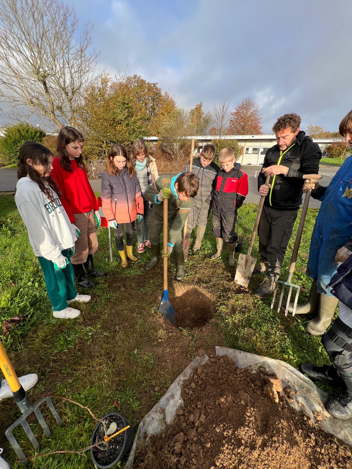 Plantation d’une haie fruitière au Collège Gisèle Halimi, Saint Mathieu