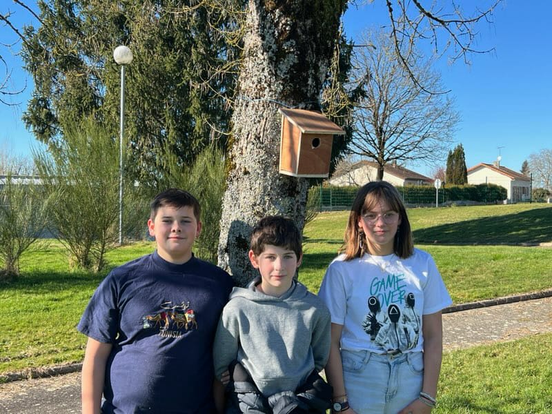 Aujourd’hui (03/02/25) nous les avons fixées aux arbres et bâtiments du collège pour peut-être les voir nicher dedans l’an prochain. 🤞🏻