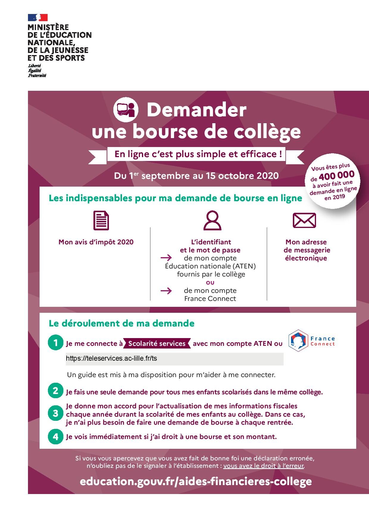 Les élèves ont (ou vont avoir d’ici mercredi) les documents concernant les demandes de bourses (…)