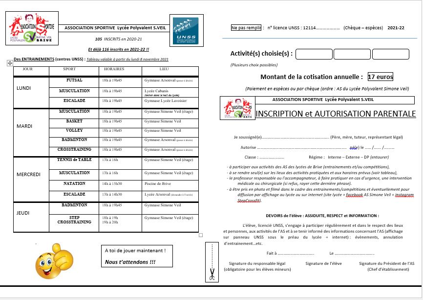 A chacun et à chacune, nous comptons sur vous pour renforcer les rangs de l’AS Simone Veil et nous vous souhaitons un excellente année scolaire et sportive 2021-22 !{{}}