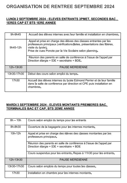 La rentrée scolaire est fixée au 02 Septembre 2024.Voici pour rappel les modalités spécifiques applicables à notre lycée.