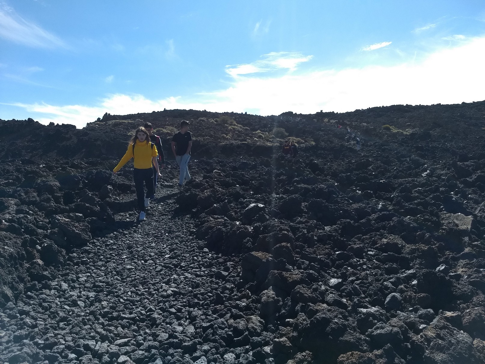 - le patrimoine naturel de Ténérife, avec la visite du parc national du Teide, un volcan culminant à 3200 m sur les pentes duquel ils ont effectué une petite randonnée de 8 kilomètres ...