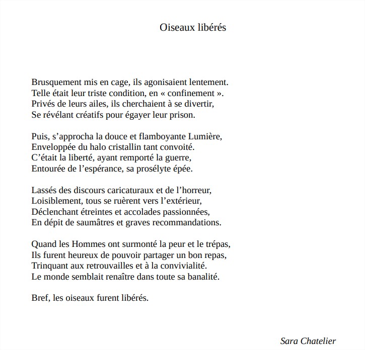 Voici la magnifique production d’une élève de 2nde ayant répondu présent à l’appel lancé par la DAAC concernant le projet de Franck BOUYSSE d’expression libre sur "le monde d’après" la Covid-19.