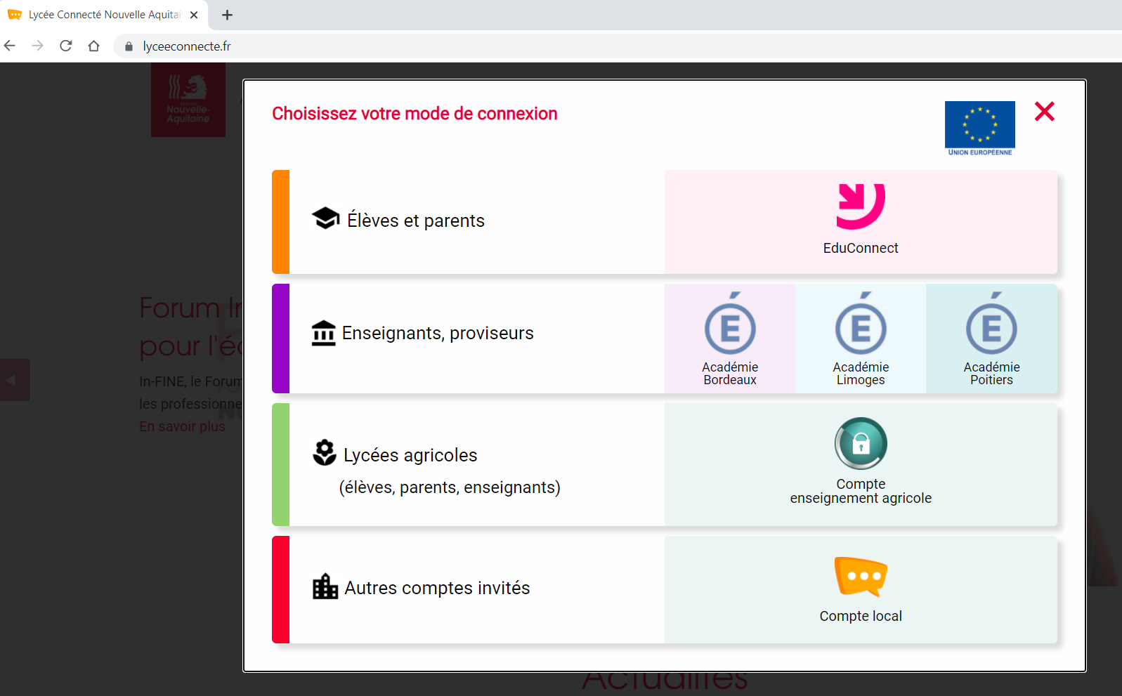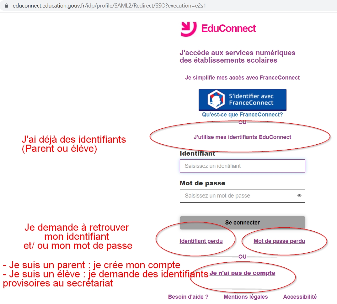 Attention, un compte parent et un compte élève n’ont pas les mêmes caractéristiques. Nous demandons aux parents et aux élèves d’utiliser un compte EDUCONNECT personnel pour utiliser l’ENT.