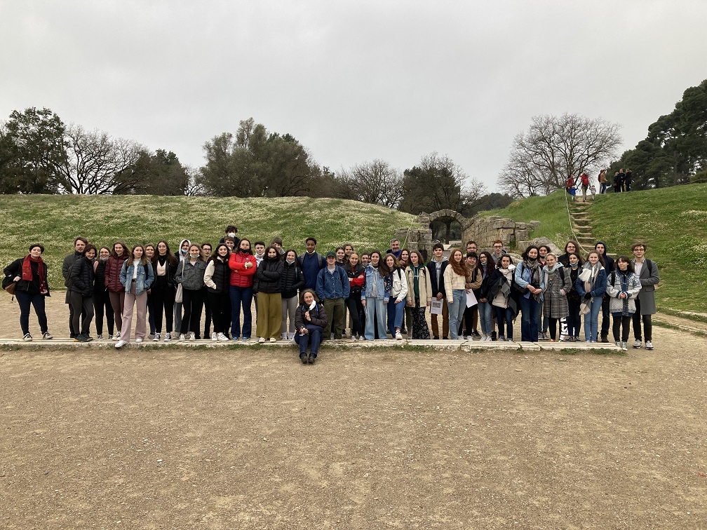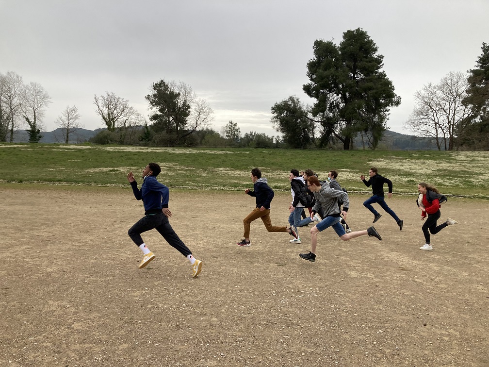 courir sur le stade d’Olympie puis rendre visite à Hermès au musée,