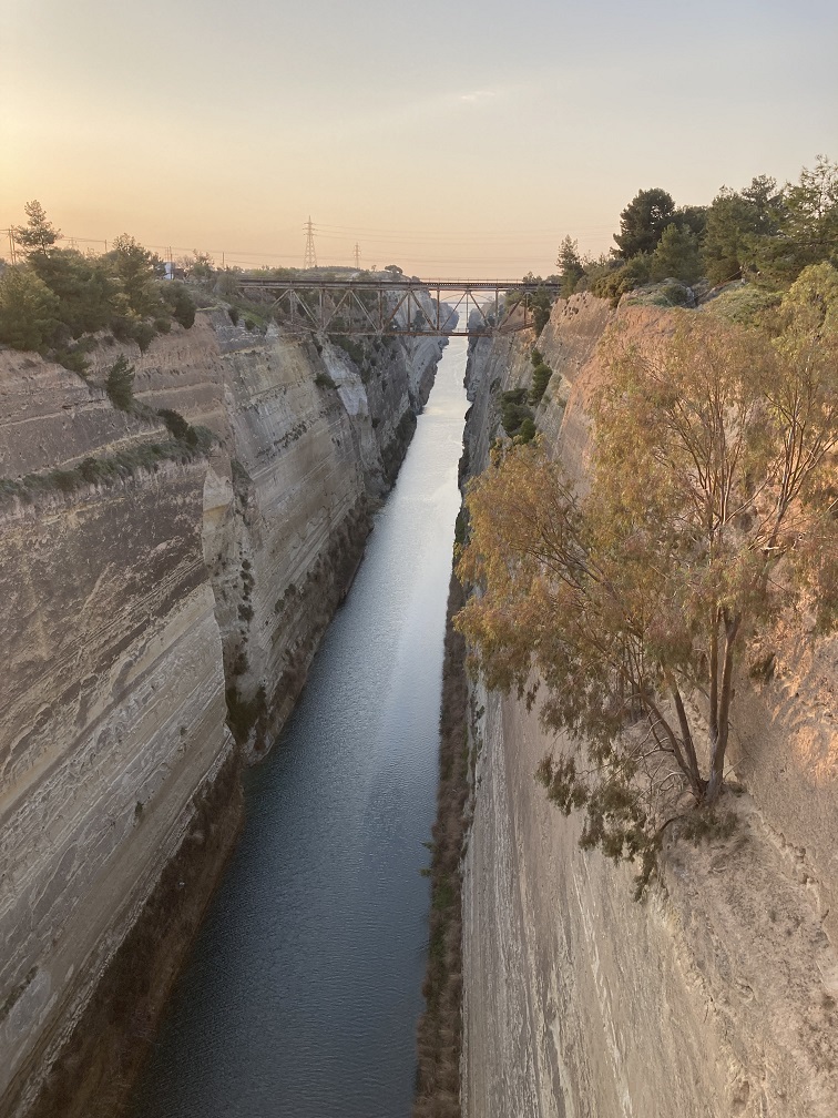 Sonder du regard le vertigineux précipice du Canal de Corinthe,