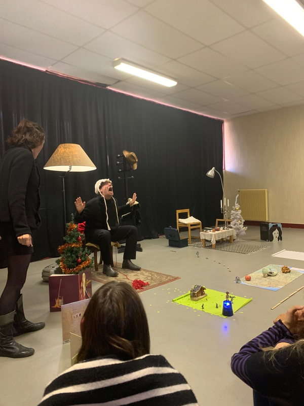 Les élèves de l’option théâtre du lycée (3 niveaux) ont également pu participer à l’atelier théâtre d’objet et à la représentation.