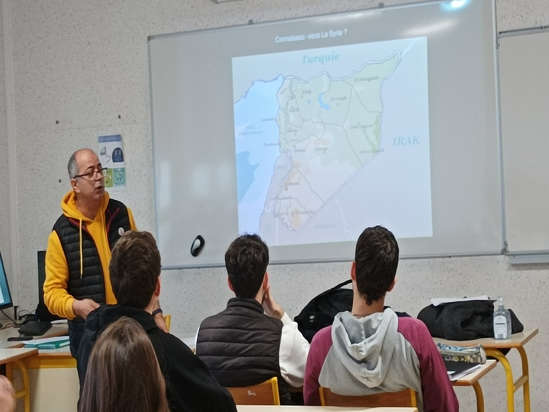 Dans le cadre d’un projet d’EMC autour de la démocratie à travers la caricature, les élèves de TG4 ont pu rencontrer Ali Hamra, dessinateur de presse d’origine syrienne réfugié en France depuis 2014.