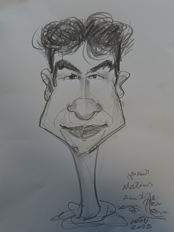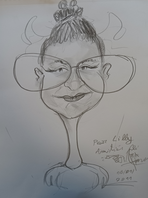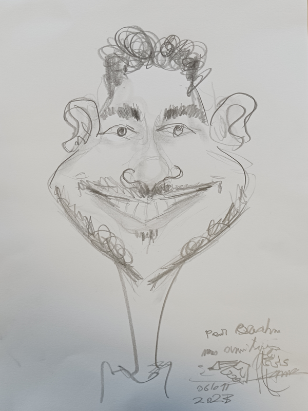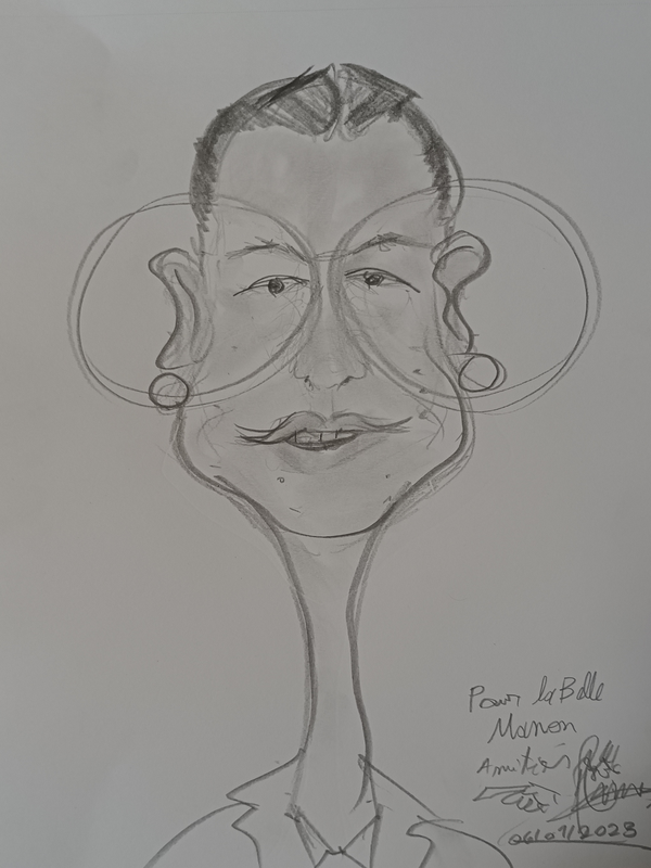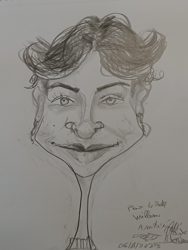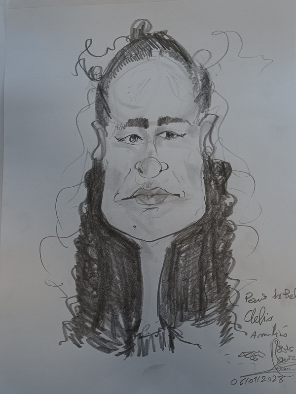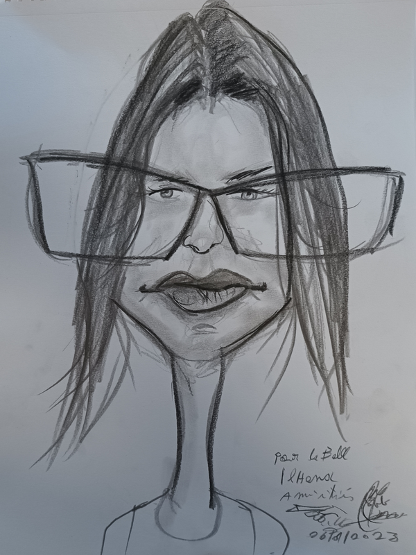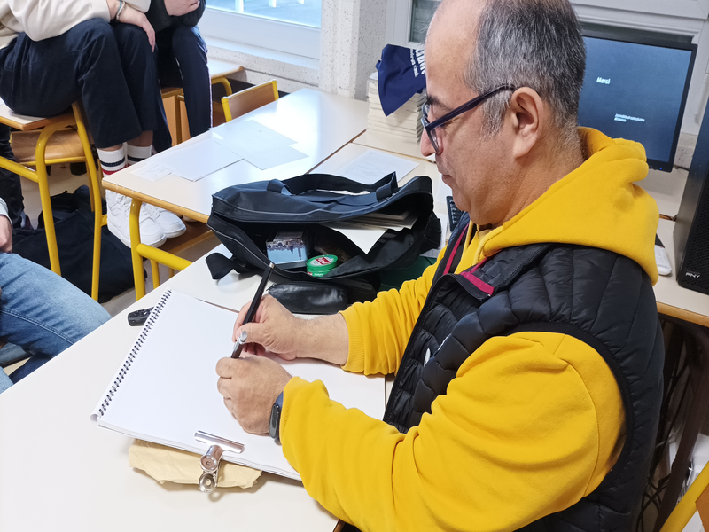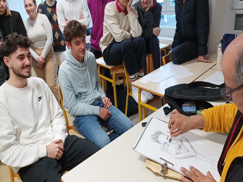 Ali hamra a aussi comme particularité de dessiner avec les 2 mains en même temps, ce qui a beaucoup impressionné les élèves, ravis de se faire tirer le portrait !