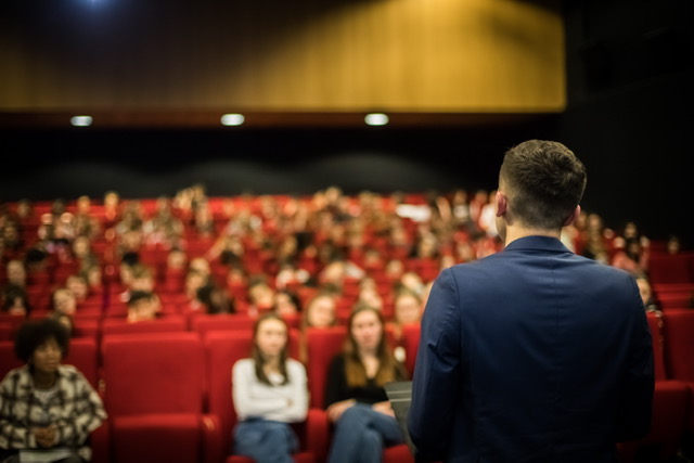 Des secondes, premières, terminales, des parents, des professeurs, quelques professionnels du spectacle. Tous silencieux pour entendre la parole des orateurs.