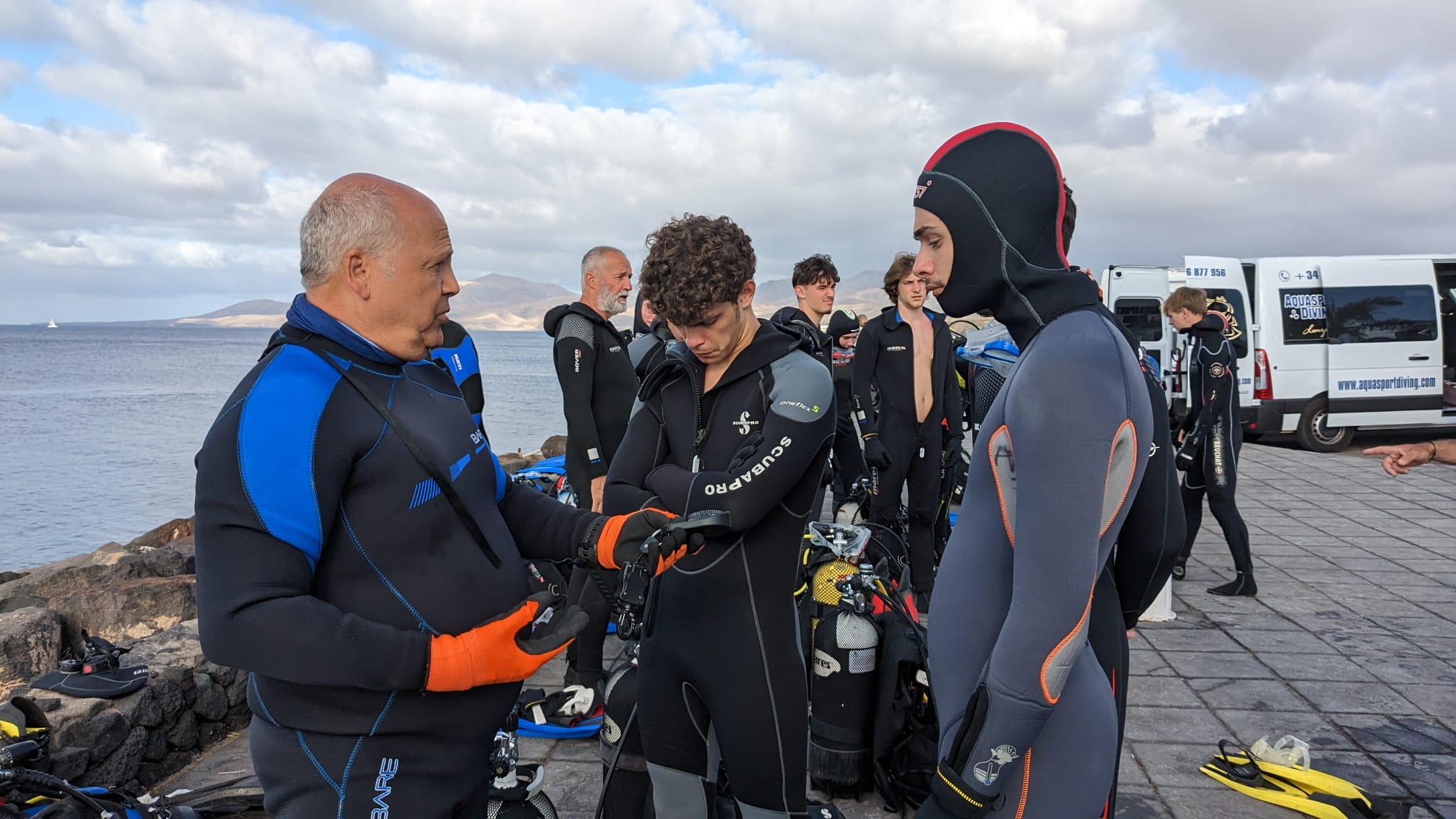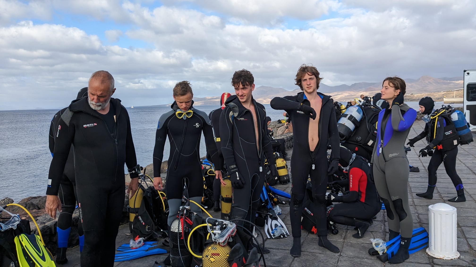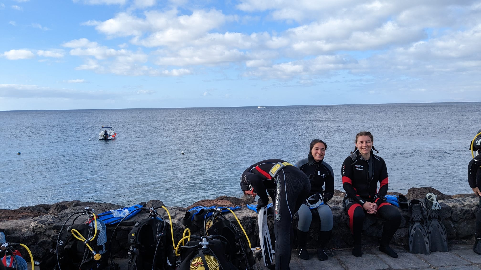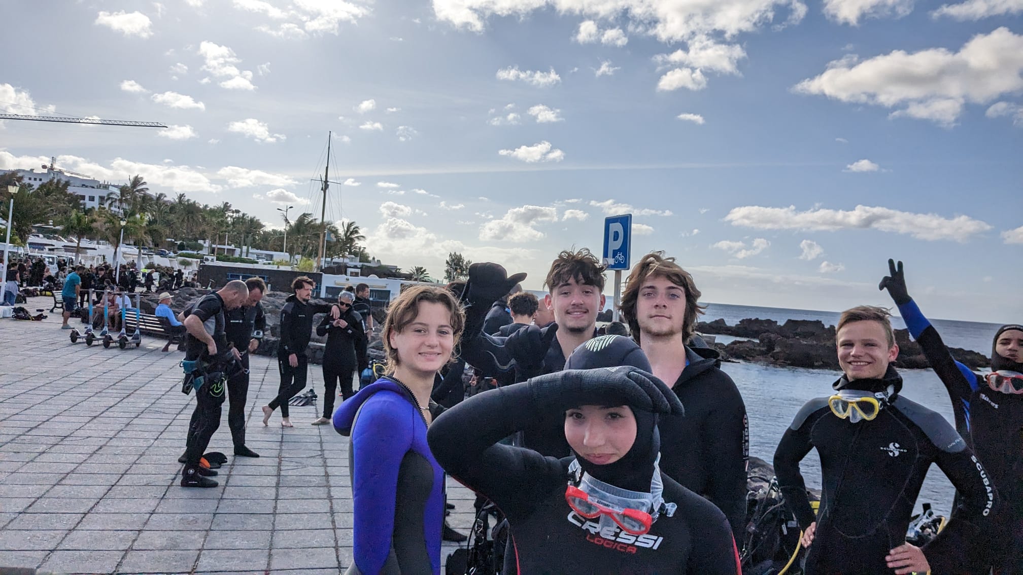 " Pour commencer ce 3eme jour de voyage, nous nous sommes levés tôt et avons pris un petit déjeuner de sportif pas très diététique. Ensuite nous avons pris la direction de la playa chica afin d’y effectuer 2 plongées séparées par une pose goûter de 60 minutes, juste le temps de pouvoir recharger les batteries. Nous avons pu observer des requins anges, des barracudas, une cigale de mer et de nombreuses autres espèces. Nous en avons pris pleins les yeux et nous avons tous passé un excellent moment.