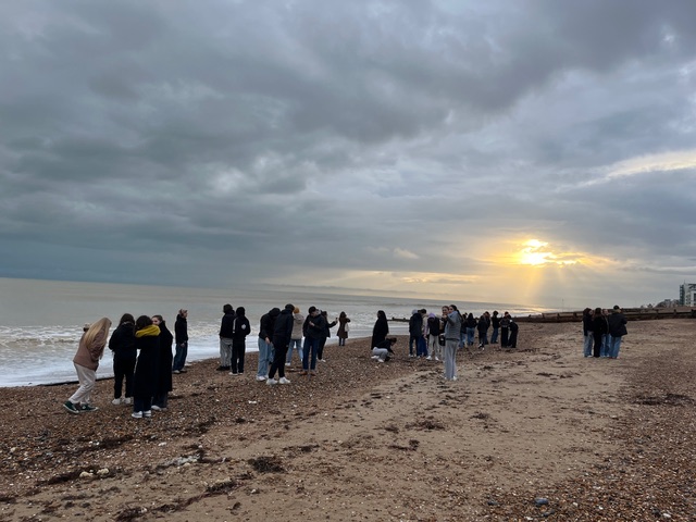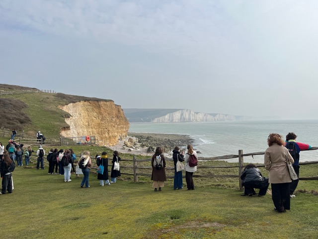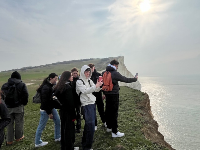 Course d’orientation à Brighton, randonnée avec petit bain de boue et saut de haie pour admirer les falaises appelées Seven Sisters, et bataille rangée contre les bombes lâchées par un complot d’Air Force Mouettes et d’Air Force Pigeons, ce fut une semaine un peu sportive, mais aussi royale avec la visite du Royal Pavilion et la rencontre inattendue avec sa majesté l’Iguanodon en papier mâché au musée d’histoire naturelle de Portsmouth.