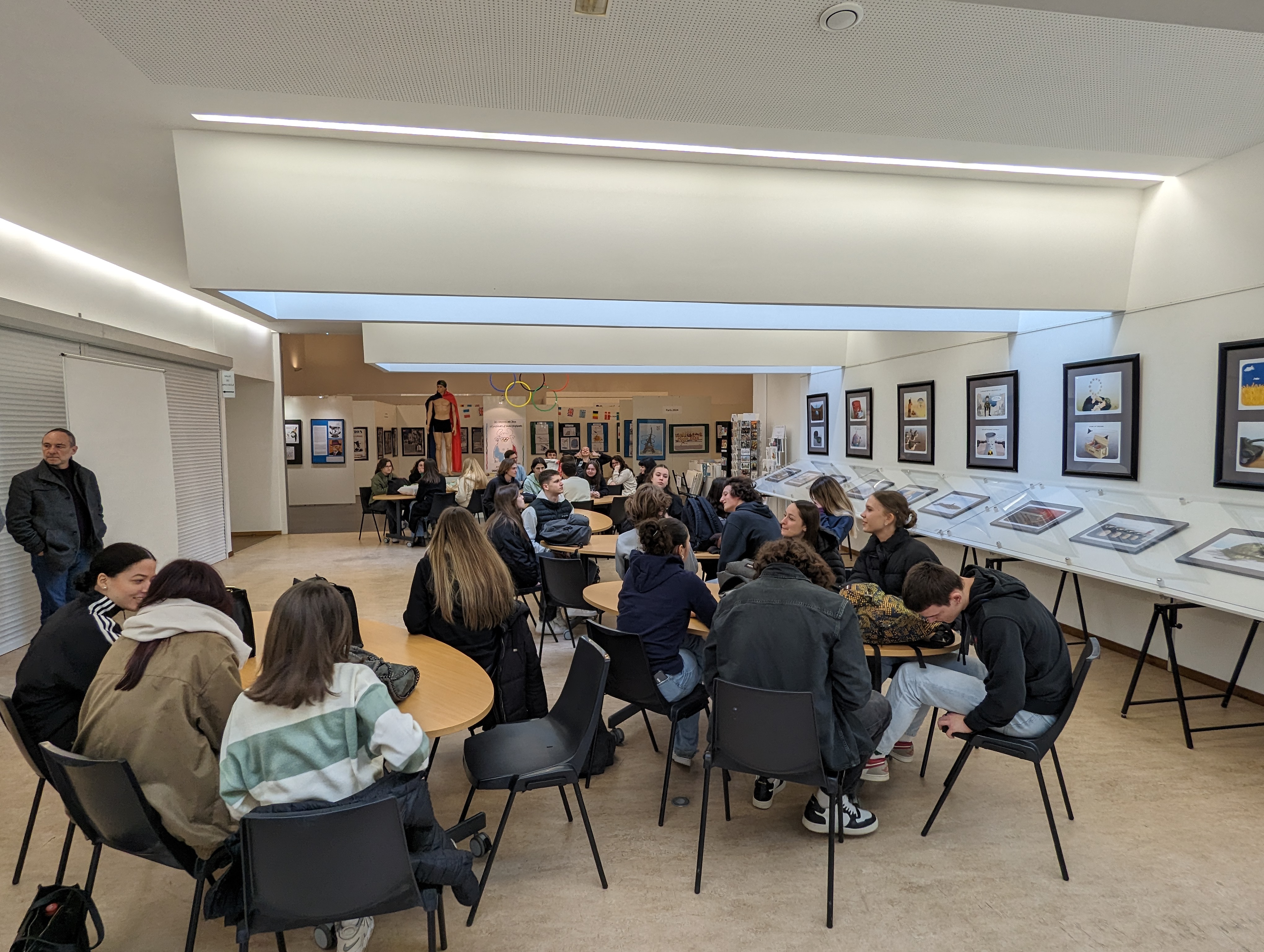 Dans la matinée, ils ont pu découvrir les 2 expositions en cours : celle des dessinateurs Plop et Krank, ainsi que l’exposition collective sur les Jeux olympiques.