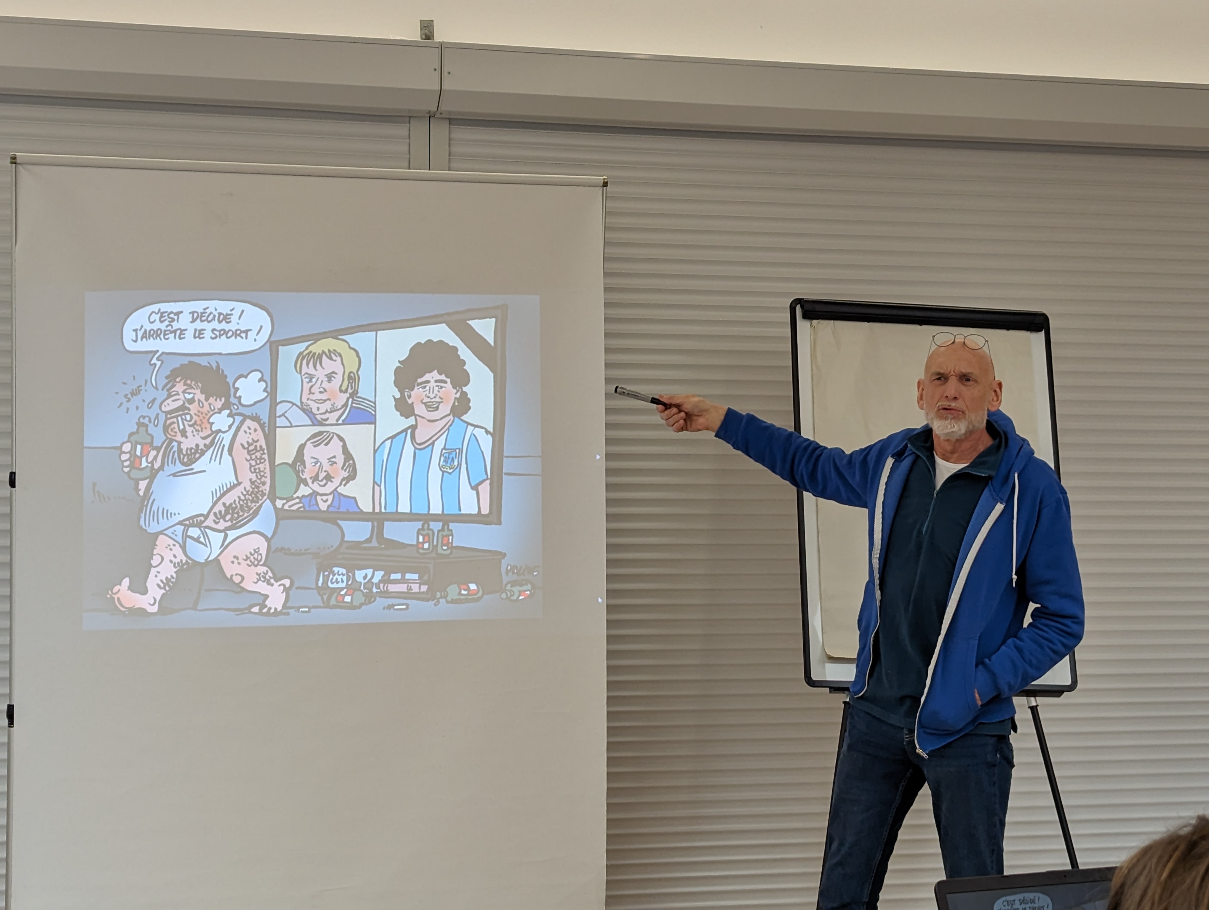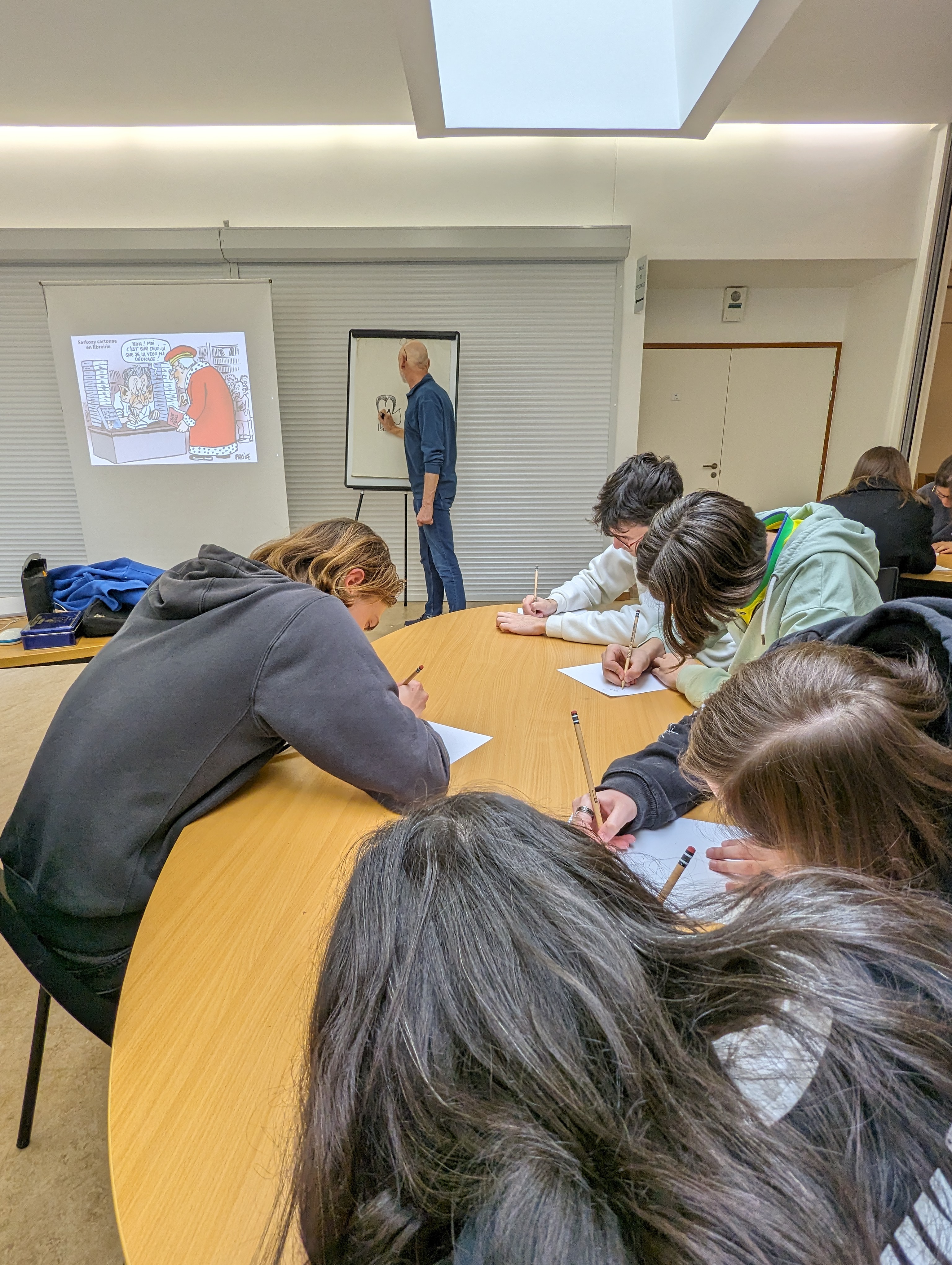 L’après midi était consacré à la rencontre avec Placide, dessinateur de presse qui contribue à de nombreux médias papier et audiovisuels.