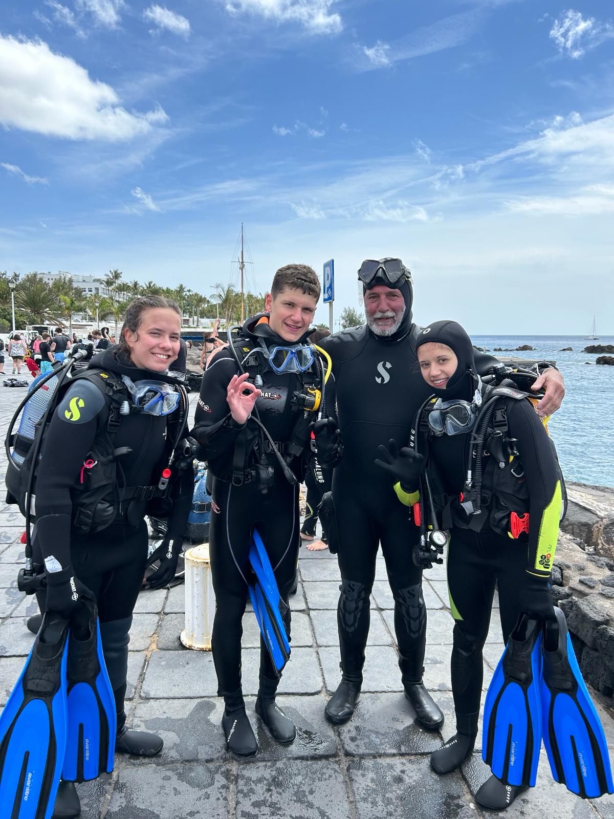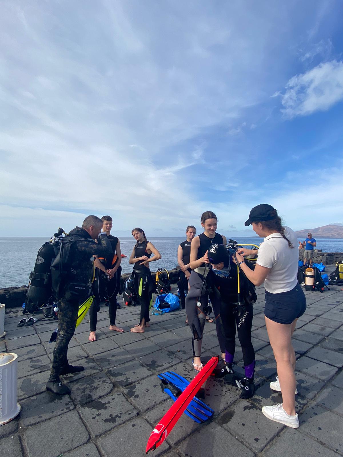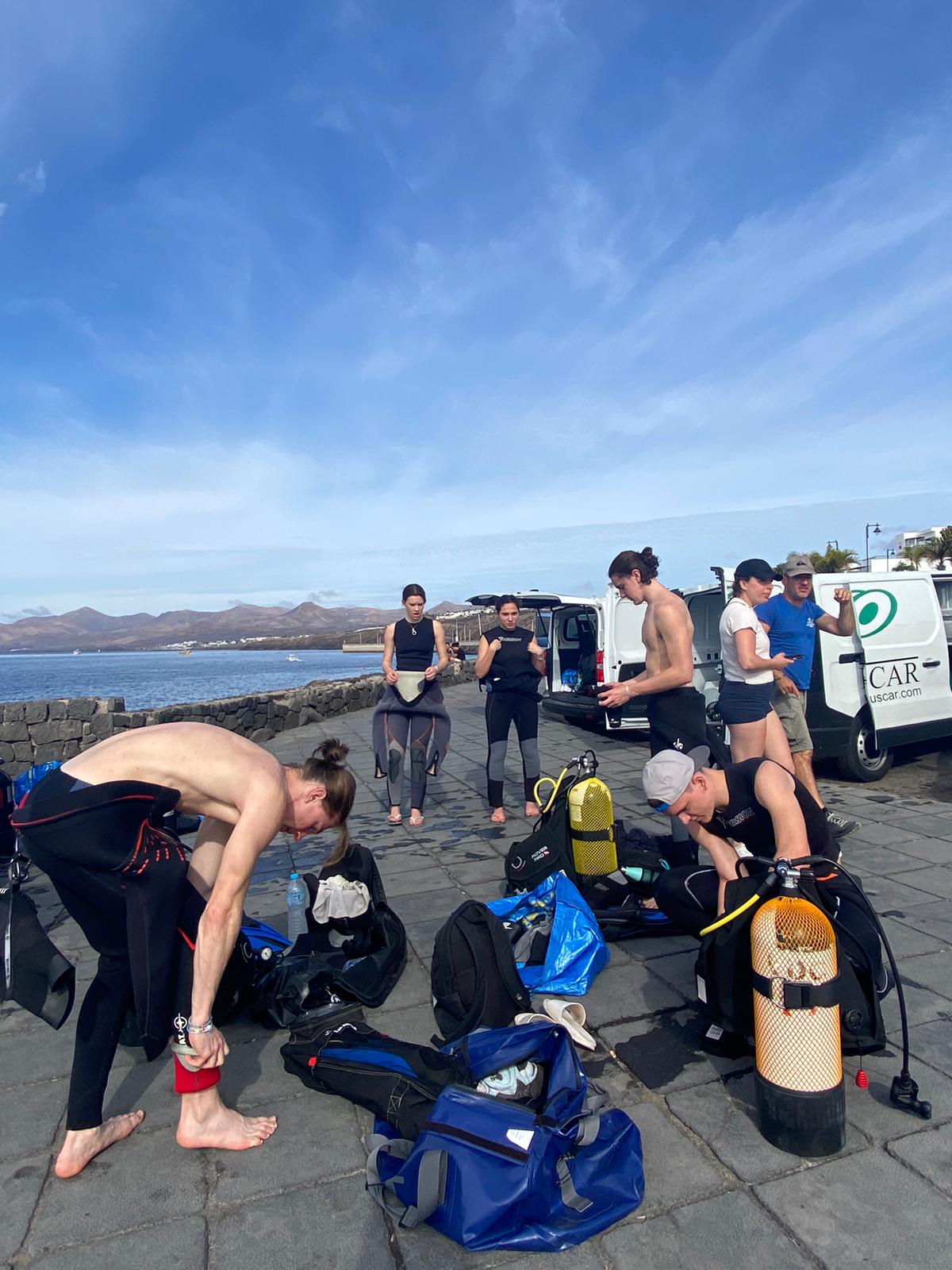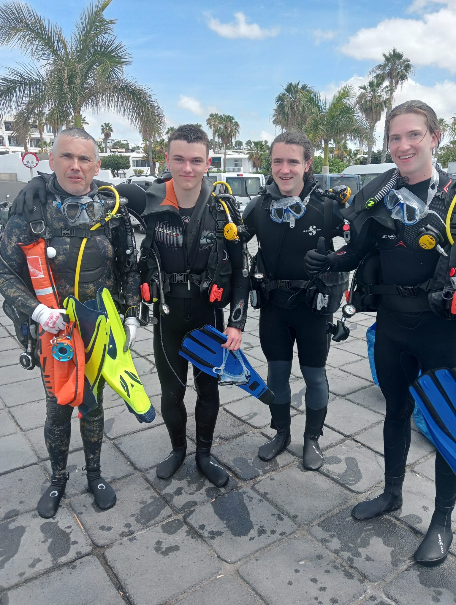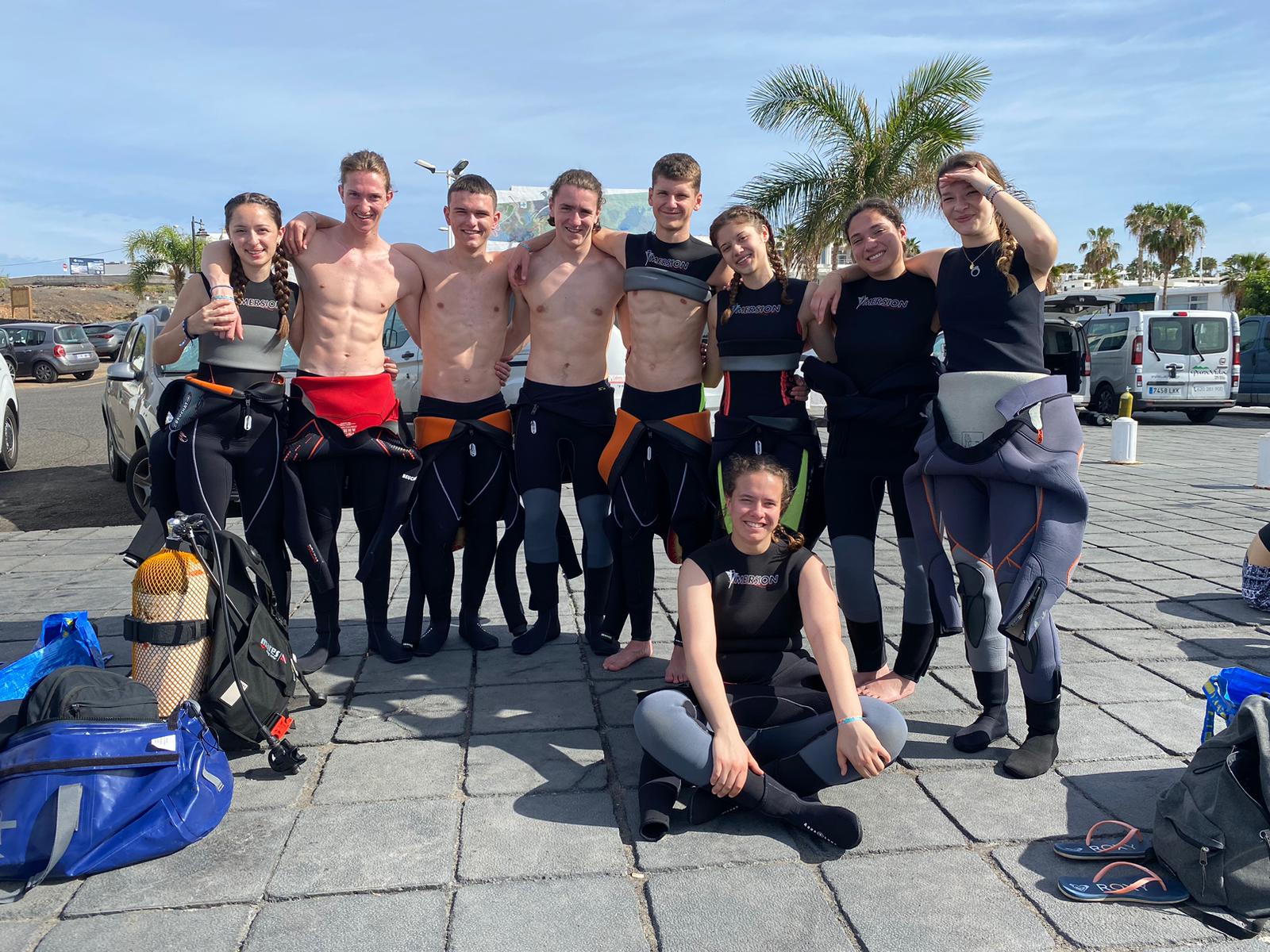 Samedi est encore une journée chargée, avec 2 plongées pour les élèves sur 3 rotations à Playa Chica, la plage attitrée des plongeurs de Puerto del Carmen. Les élèves N1 gagnent en assurance et peuvent mieux observer la faune et la flore sous-marine locale. Pendant ce temps-là, les “prépa N2” continuent le travail technique et avancent dans leur formation de grande qualité. Ils devraient bien dormir ce soir…en espérant que leurs chevilles n’enflent pas trop vu les compliments donnés par les moniteurs.