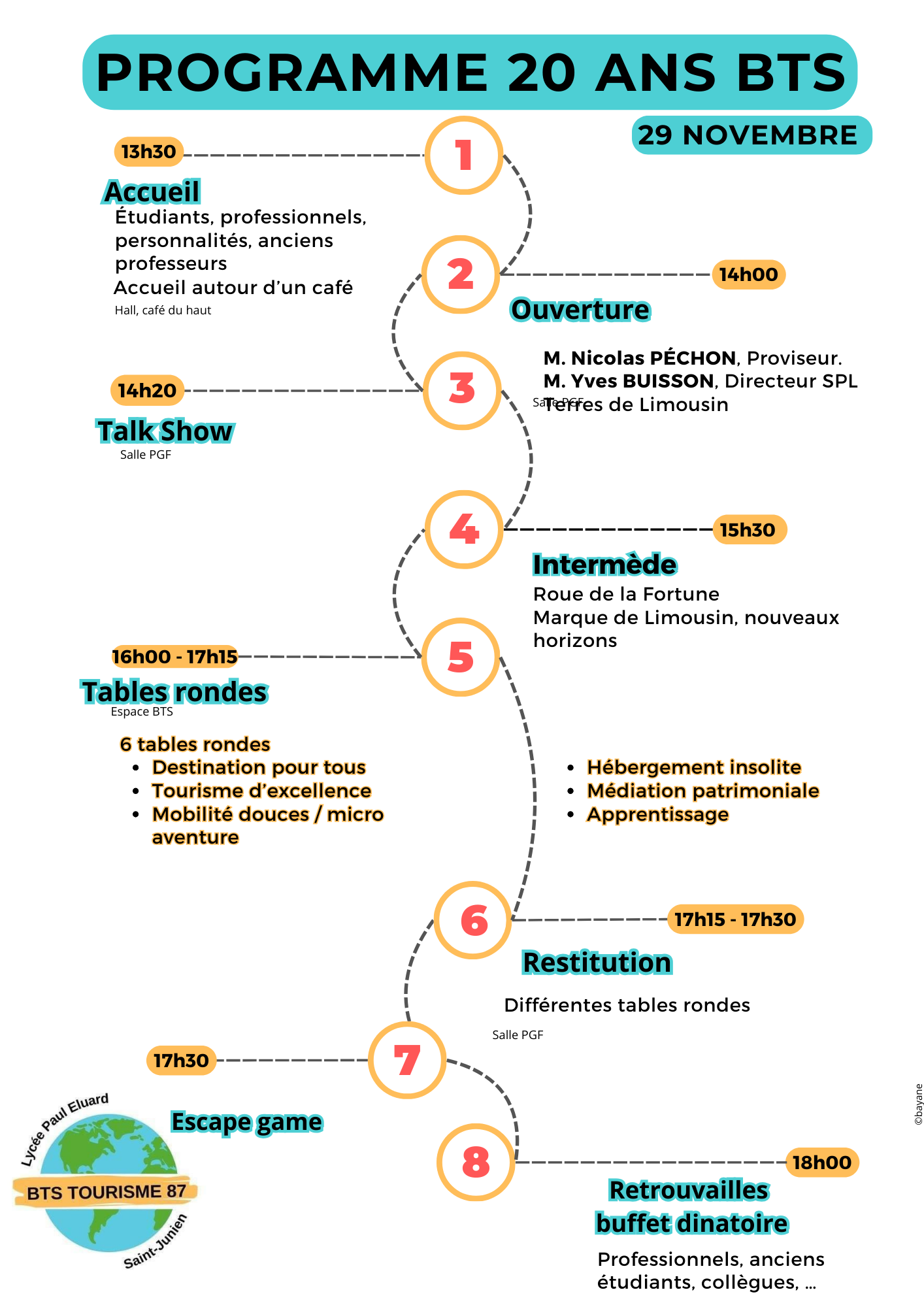 L’équipe des étudiants de deuxième année du BTS Tourisme est ravie d’accueillir dans ses locaux les anciennes promotions du BTS. Aujourd’hui, nous avons le plaisir de vous annoncer un événement exceptionnel, qui se déroulera en deux parties le vendredi 29 novembre.